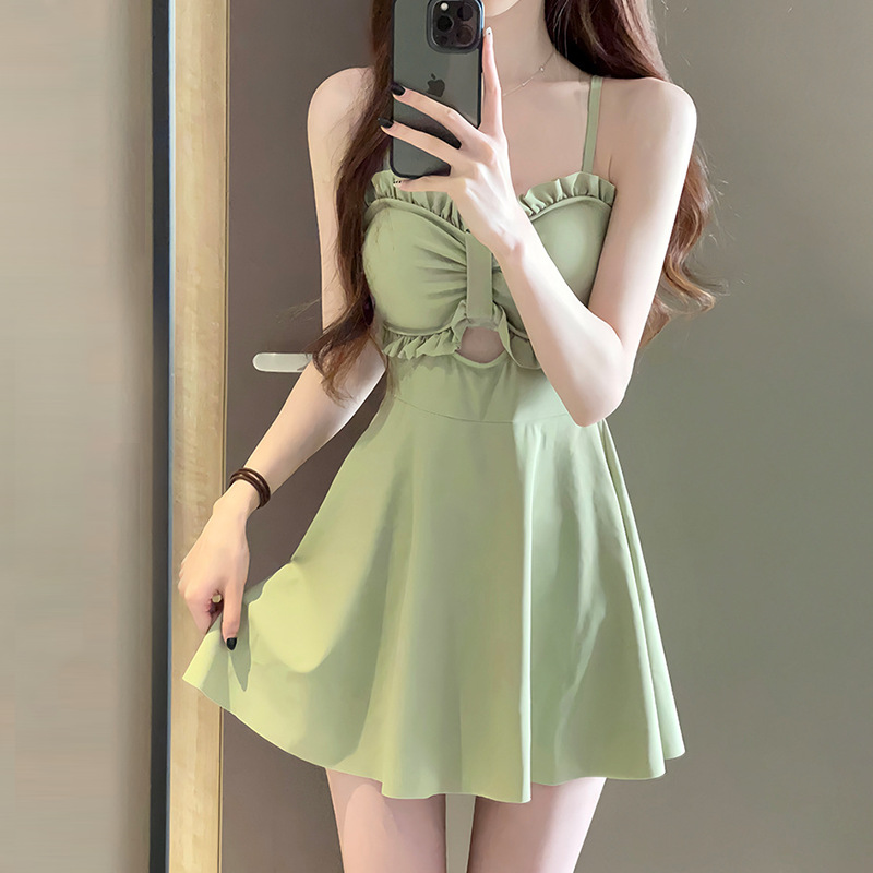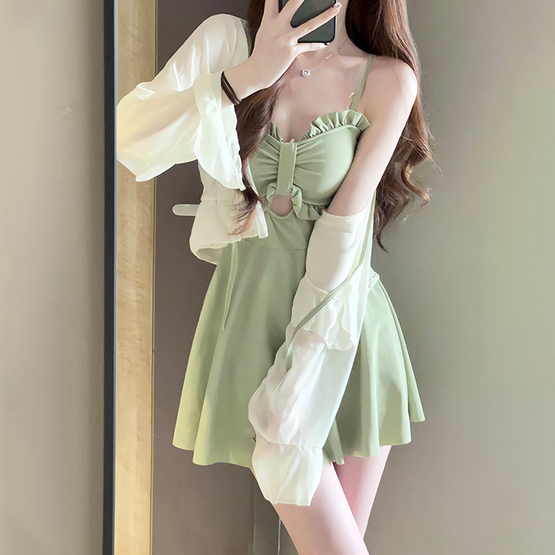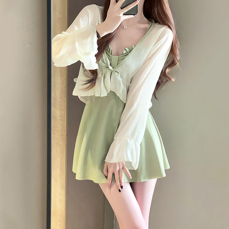 游泳衣女连体保守防晒罩衫显瘦遮肉性感网红高级感纯欲泡温泉泳装