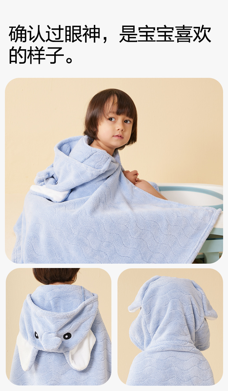 三利毛巾新款儿童披风立体卡通连帽斗篷宝宝可穿浴巾珊瑚绒大浴衣