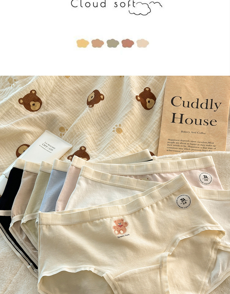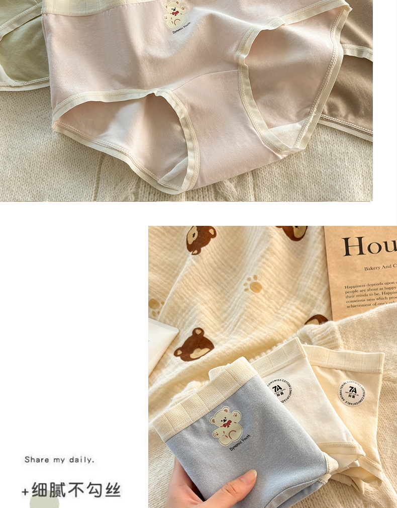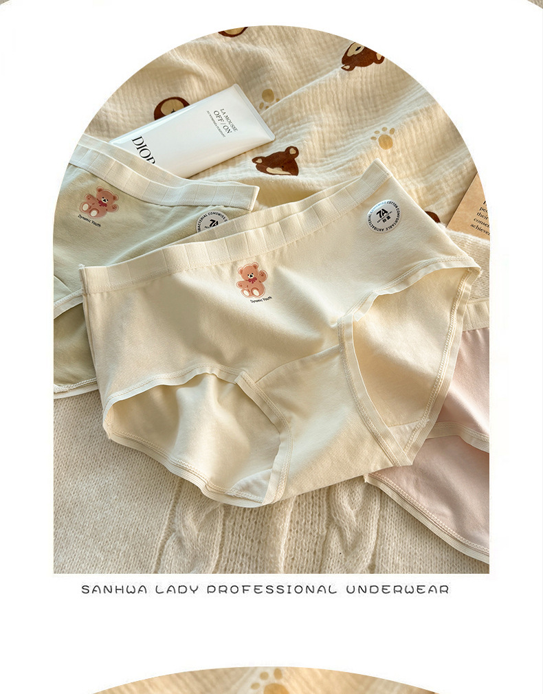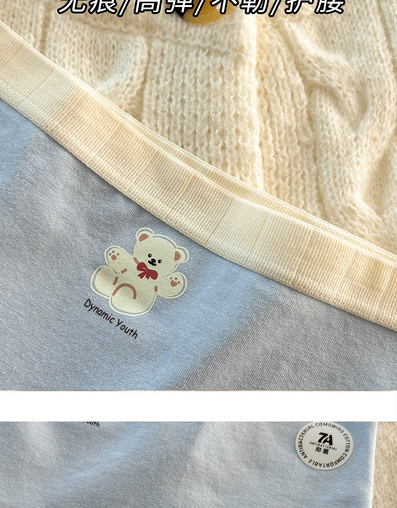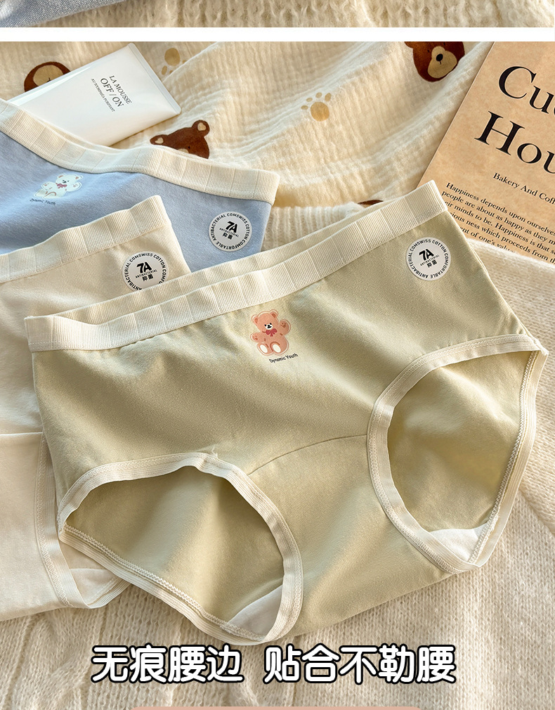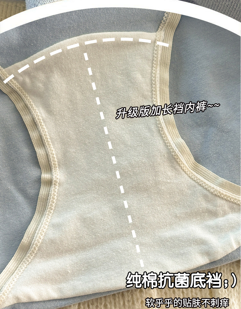 秋冬日系可爱纯棉女士内裤加长16CM纯绵裆中腰大码无痕纯棉内裤女
