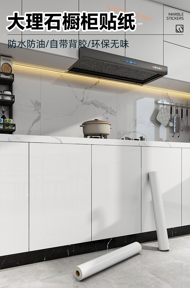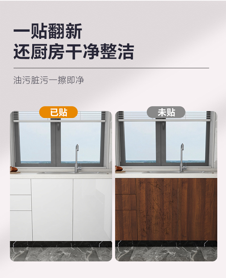 厨房橱柜翻新贴纸改造柜子柜门壁纸自粘厨柜防水防油防潮专用改色