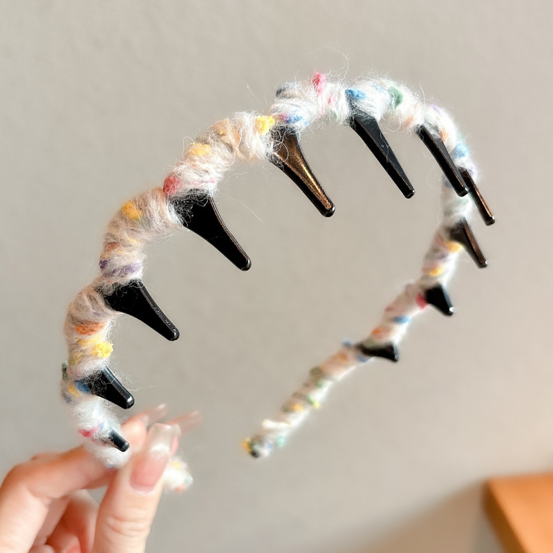 秋冬彩色毛绒编织波浪发箍高级感洗脸压发带齿蓬松固定头箍发饰女