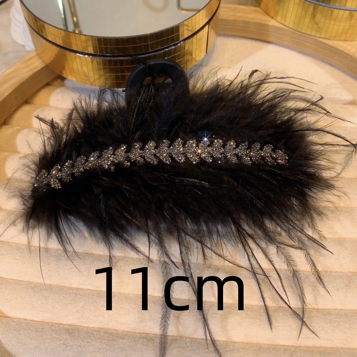 爆款高颜值羽毛泡泡纱抓夹女网纱显发量多气质羽毛发夹盘发鲨鱼夹