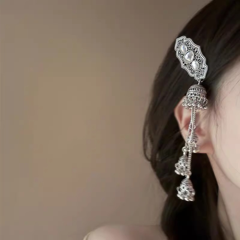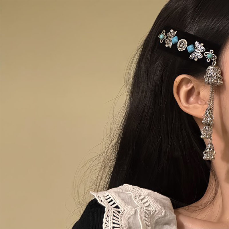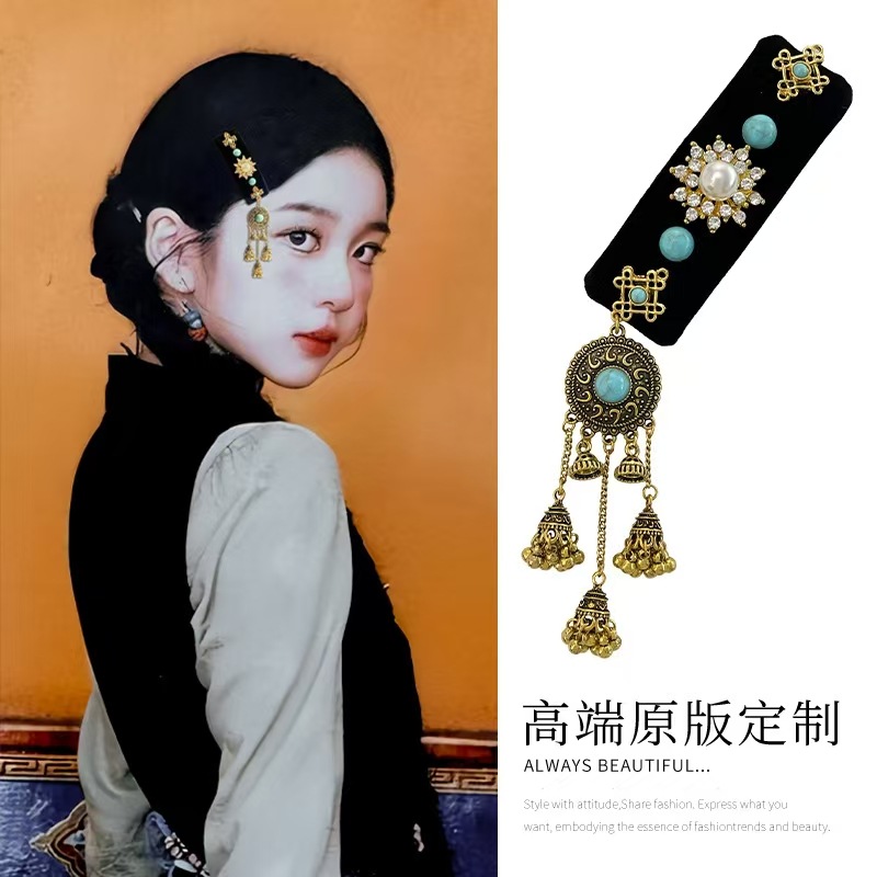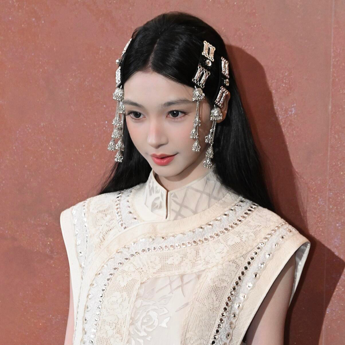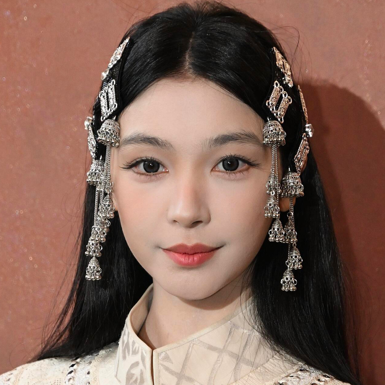 易梦玲同款银色流苏发夹民族风边夹刘海夹子草原蒙古族旅游发饰新