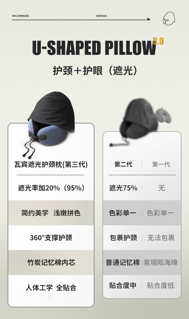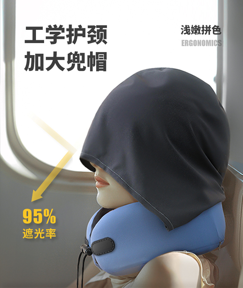u型枕头护颈护脖子记忆棉旅行颈枕亚马逊便携帽可收纳U形跨境工厂