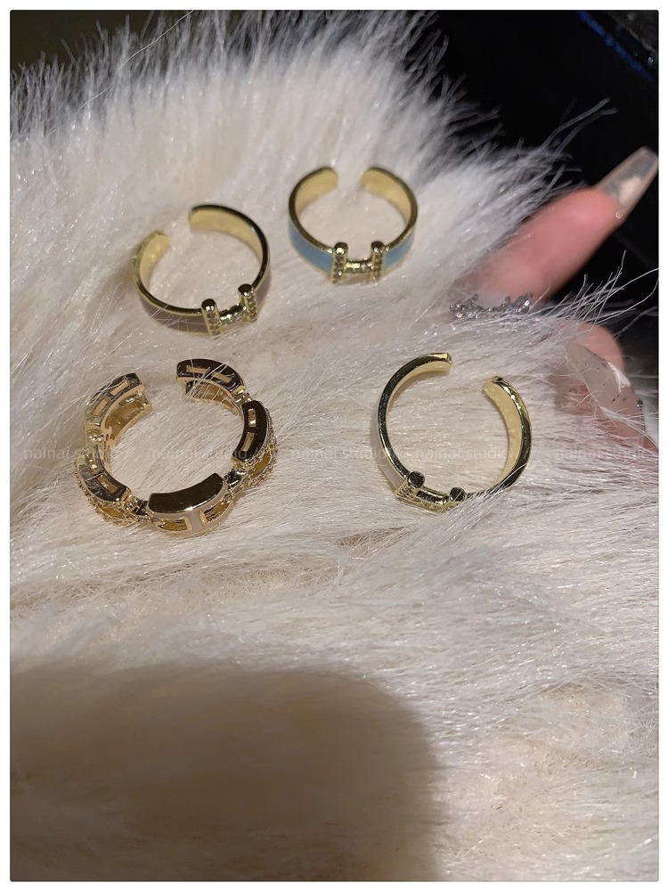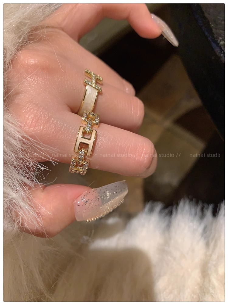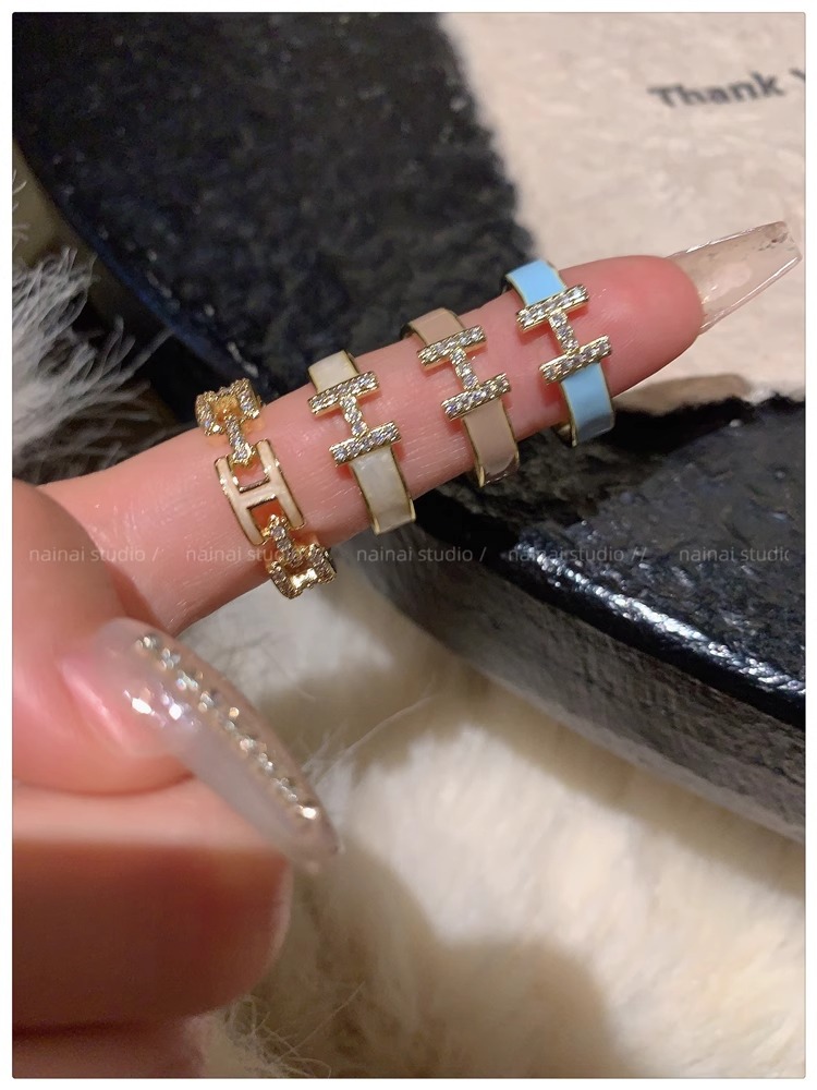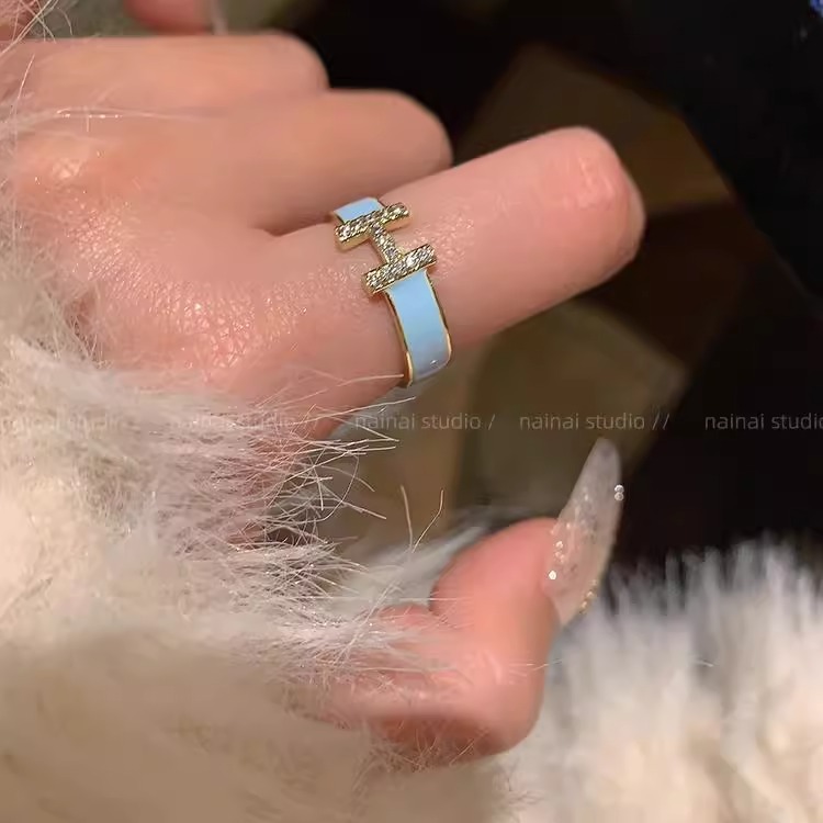 字母H戒指~珐琅滴油锆石高级感开口ins小众法式网红指环食指戒女