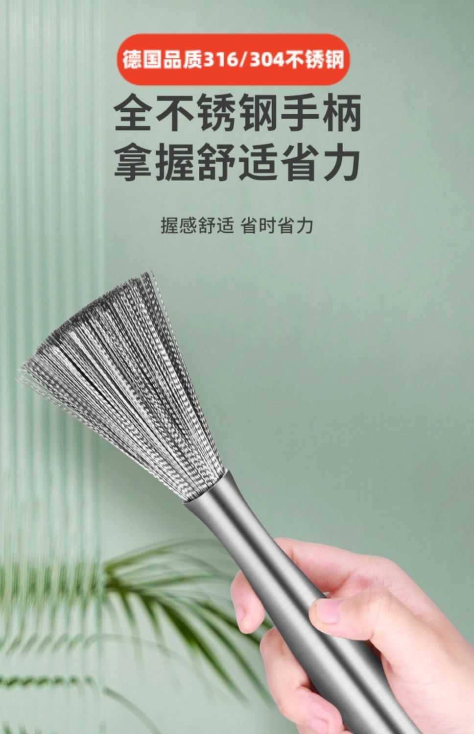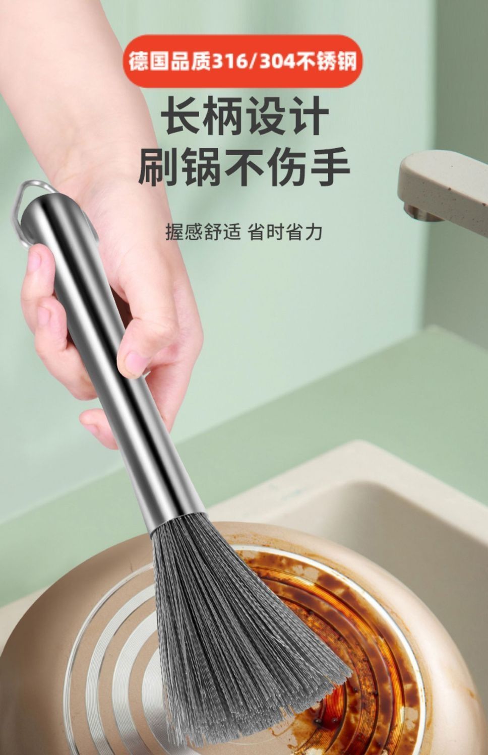 德国316不锈钢锅刷加厚长柄不沾油钢丝刷清洁去油污刷子刷锅神器