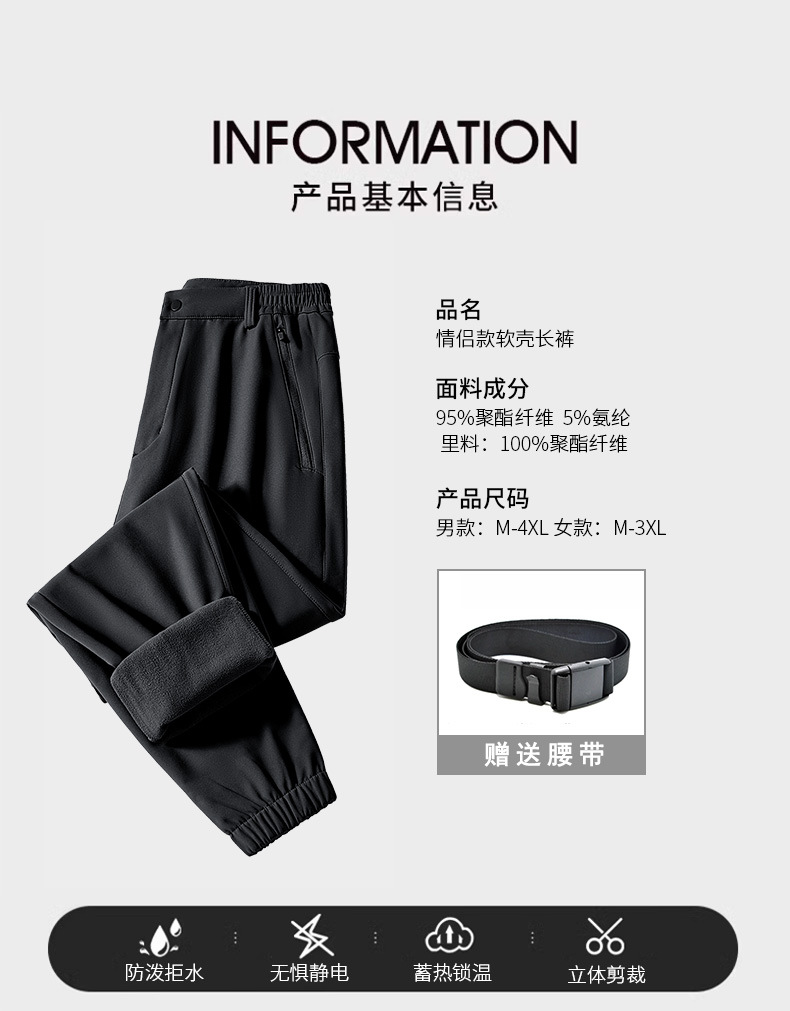 冲锋裤男女冬季防风防水加绒加厚户外运动软壳裤登山裤滑雪裤
