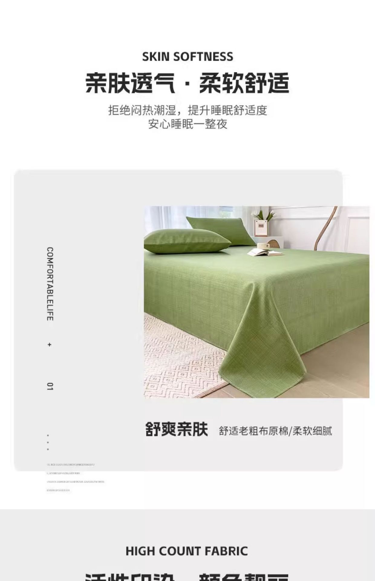 加厚原棉老粗布床单单件家用双人可机水洗学生宿舍亲肤床单三件套