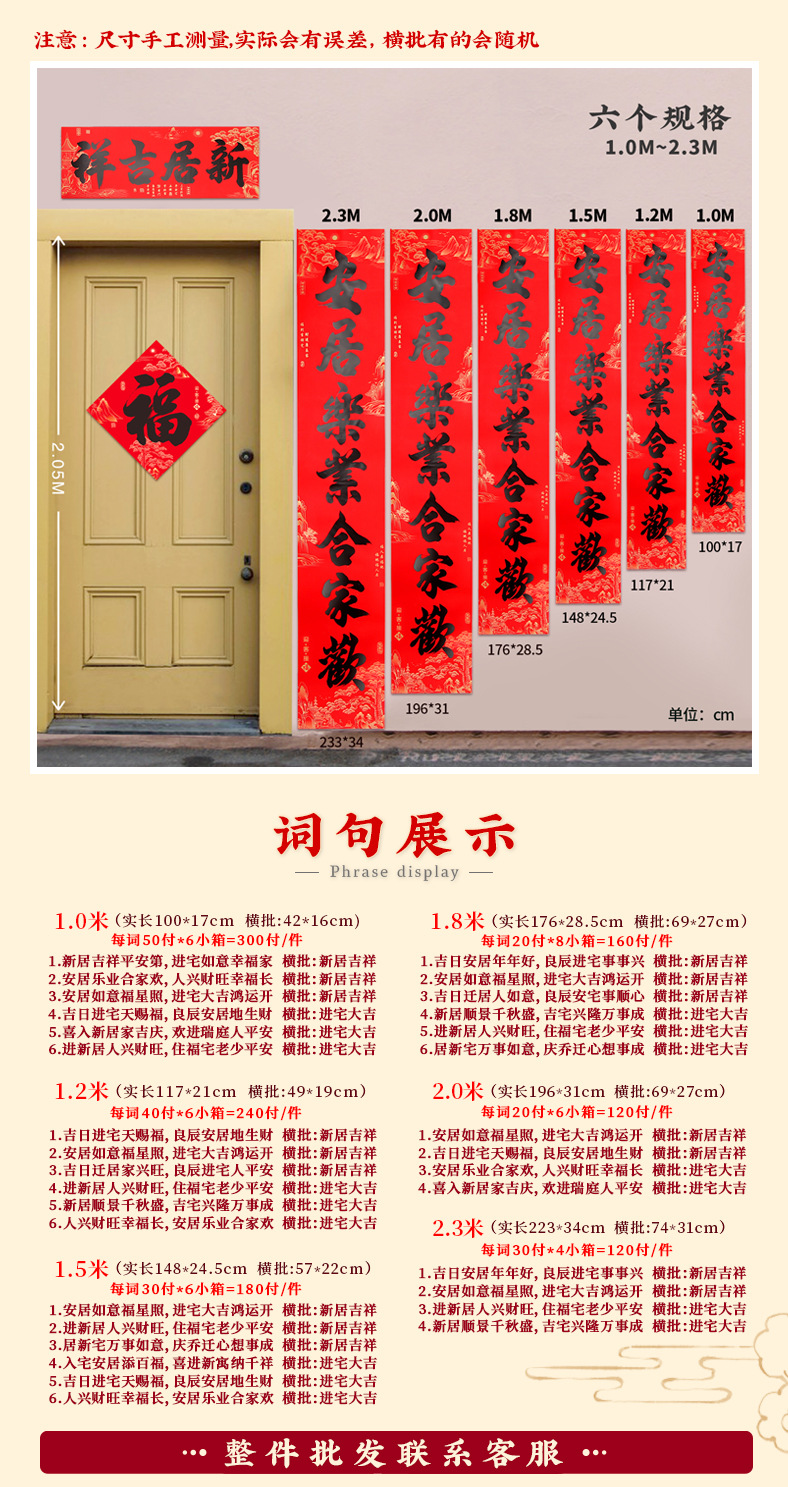 | 2.3m jirianju niannianhao, liangchen enters the house, and the new house is lucky (real length 223 * 34cm)(2.3m吉日安居年年好,良辰进宅事事兴 新居吉祥(实长223*34CM)) | USD $2.48 | 10303 pay available |