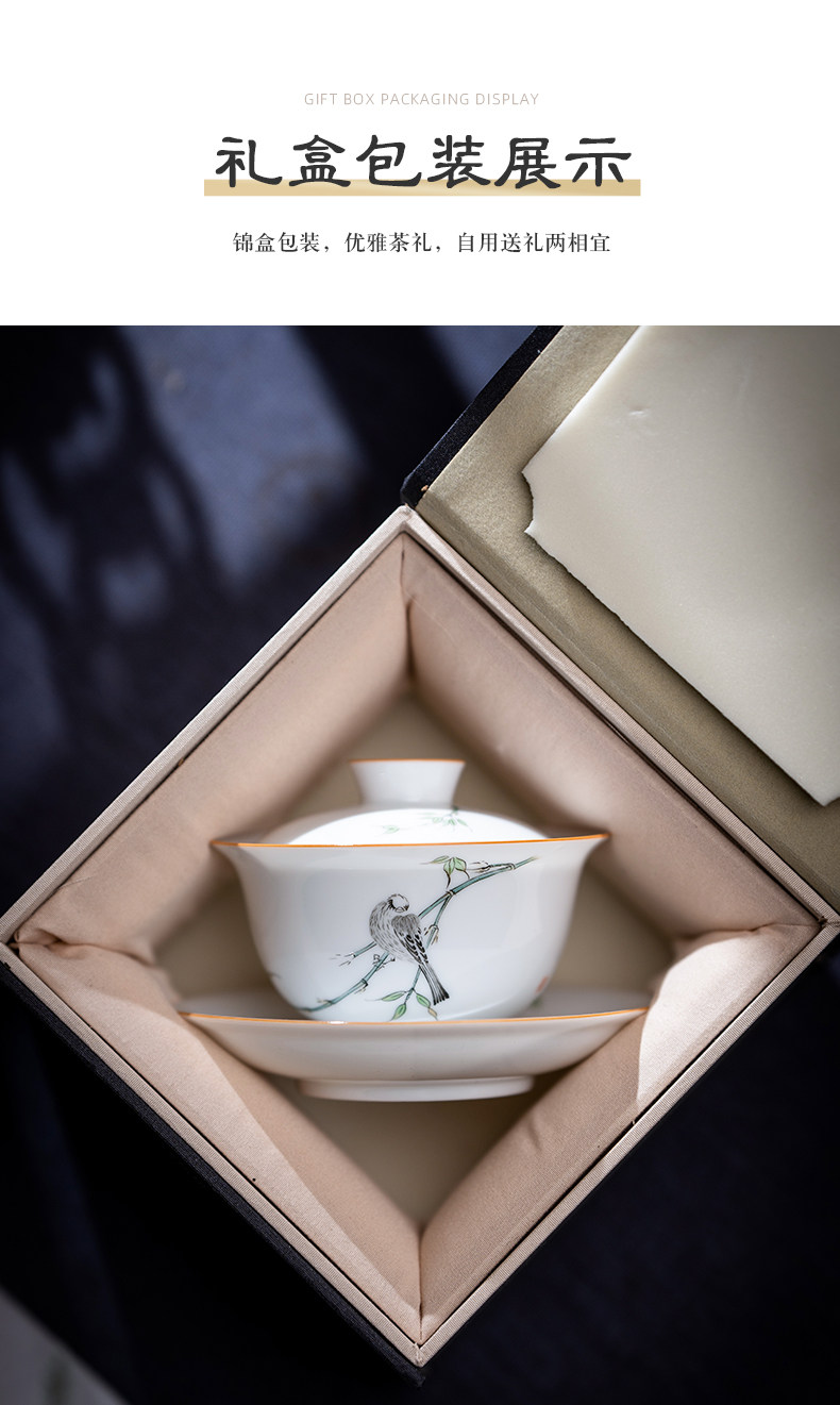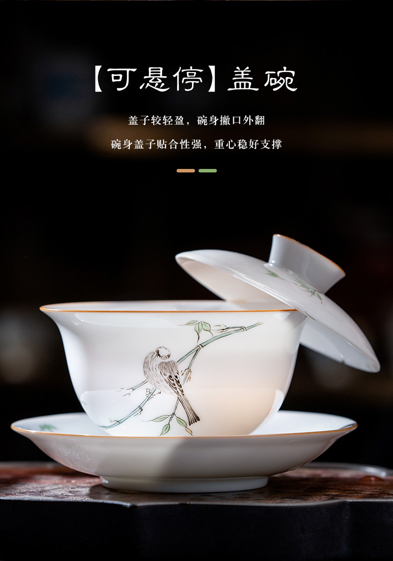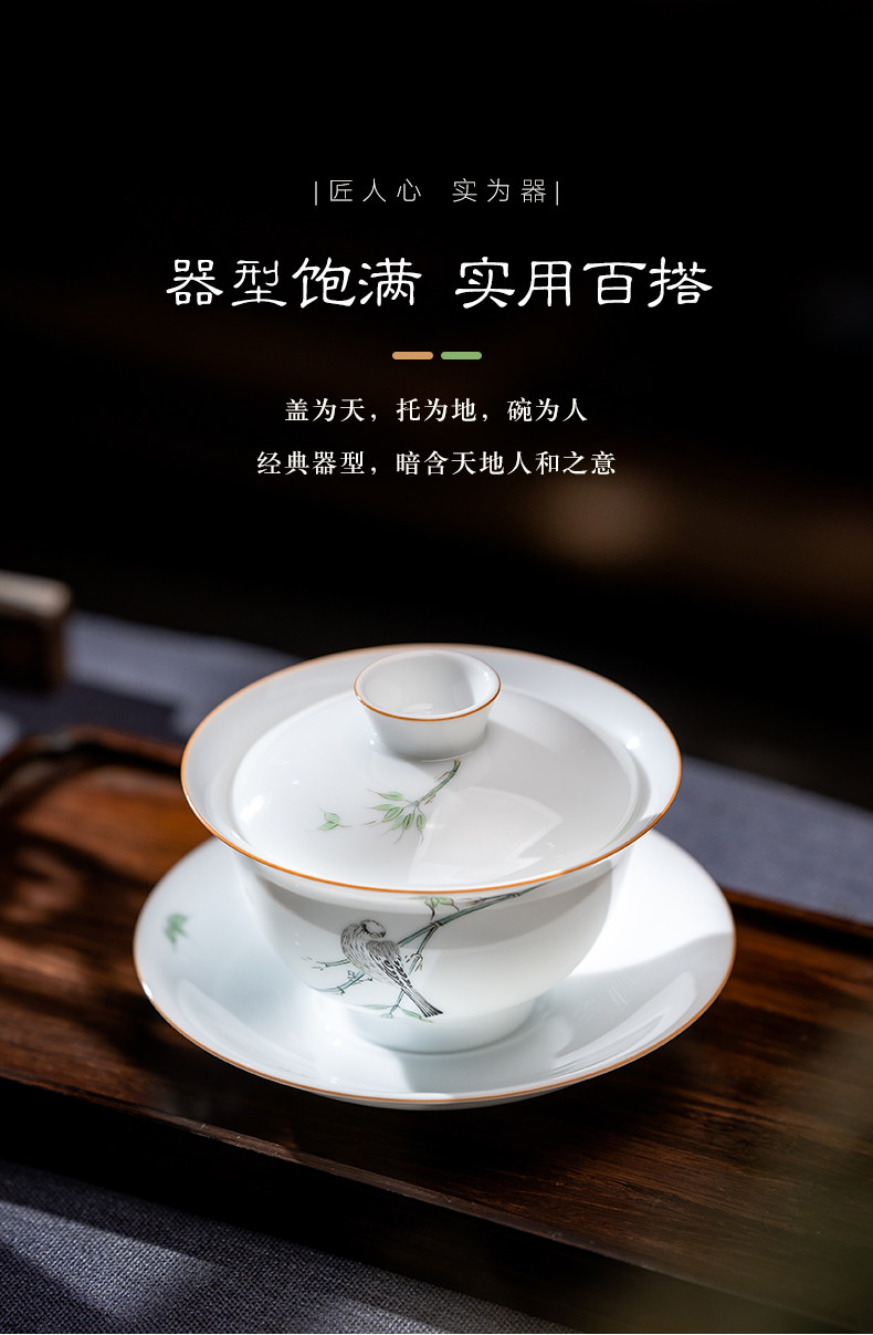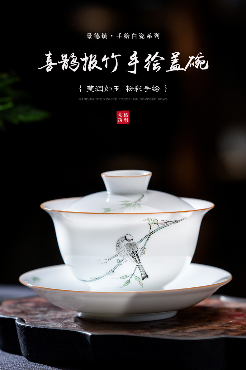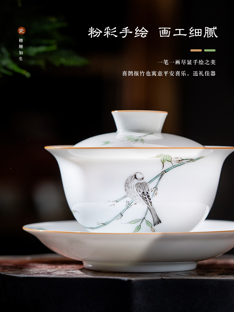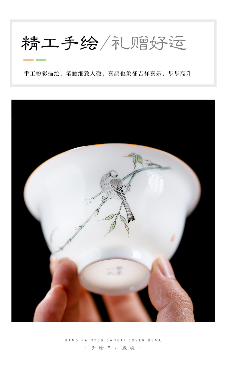 景德镇陶瓷手绘三才盖碗茶杯功夫茶具套装单个高档泡茶茶碗可悬停