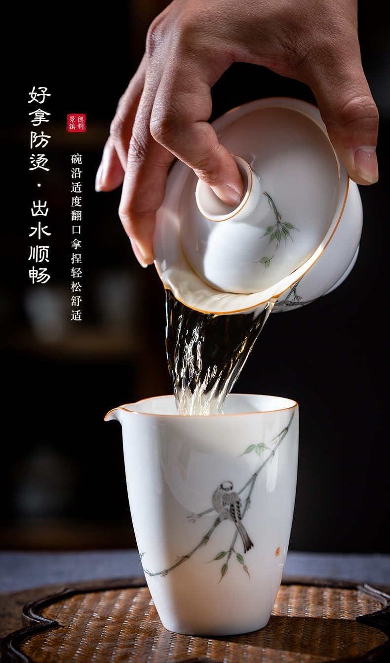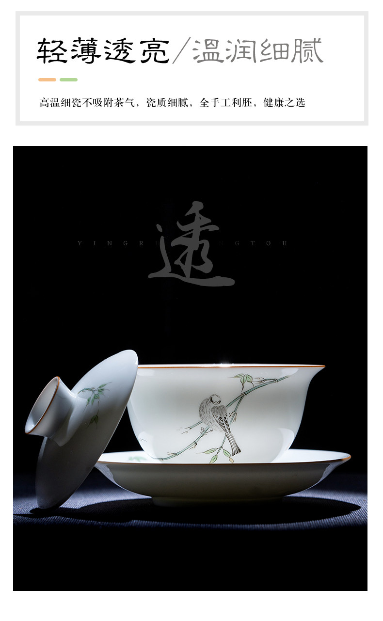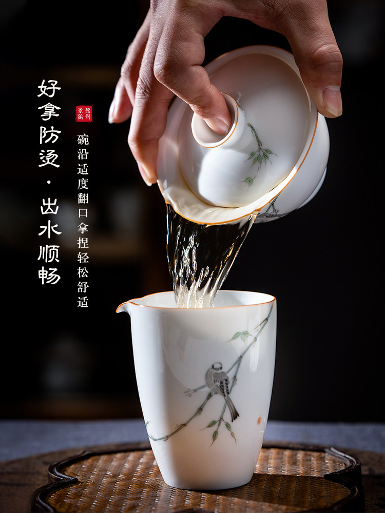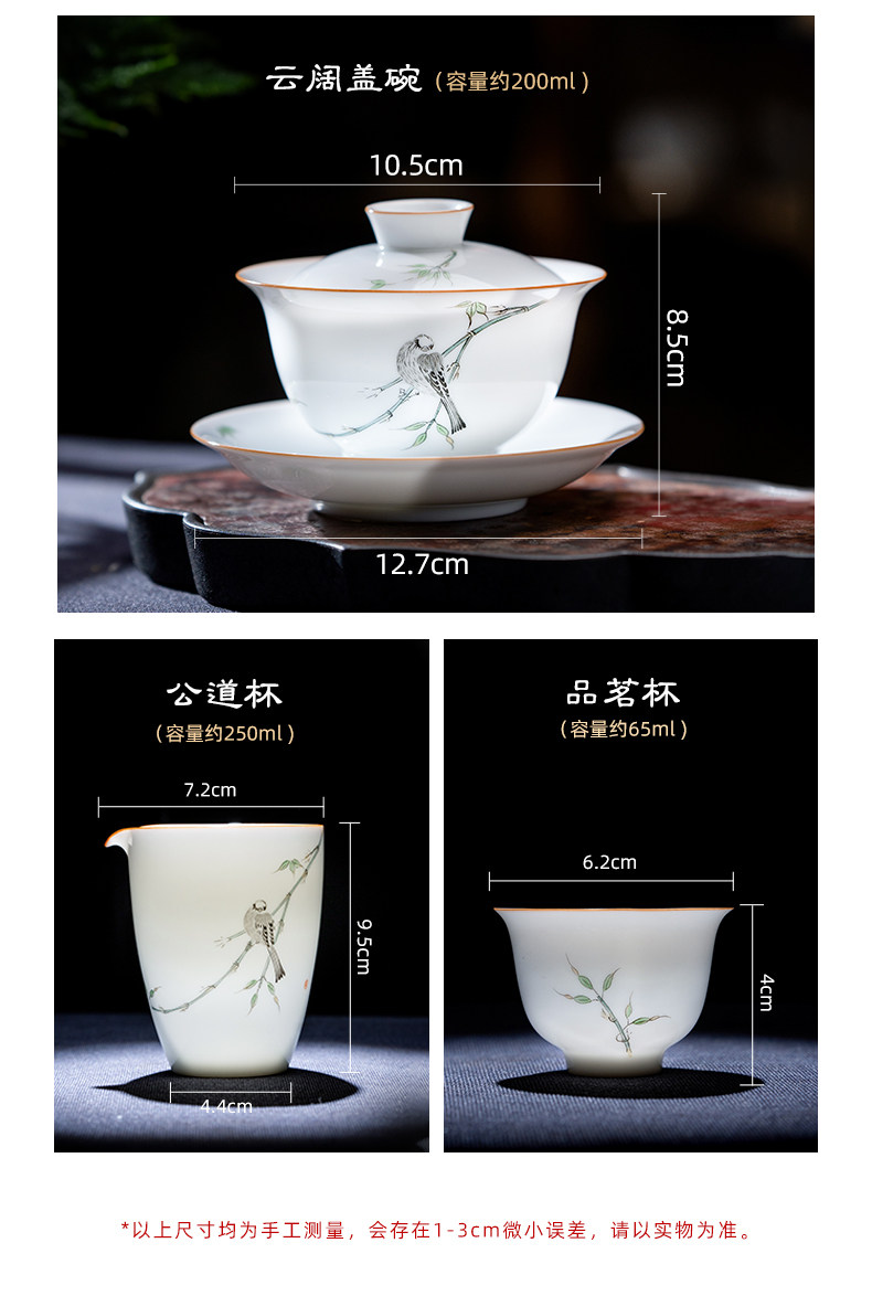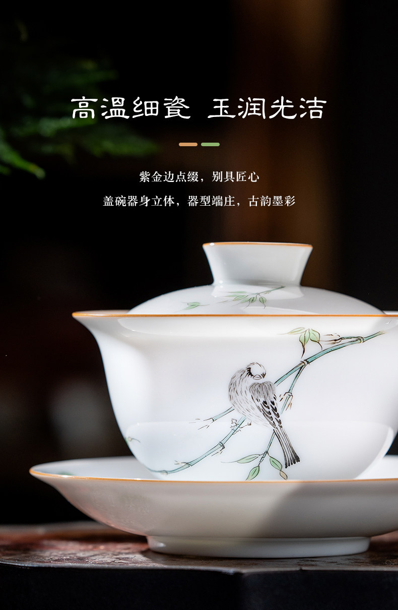 景德镇陶瓷手绘三才盖碗茶杯功夫茶具套装单个高档泡茶茶碗可悬停