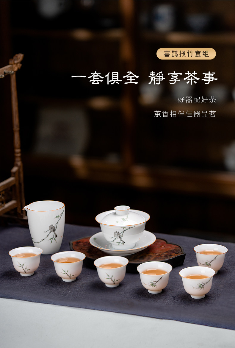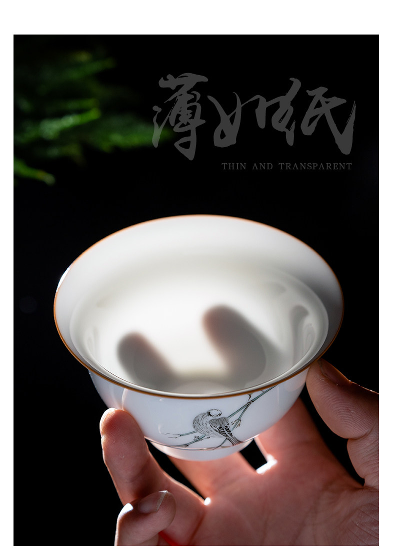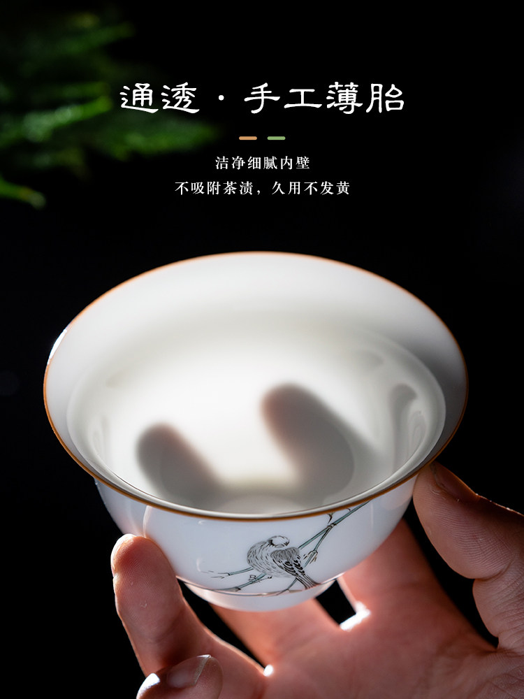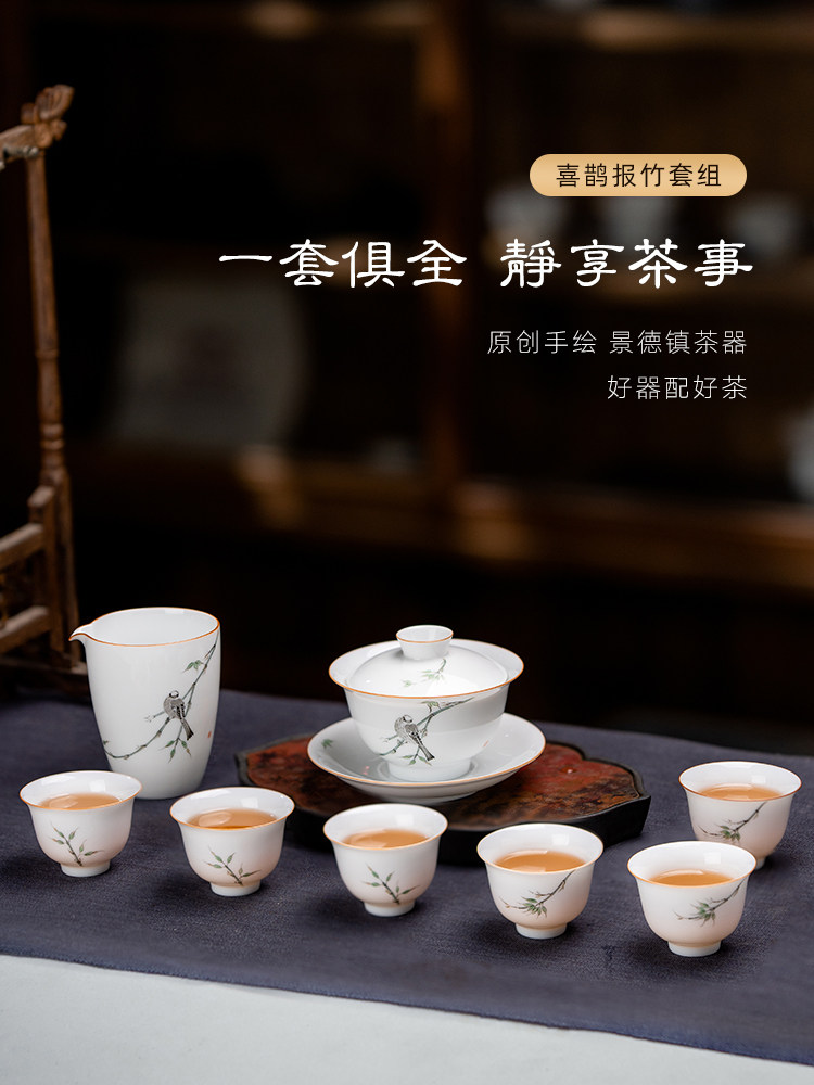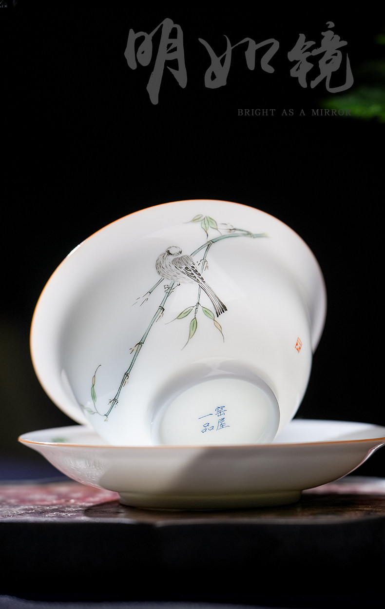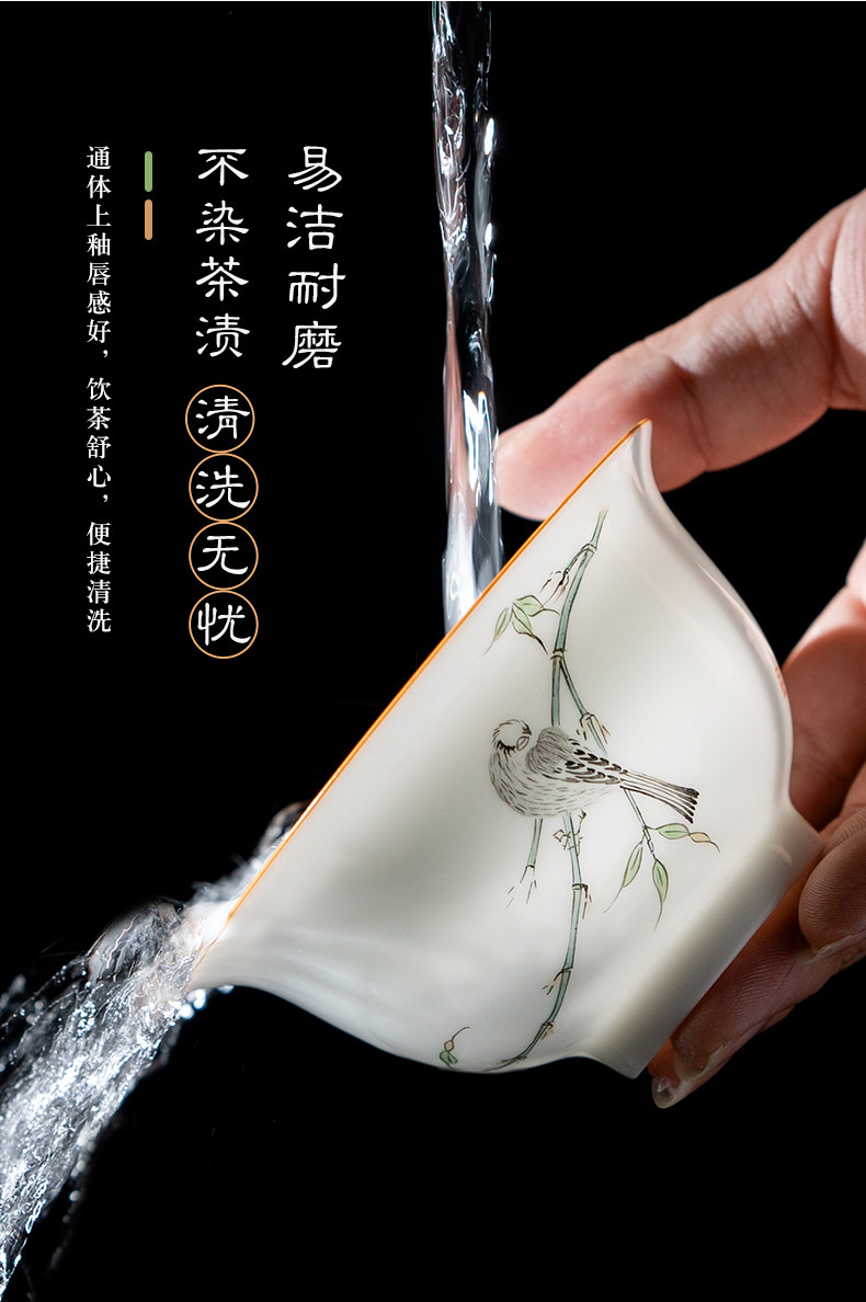 景德镇陶瓷手绘三才盖碗茶杯功夫茶具套装单个高档泡茶茶碗可悬停