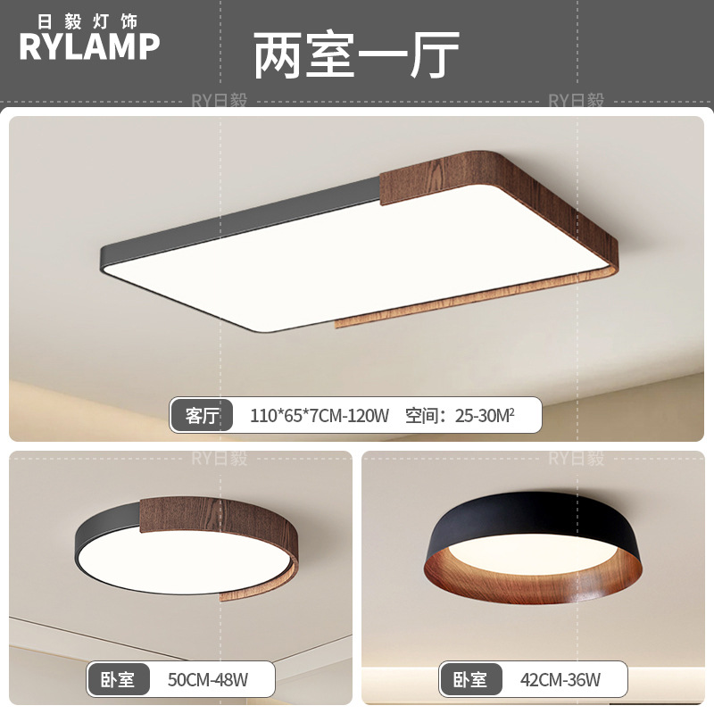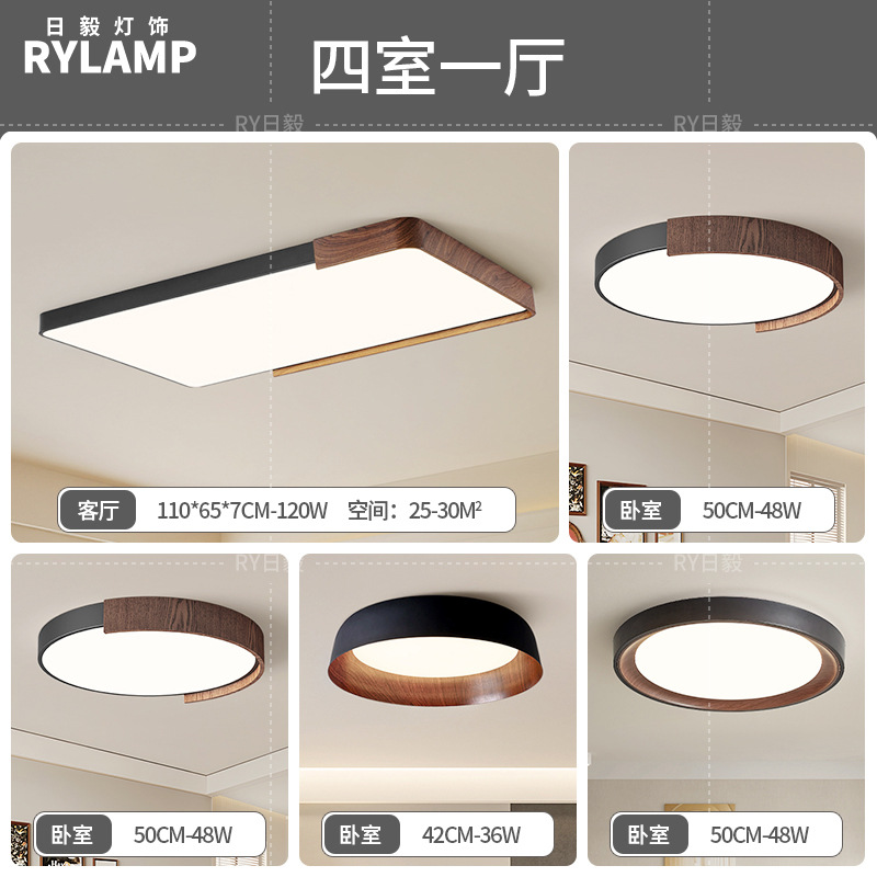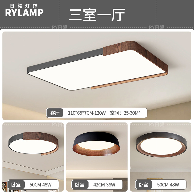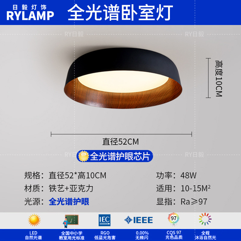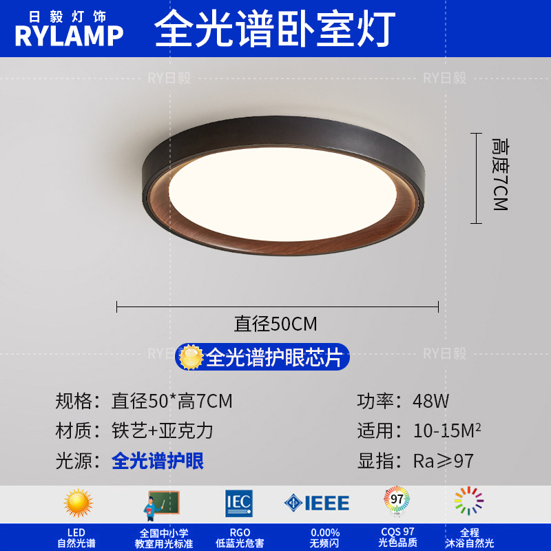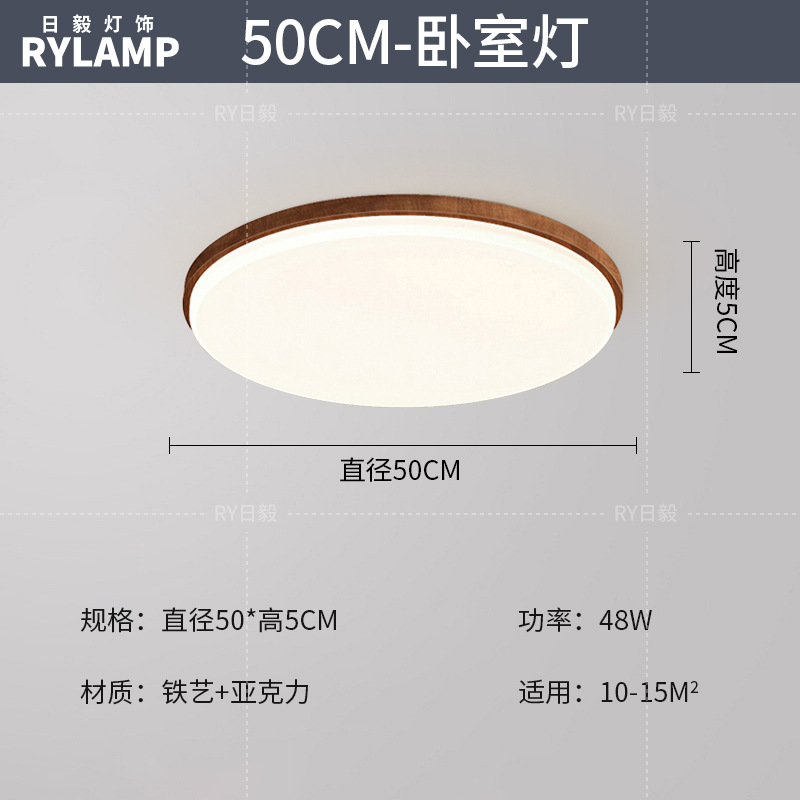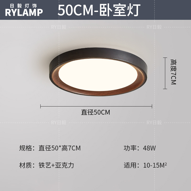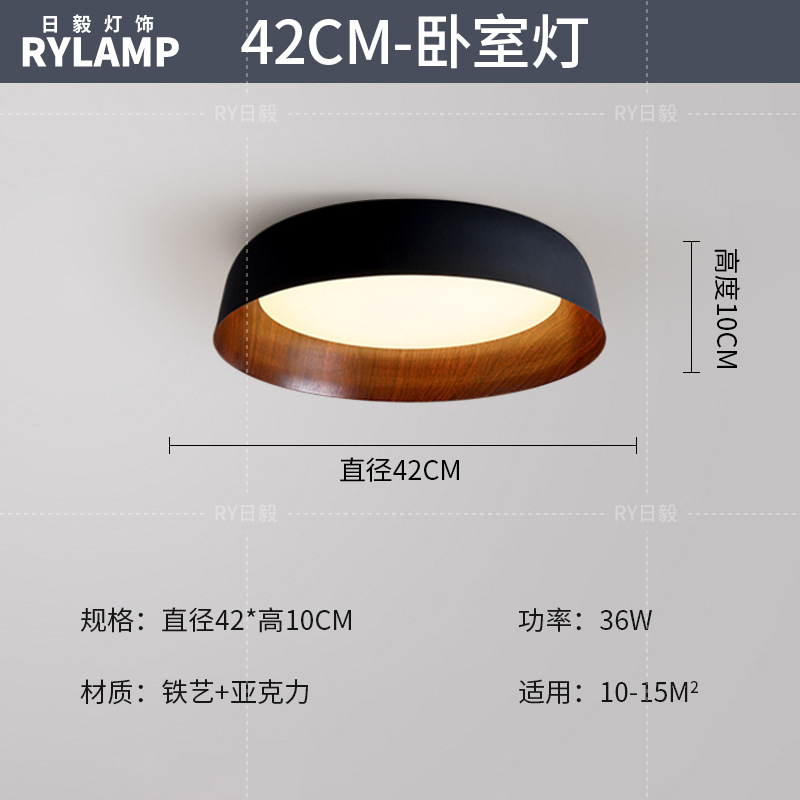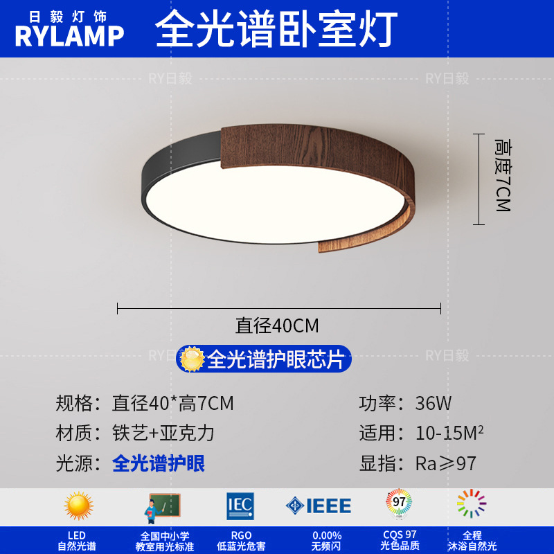 意式护眼书房灯极简圆形卧室吸顶灯胡桃木纹中古风主卧灯房间灯具