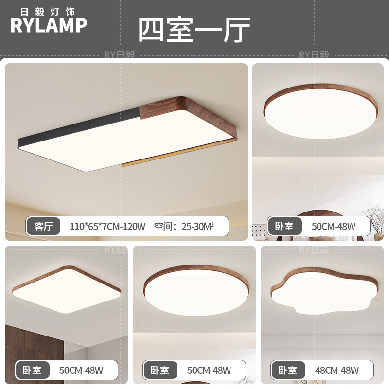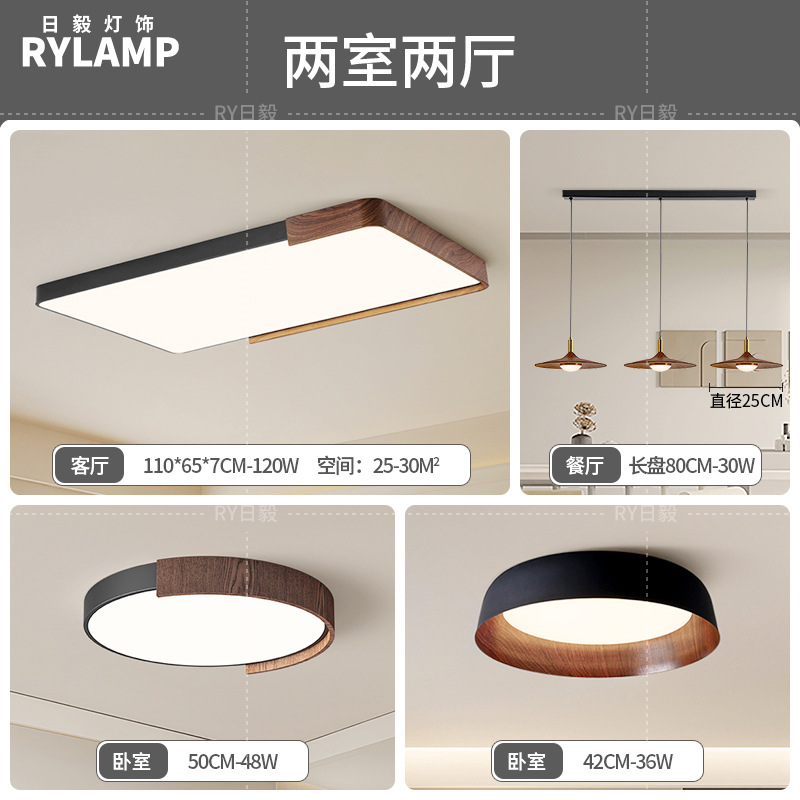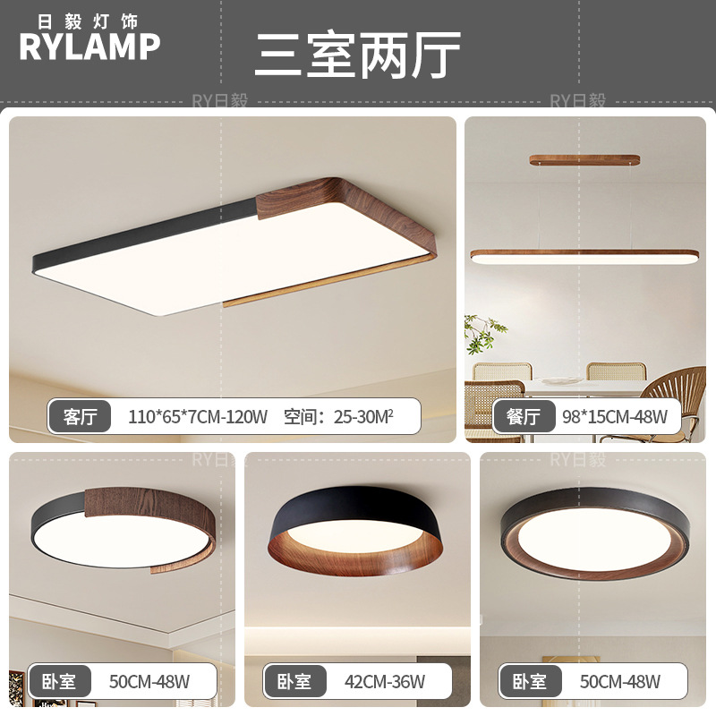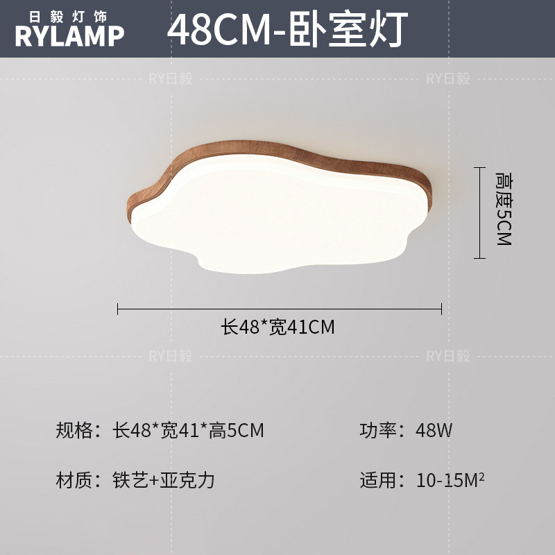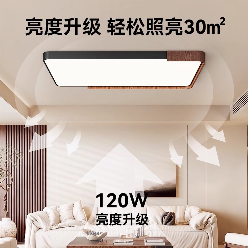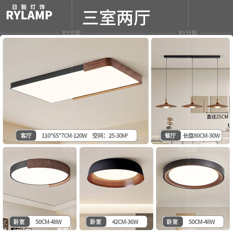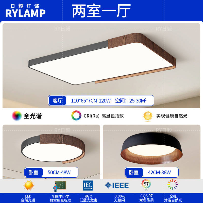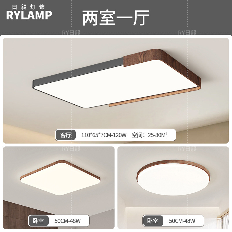 意式护眼书房灯极简圆形卧室吸顶灯胡桃木纹中古风主卧灯房间灯具