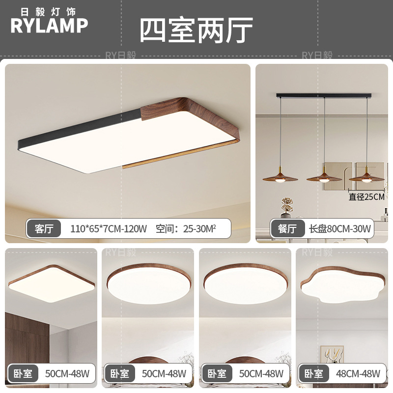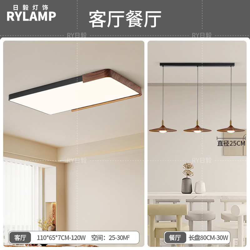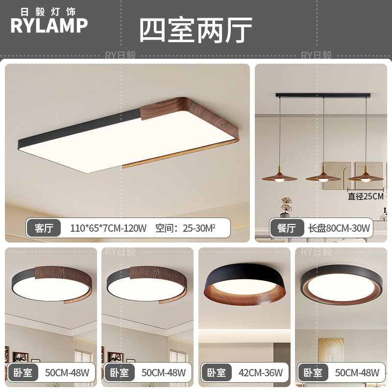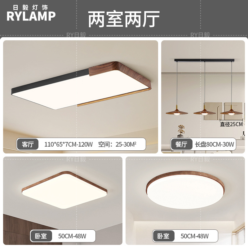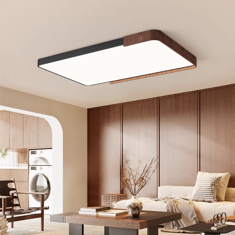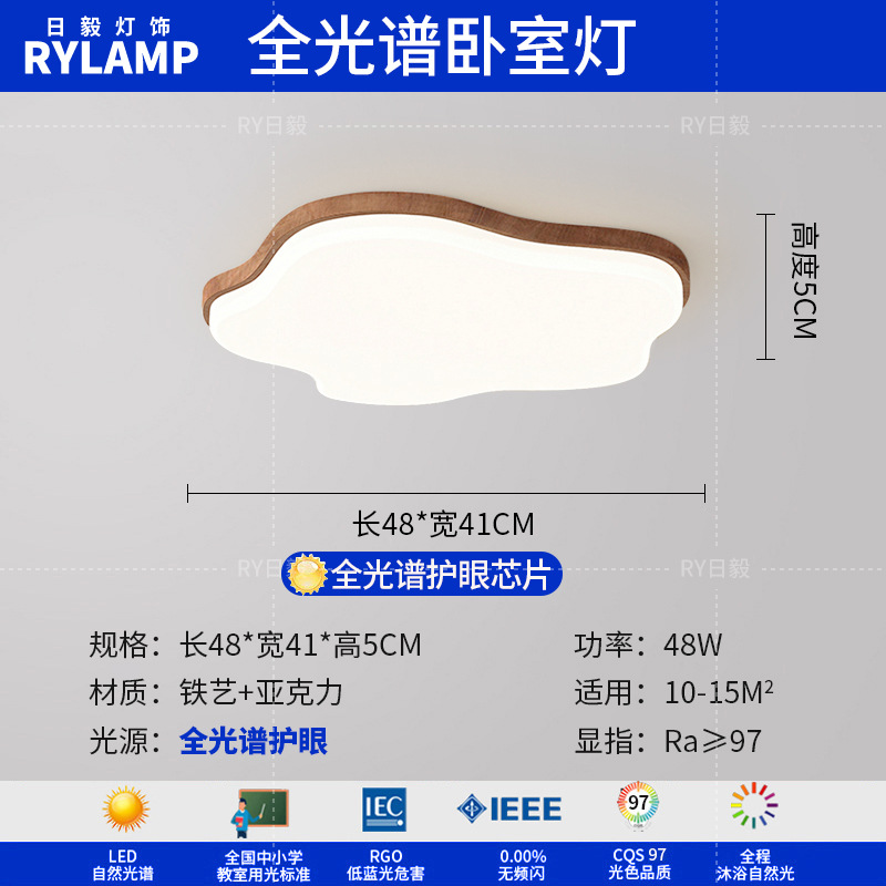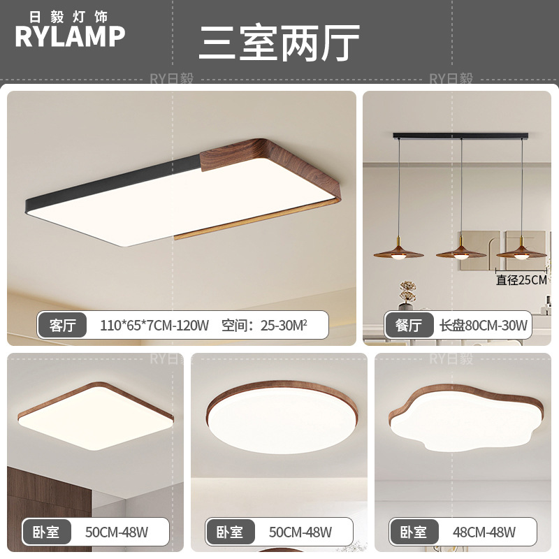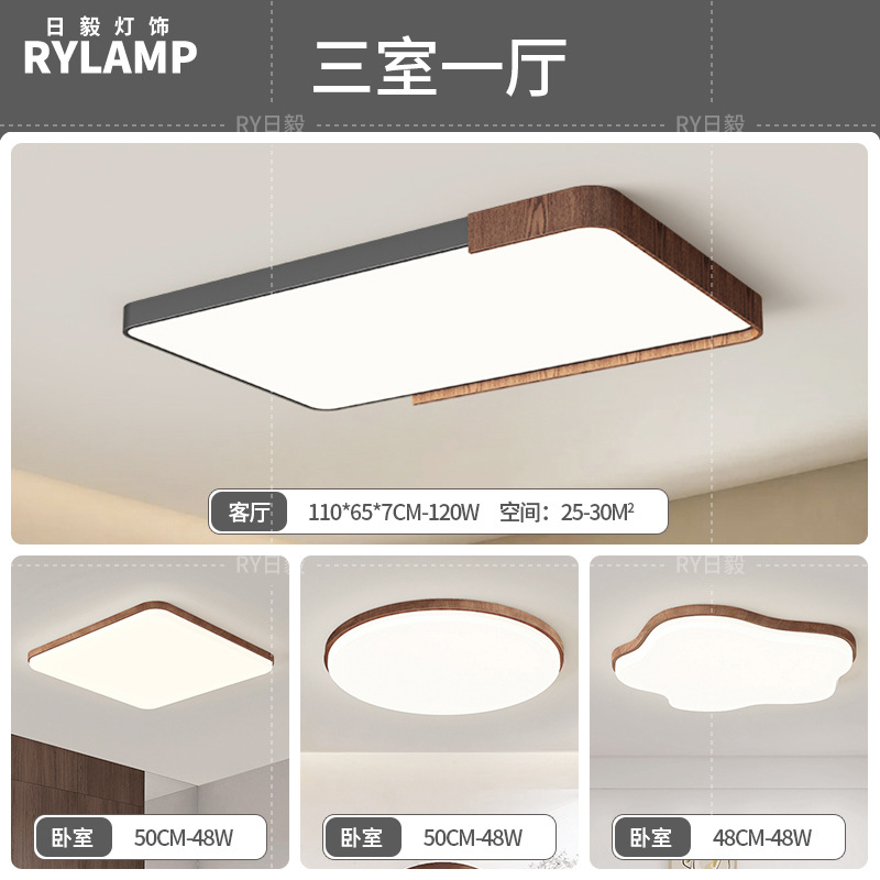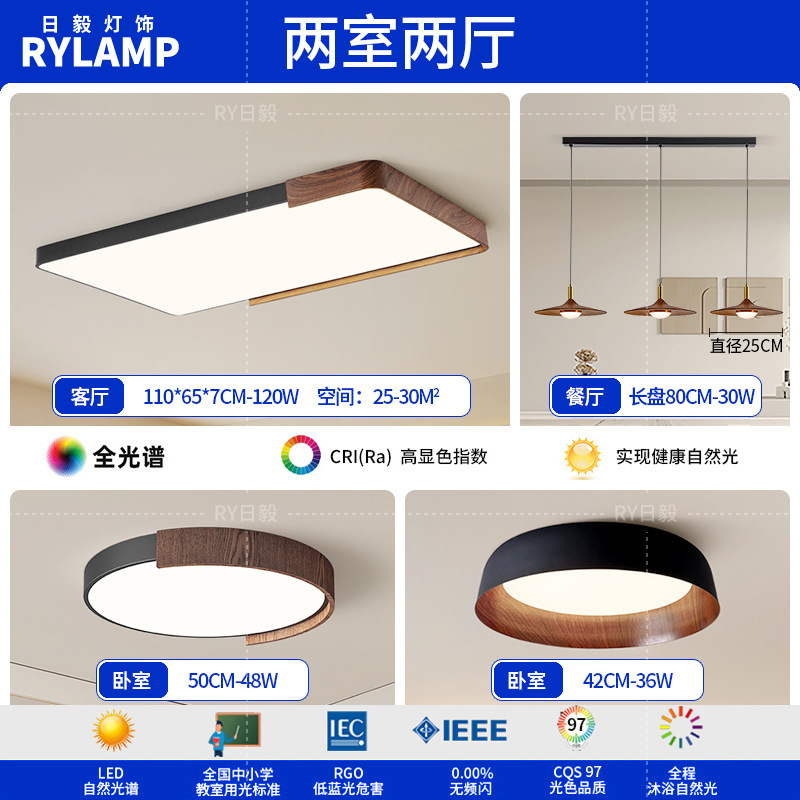 意式护眼书房灯极简圆形卧室吸顶灯胡桃木纹中古风主卧灯房间灯具