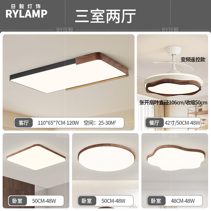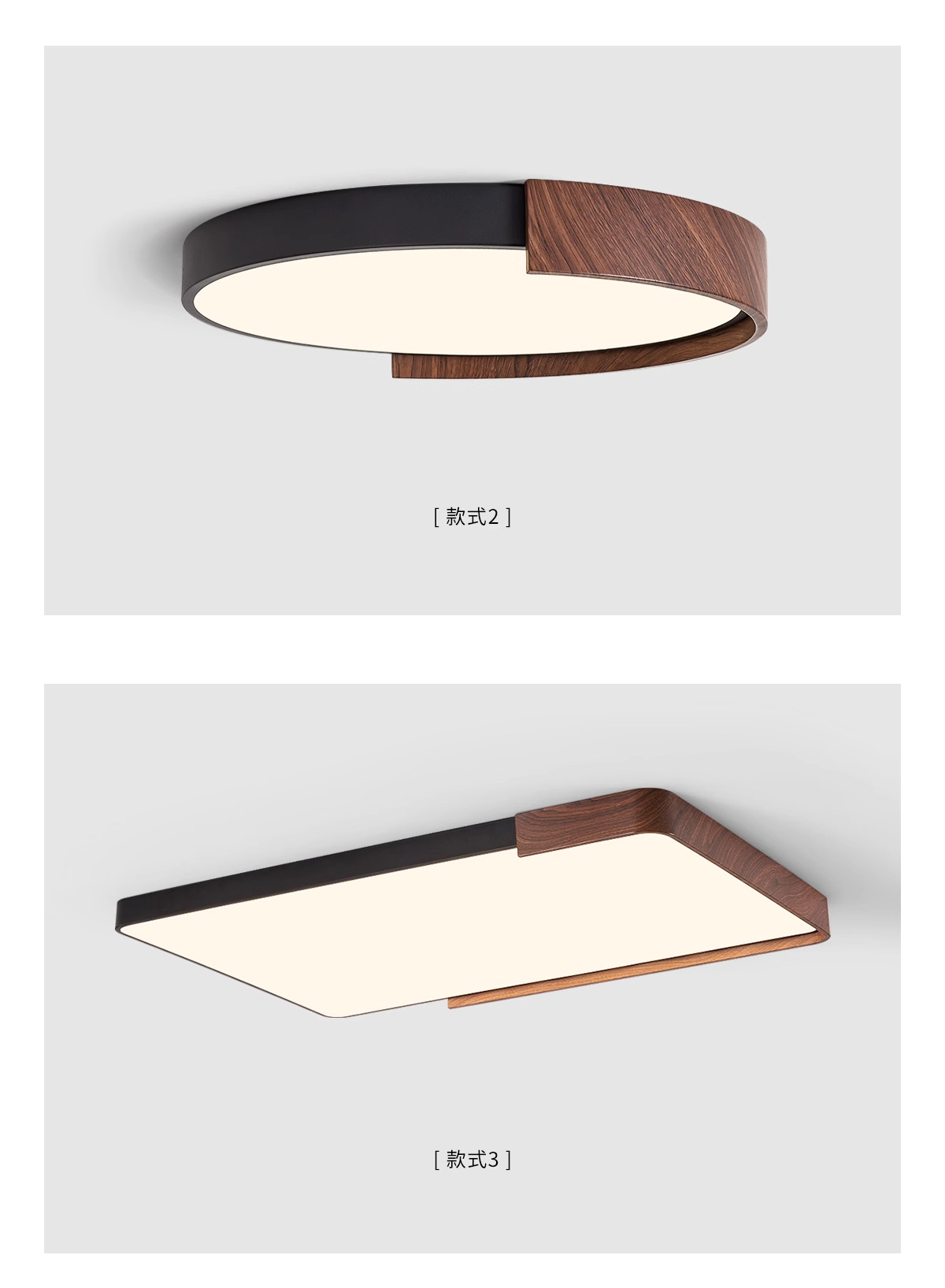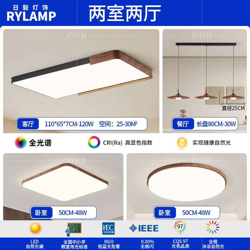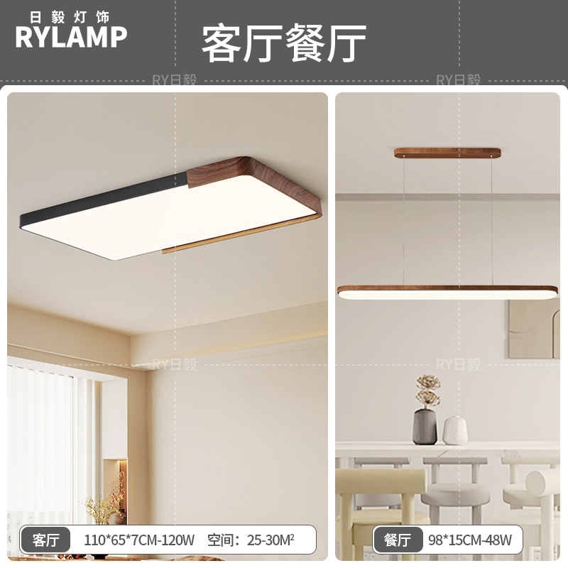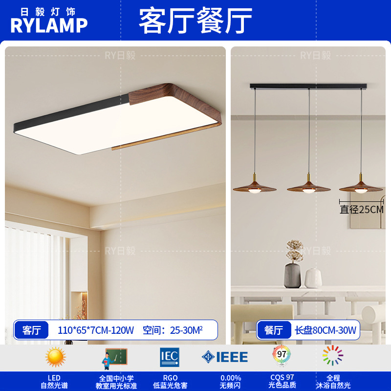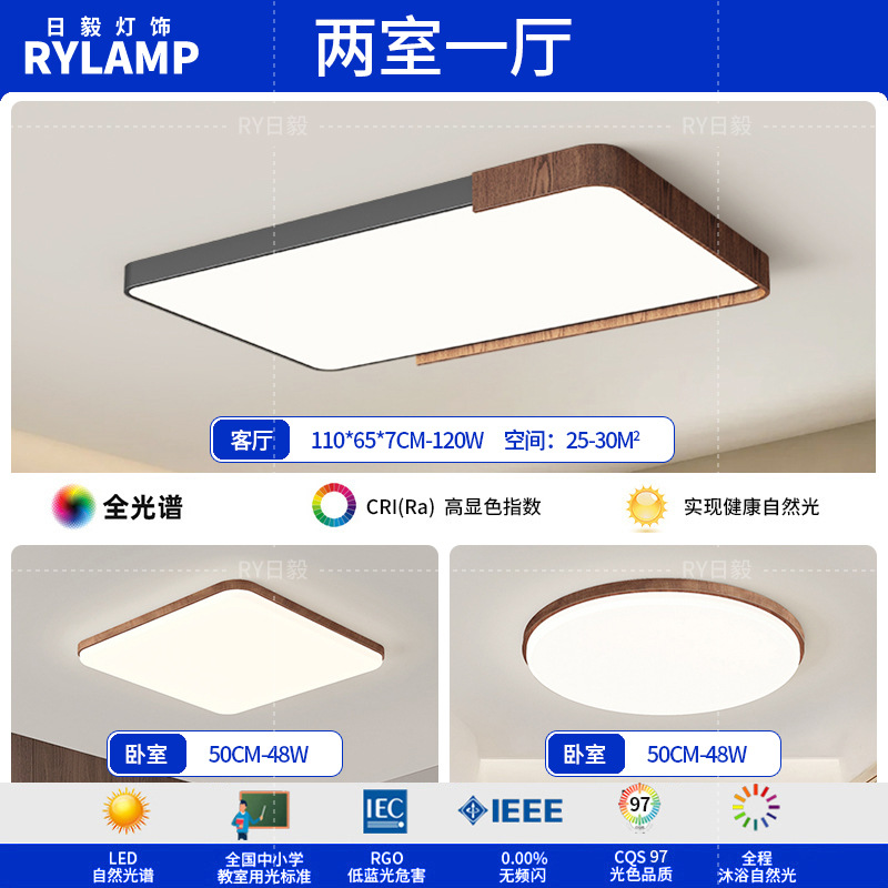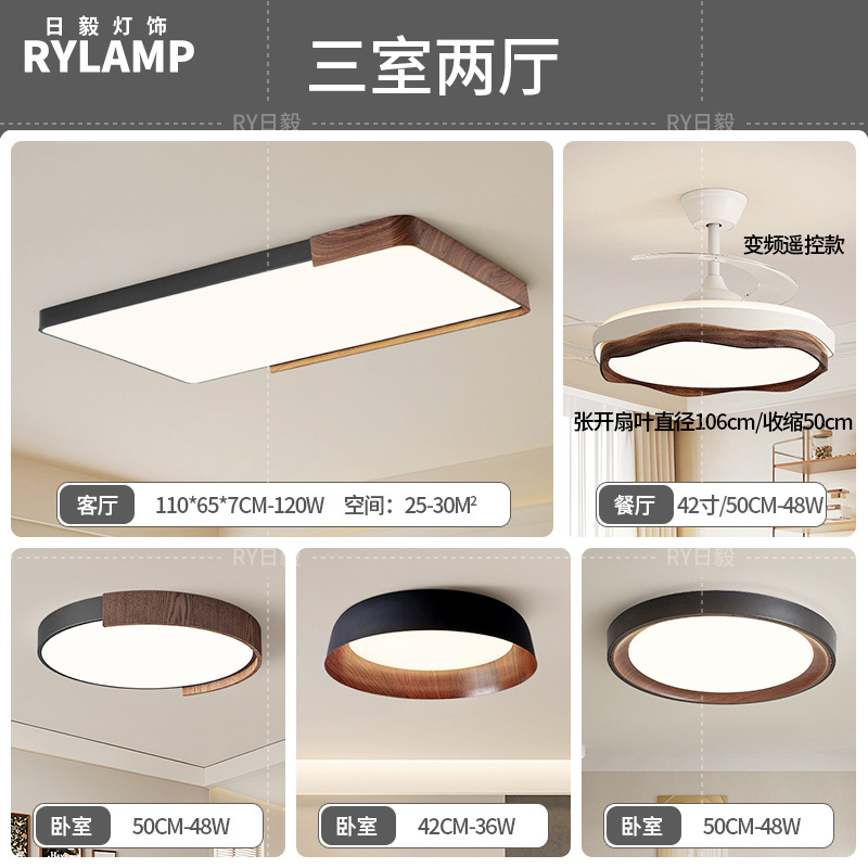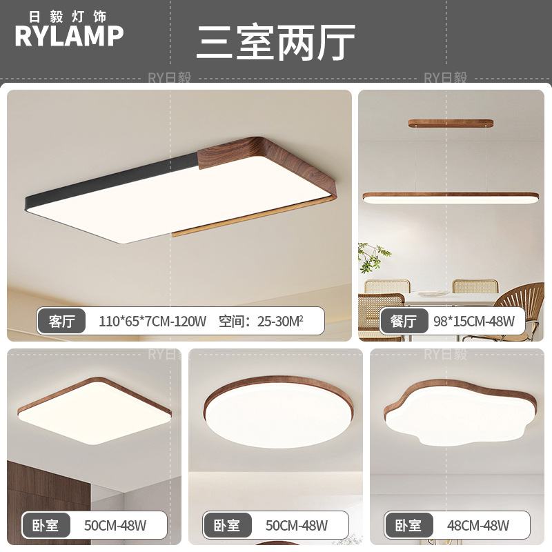 意式护眼书房灯极简圆形卧室吸顶灯胡桃木纹中古风主卧灯房间灯具