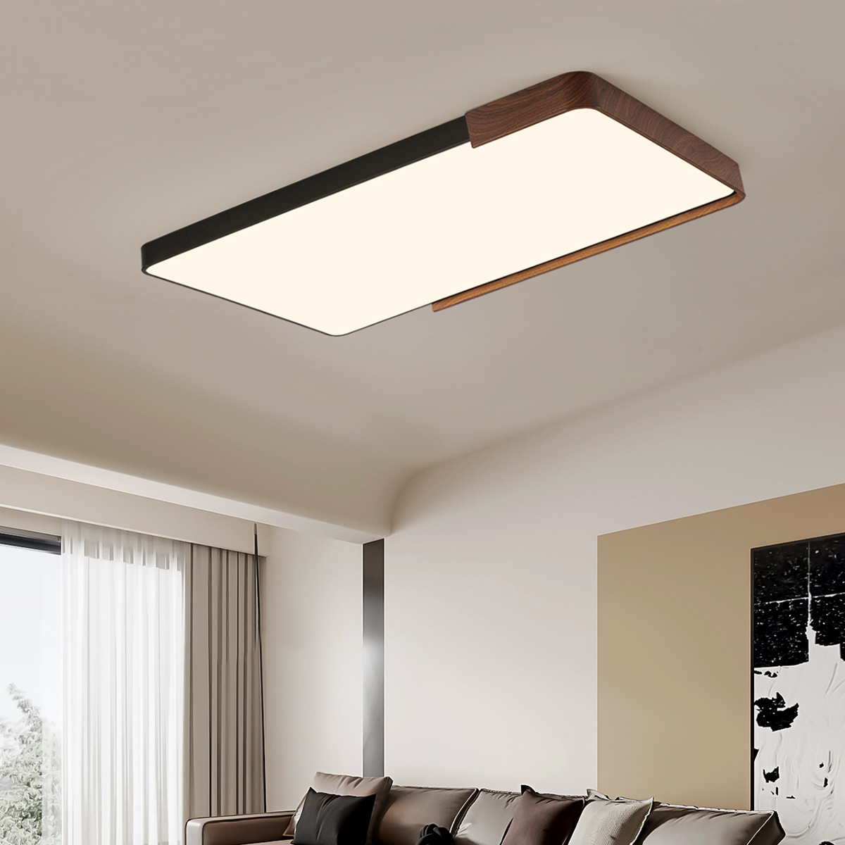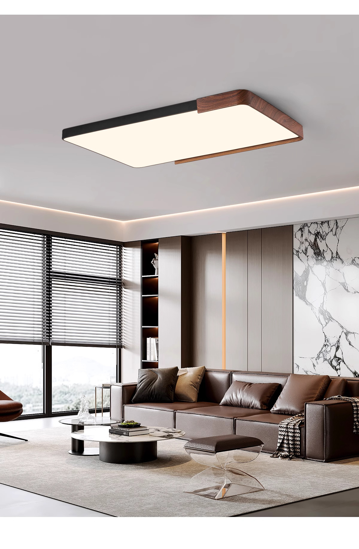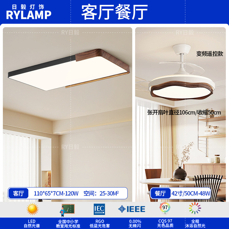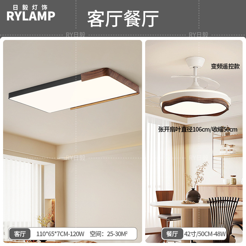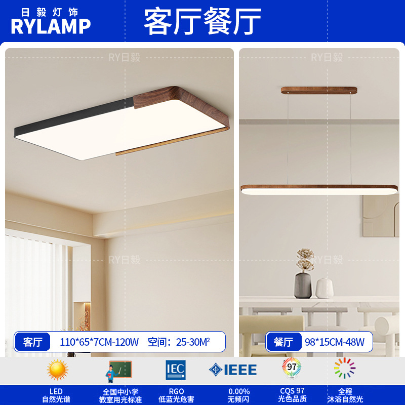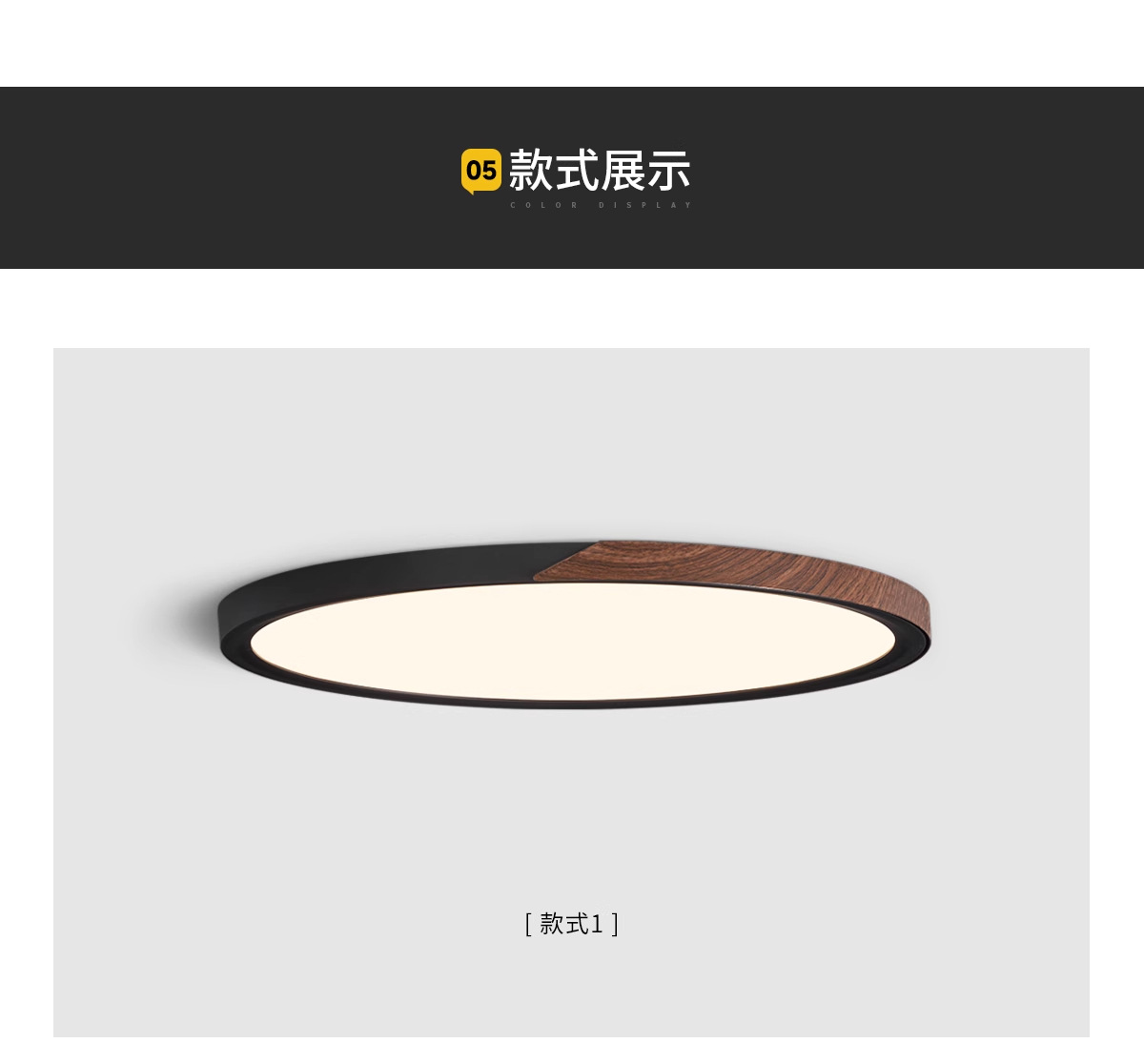 意式护眼书房灯极简圆形卧室吸顶灯胡桃木纹中古风主卧灯房间灯具