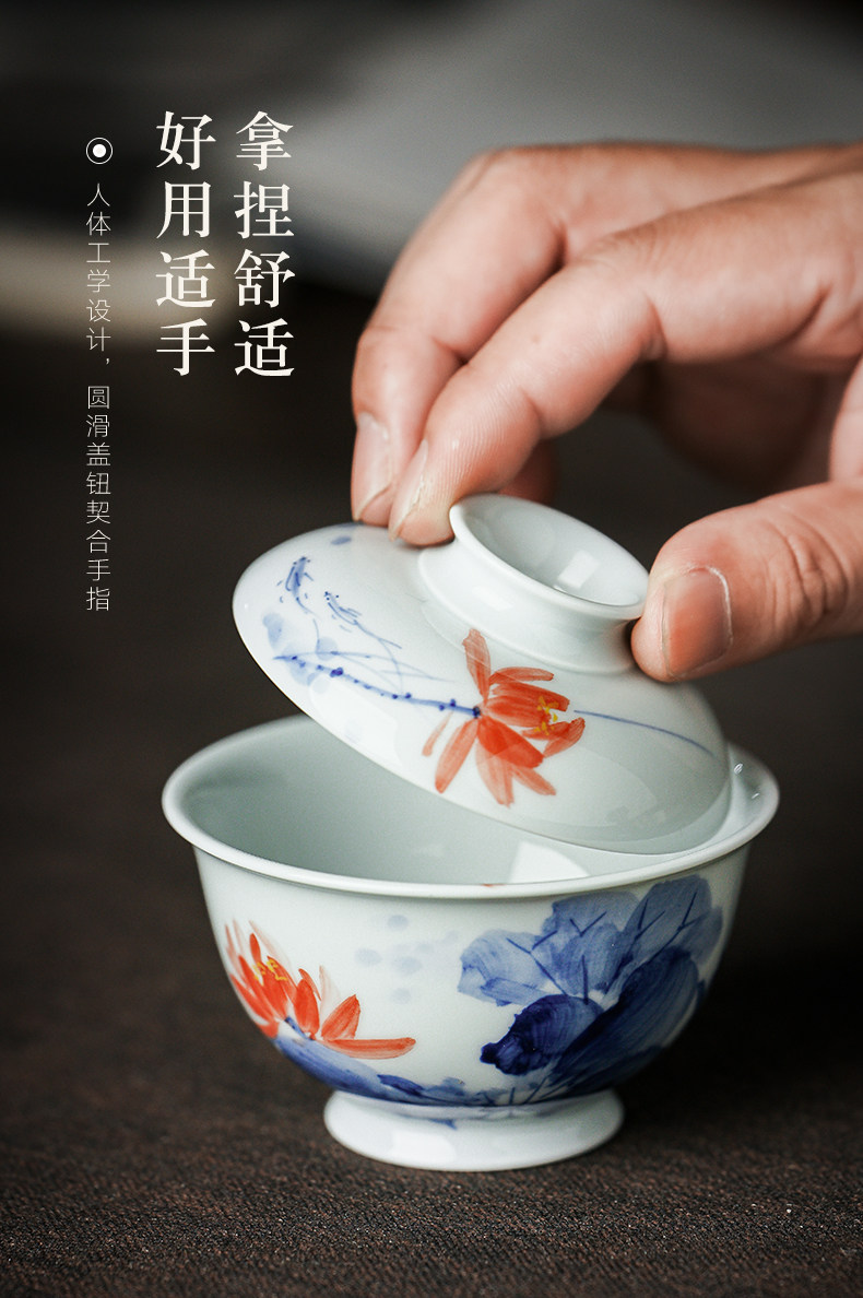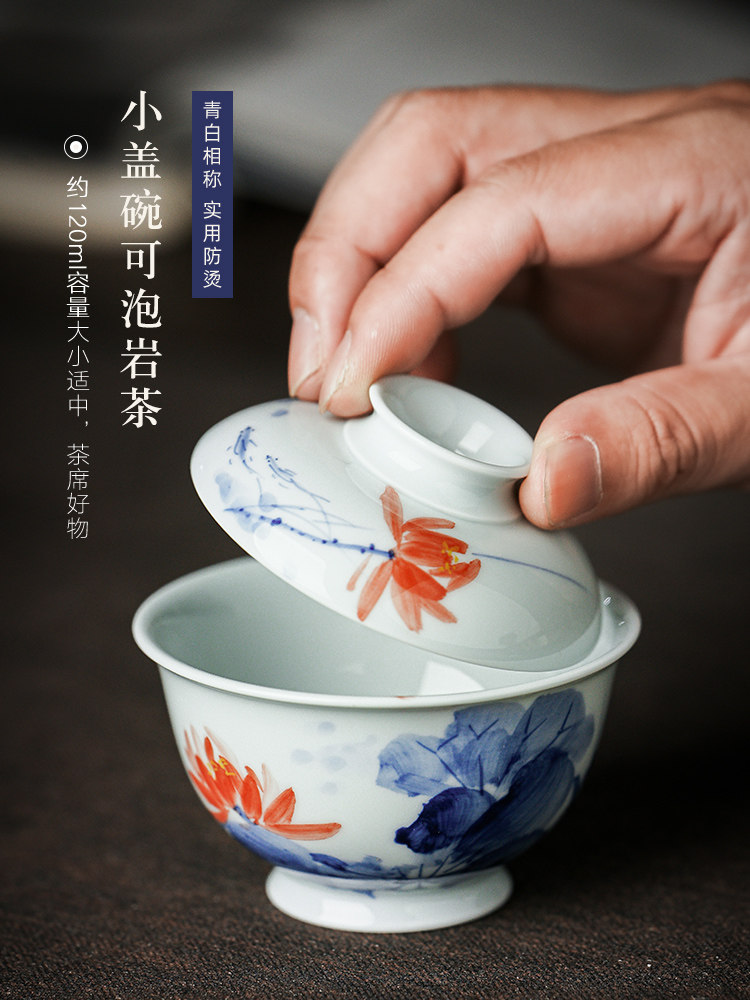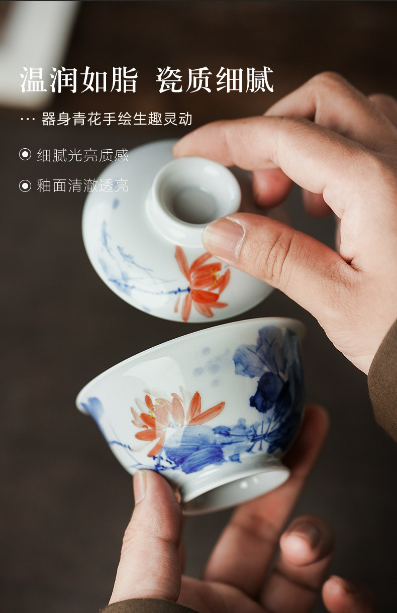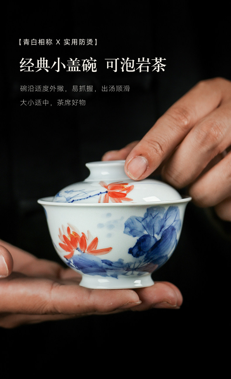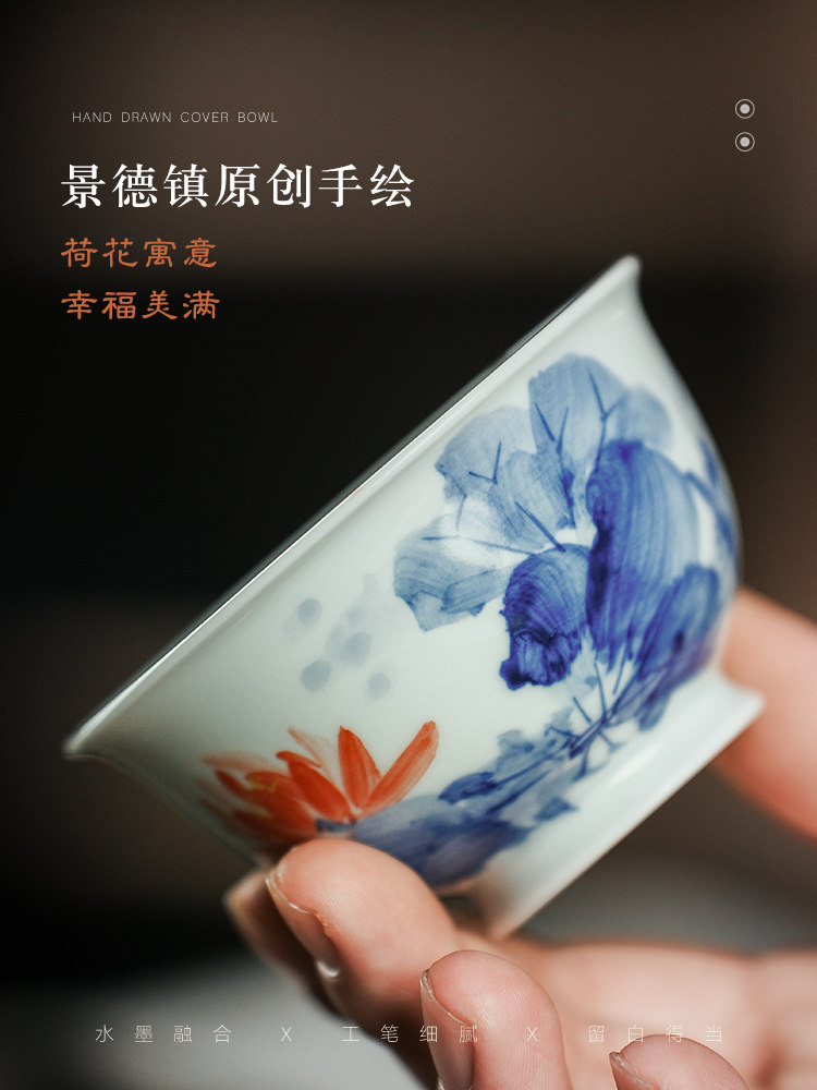 景德镇陶瓷手绘青花釉下彩功夫茶具 小盖碗茶杯 单个高档茶碗泡茶