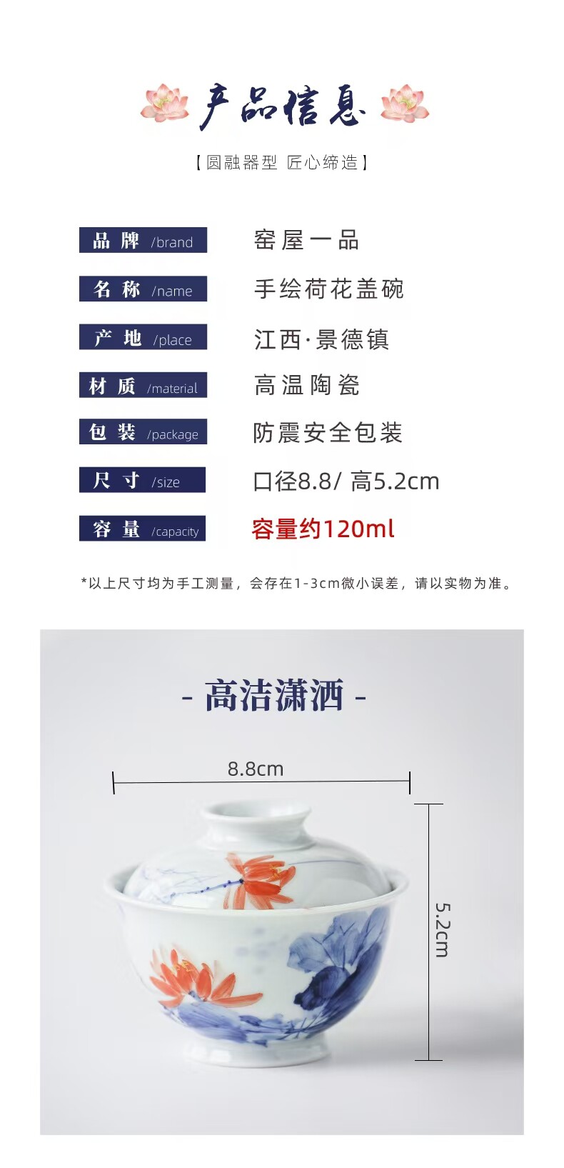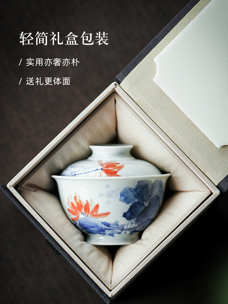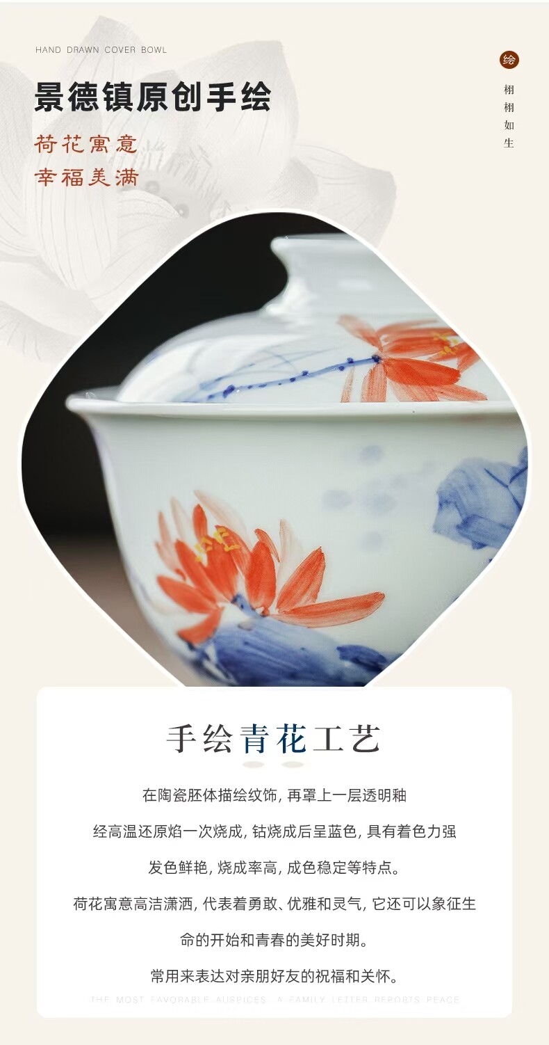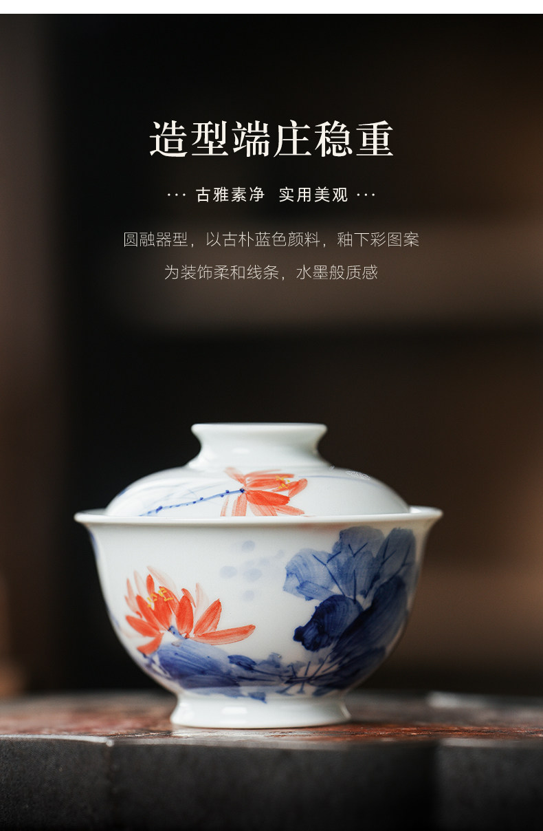 景德镇陶瓷手绘青花釉下彩功夫茶具 小盖碗茶杯 单个高档茶碗泡茶
