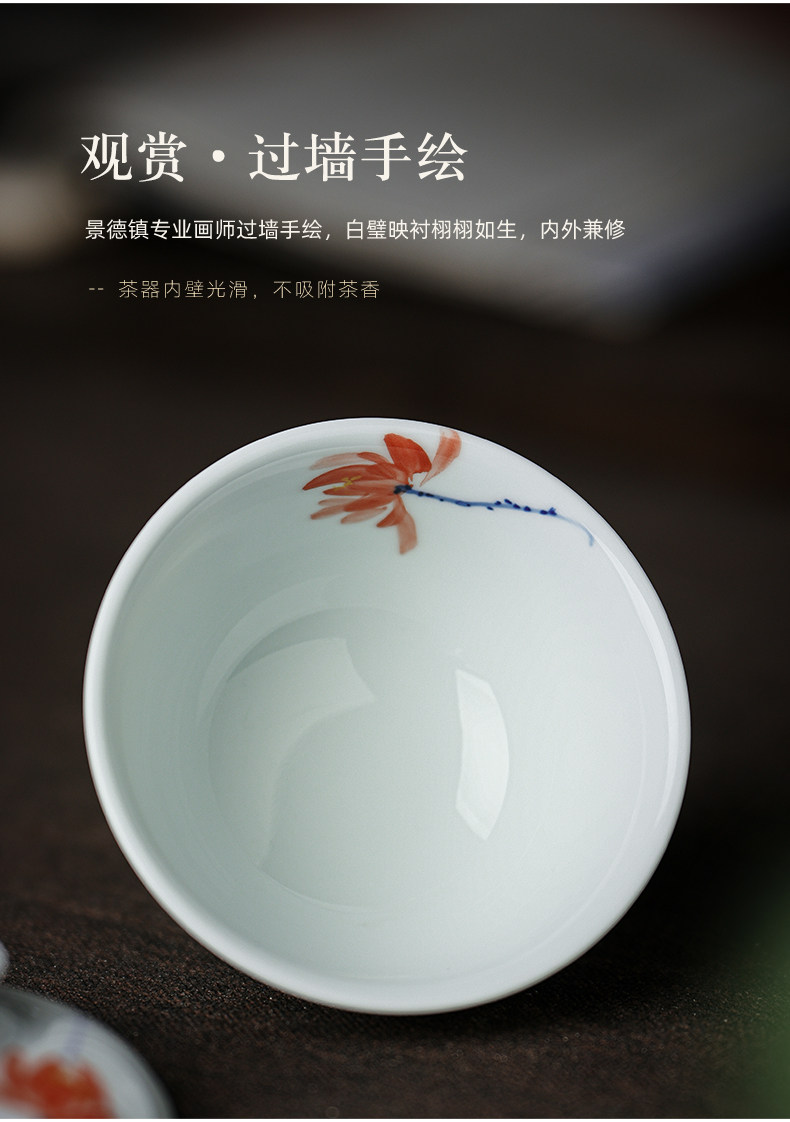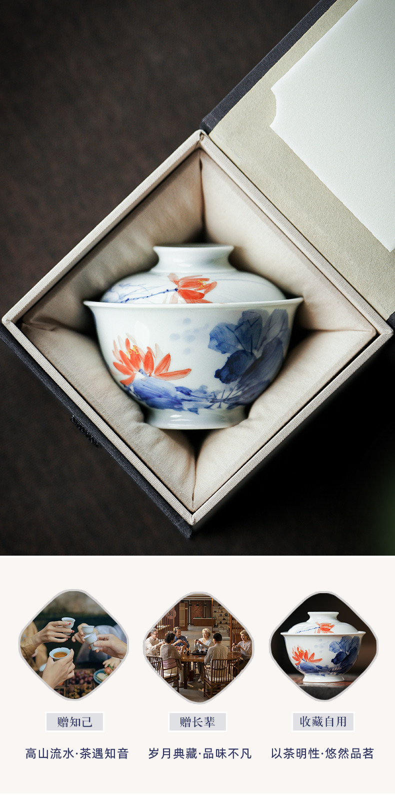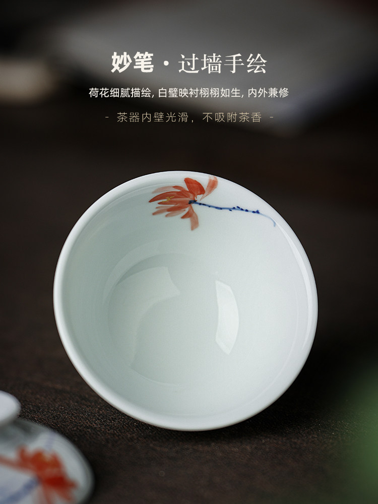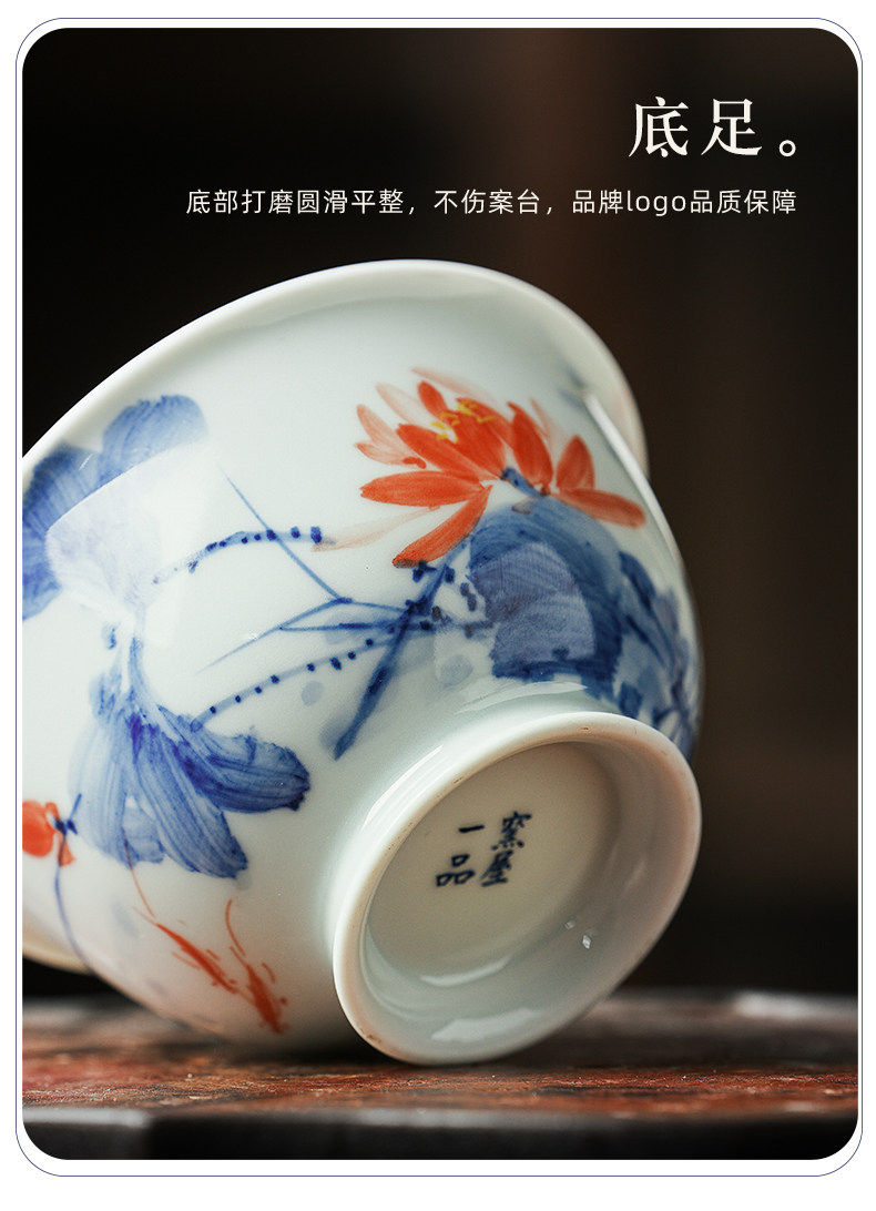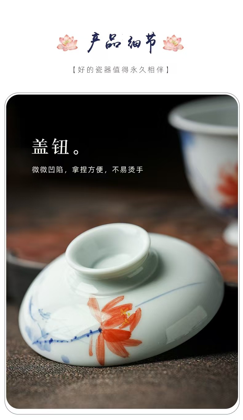 景德镇陶瓷手绘青花釉下彩功夫茶具 小盖碗茶杯 单个高档茶碗泡茶