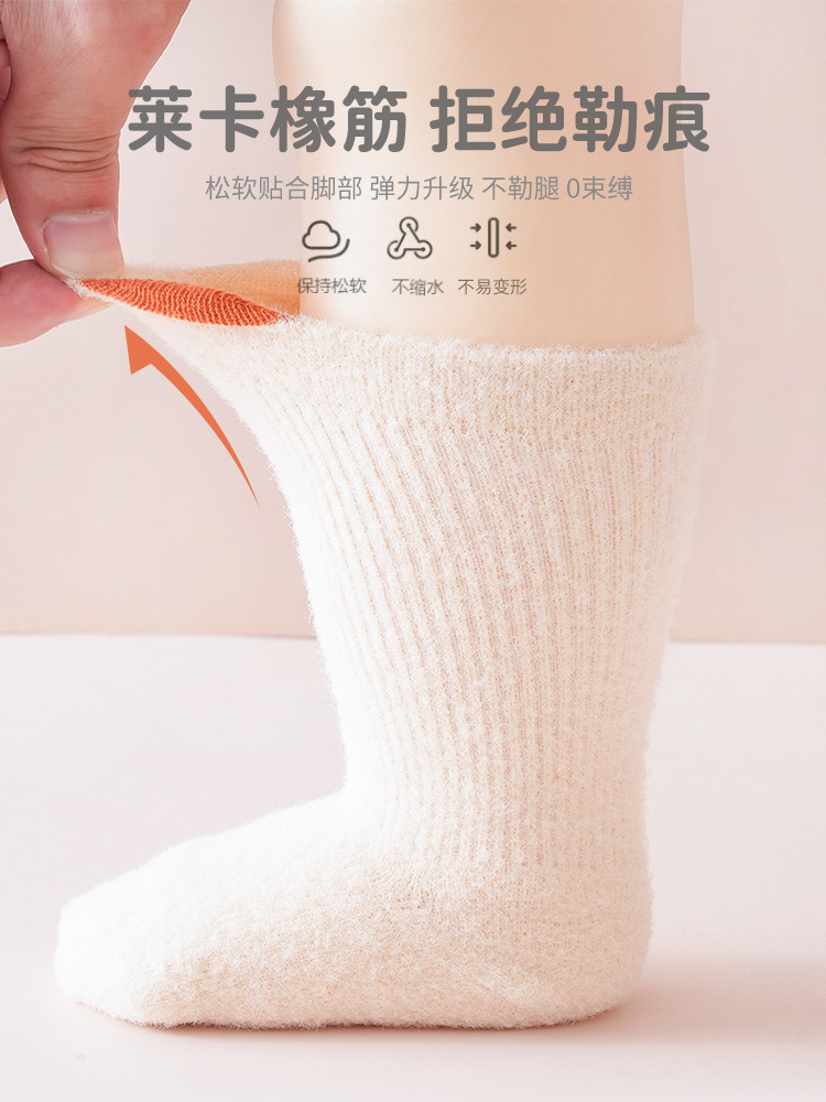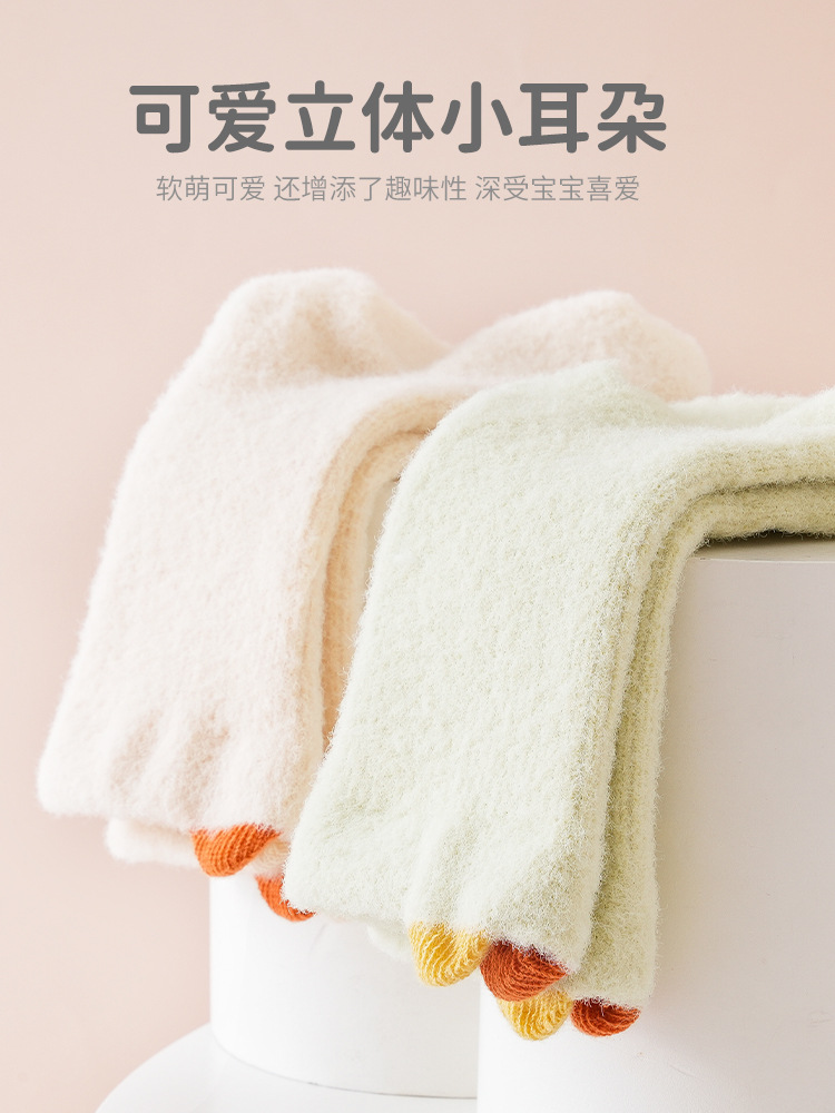 秋冬加绒加厚婴儿袜子a类新生儿宝宝无骨中筒儿童毛圈童袜小耳朵