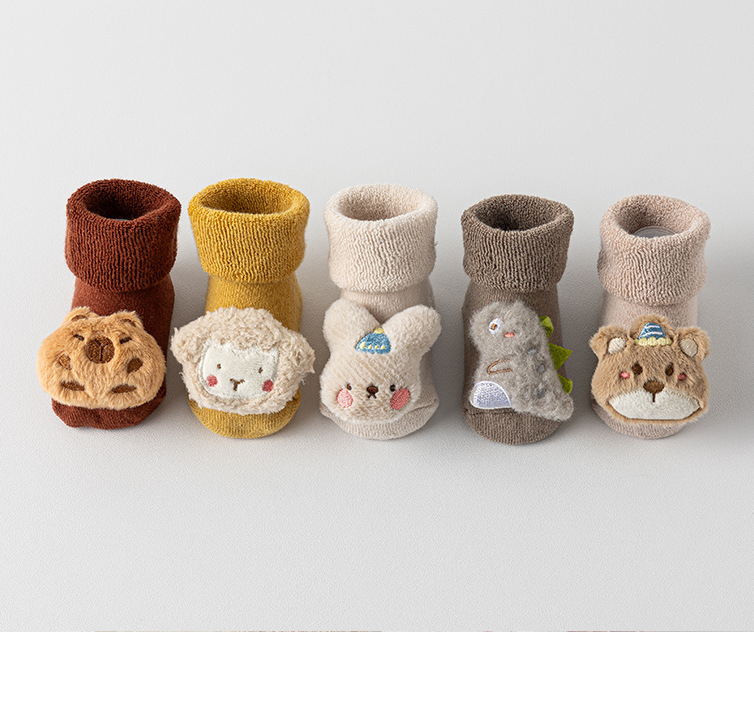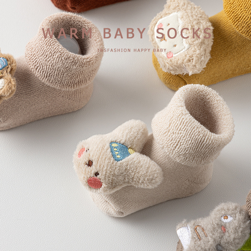 新初生婴幼儿童0-1-3岁宝宝棉秋冬加绒加厚保暖毛圈中筒地板袜子