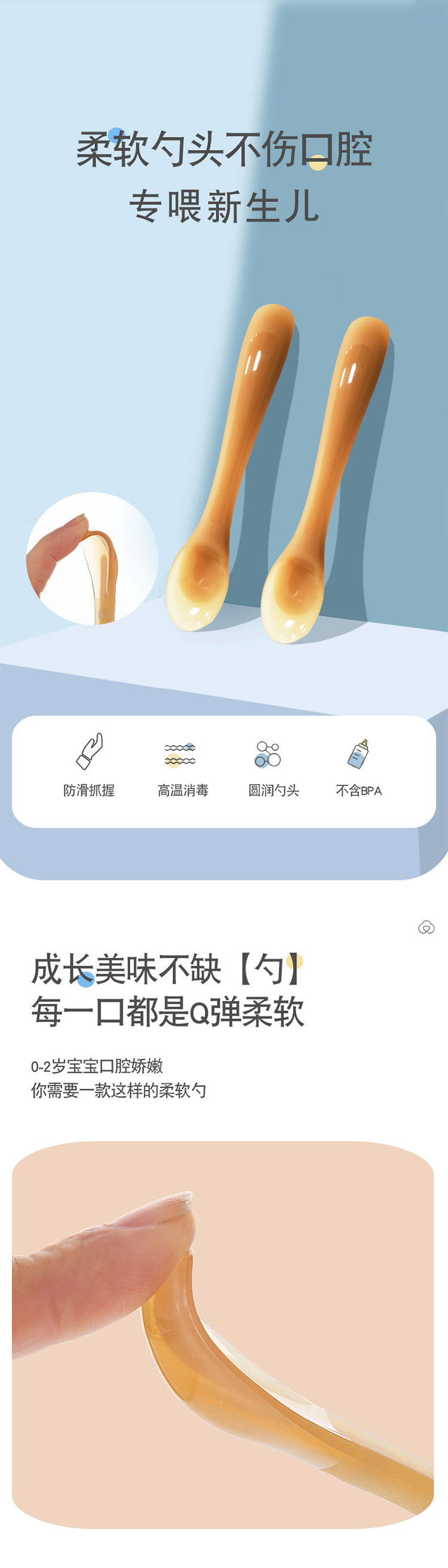 新生儿硅胶软勺婴儿勺柔软勺头辅食勺喂水勺喂养勺