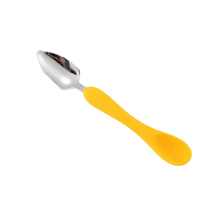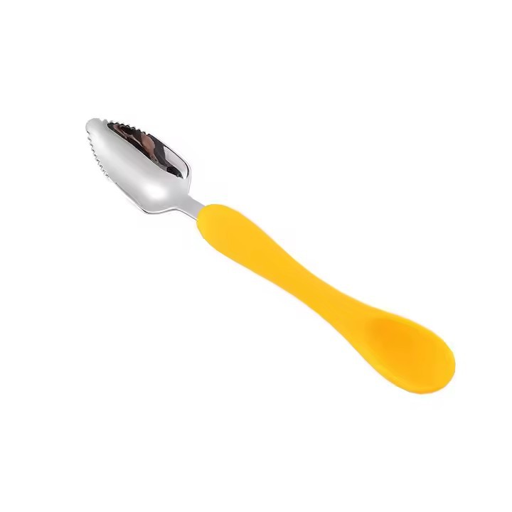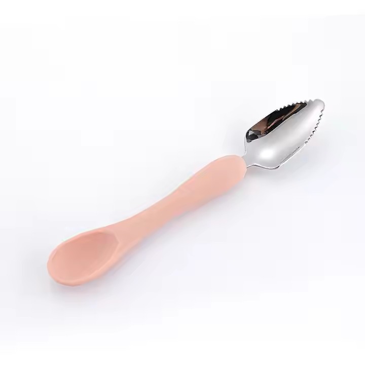 新款婴儿辅食水果刮泥勺 双头两用刮喂勺 果泥勺硅胶软勺喂养工具