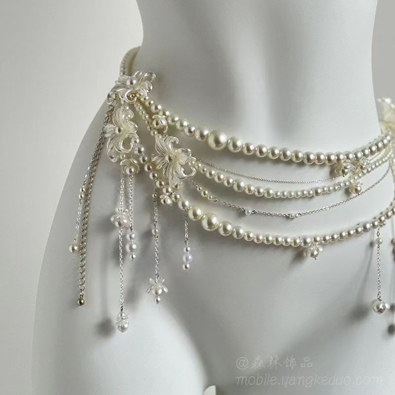 超仙流苏花朵珍珠多层腰链小众高级感个性百搭时尚气质女搭配腰饰