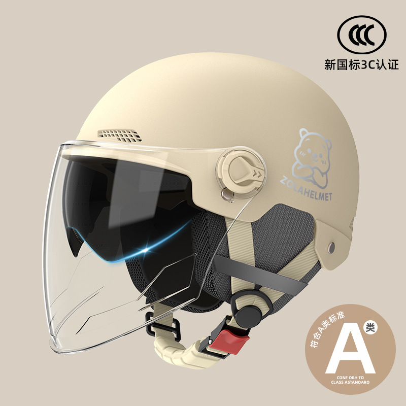 头盔电动车女3c夏盔炫彩双镜片款带护耳保暖防晒新国标A类四季通
