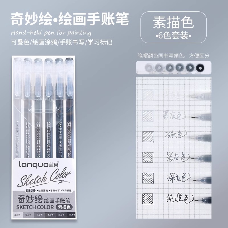 蓝果手帐笔套装大容量手账中性笔绘画笔记荧光笔划重点笔单头细笔