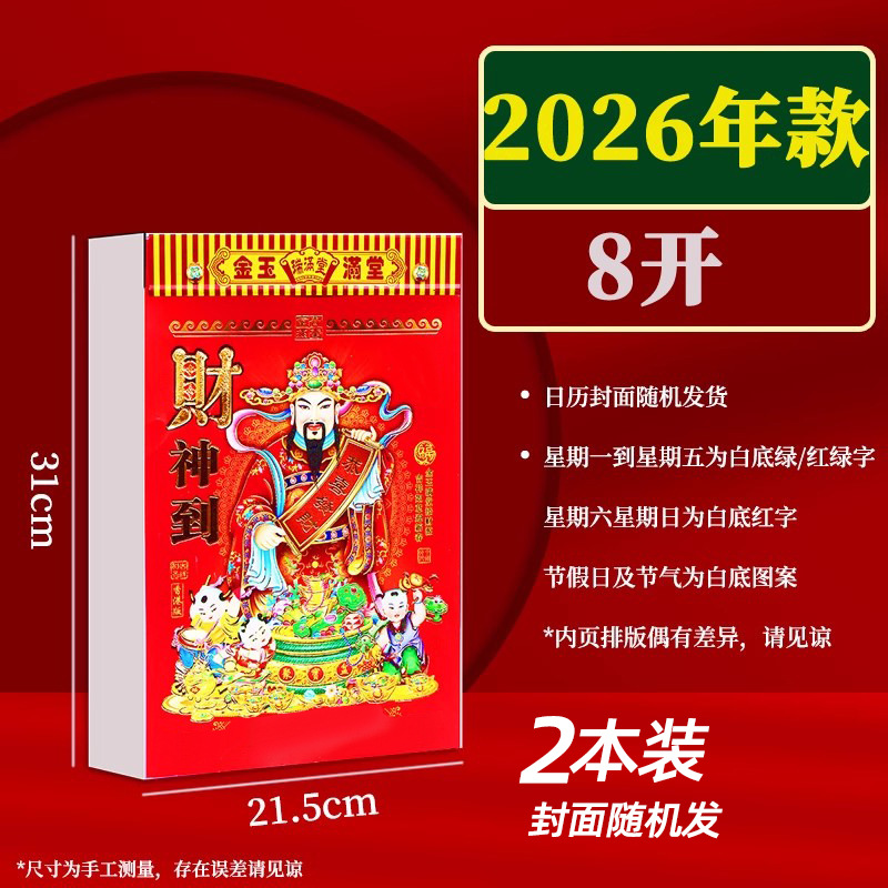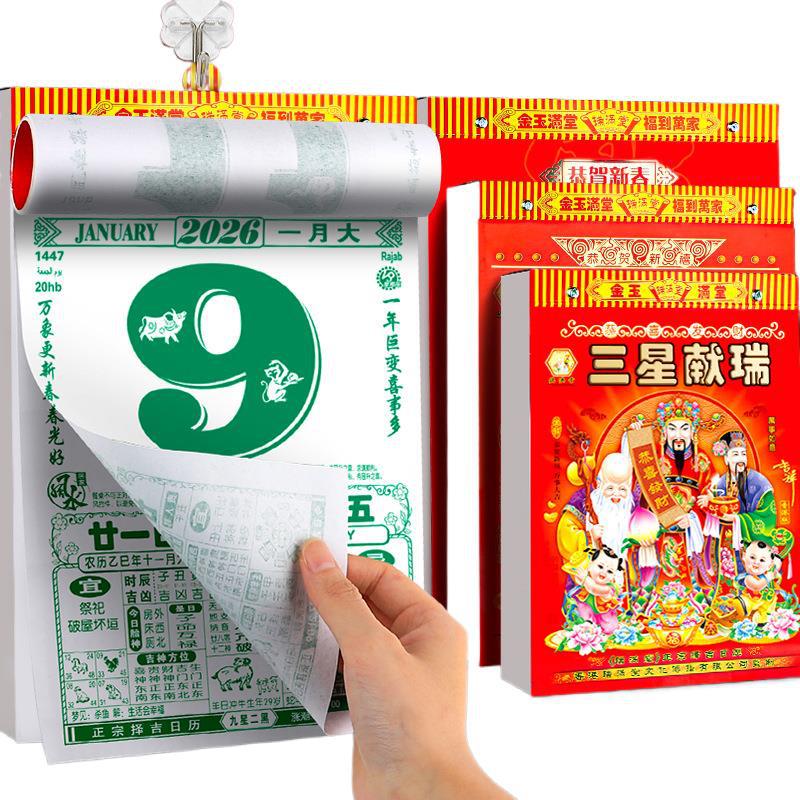 日历2026年老黄历新款挂历家用挂墙大号传统黄历老式手撕万年历挂