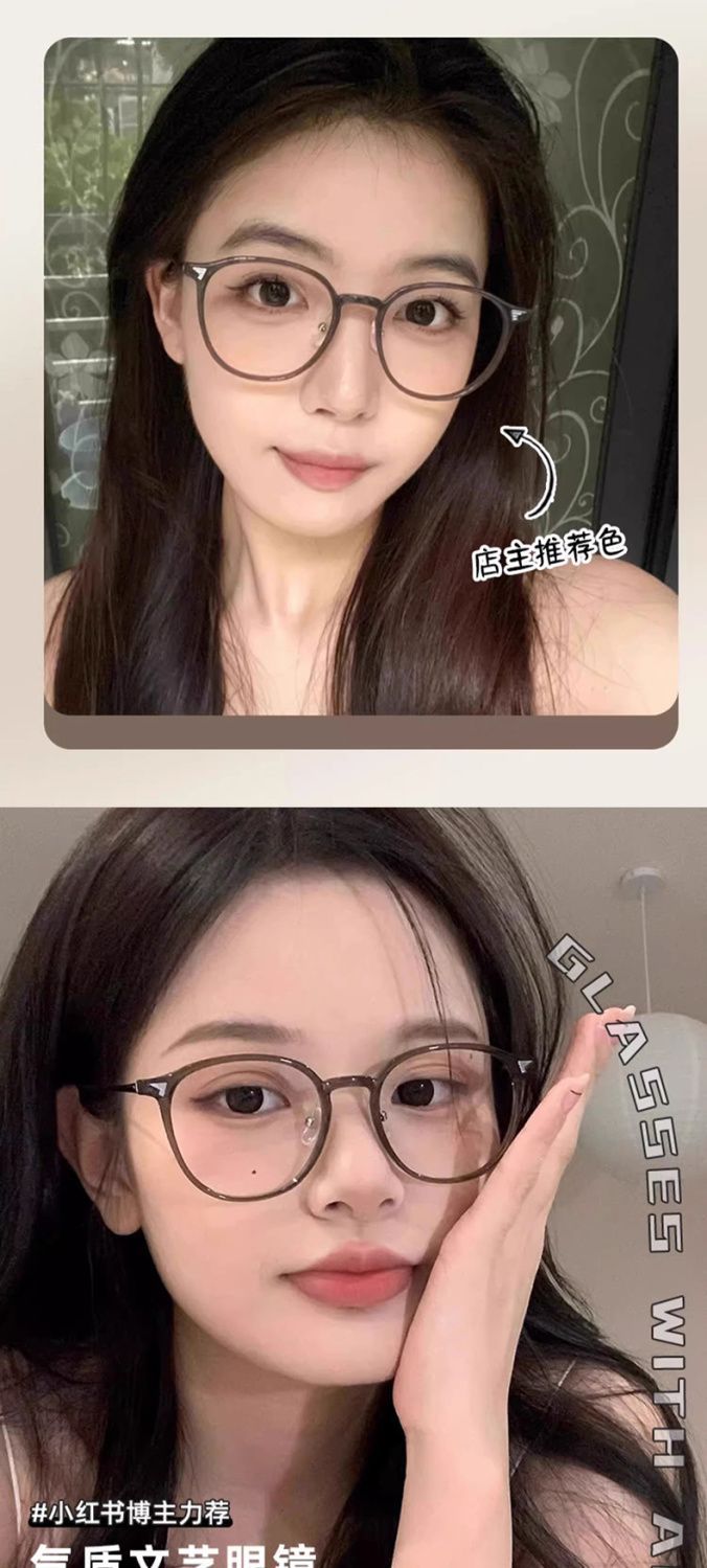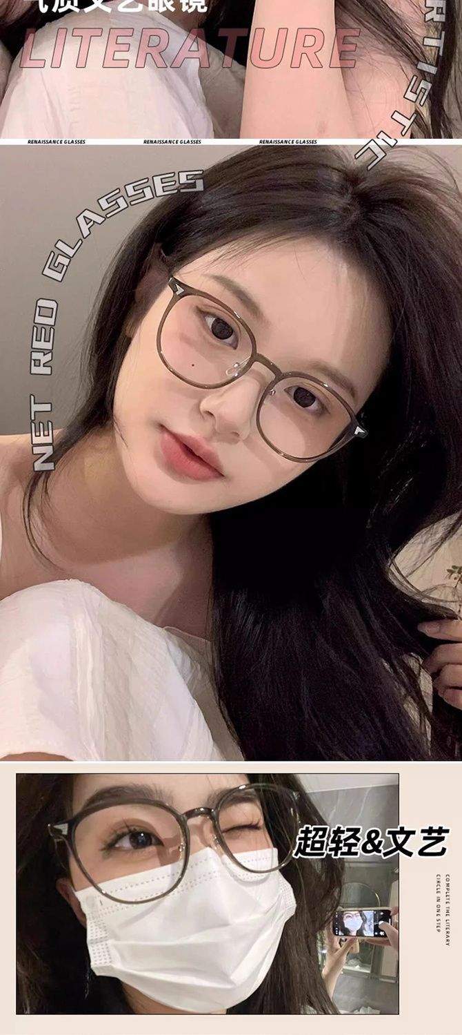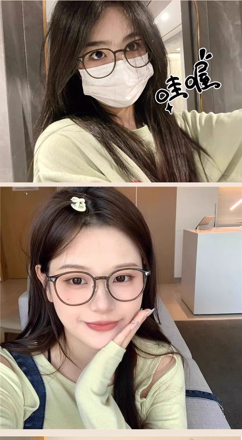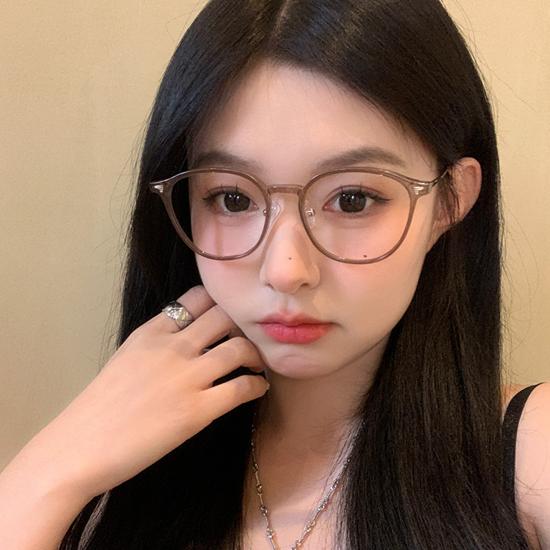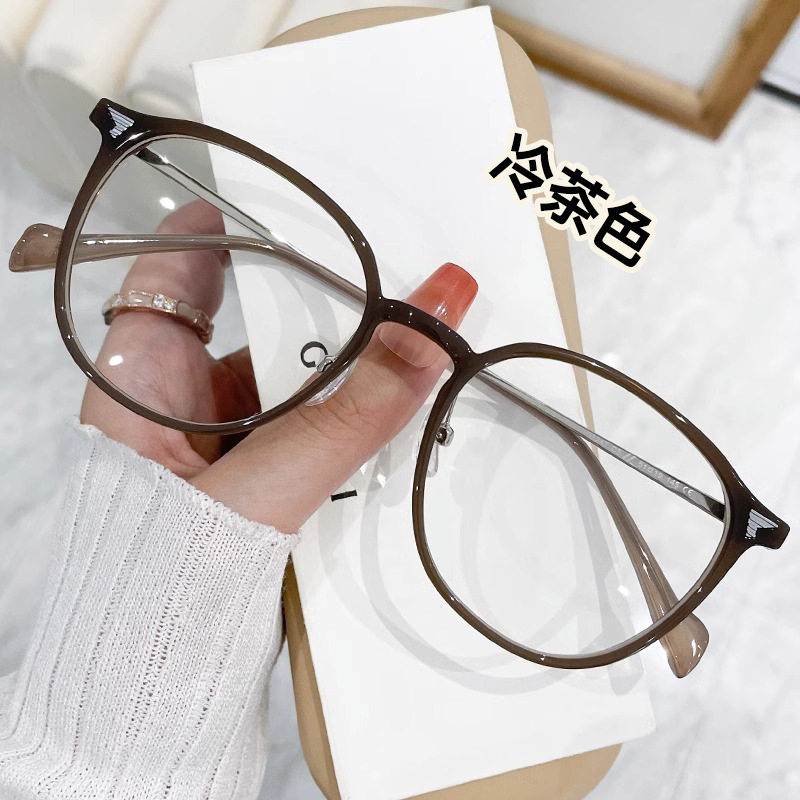 冷茶色眼镜女近视可配有度数方圆脸素颜神器大脸显脸小眼睛框镜架