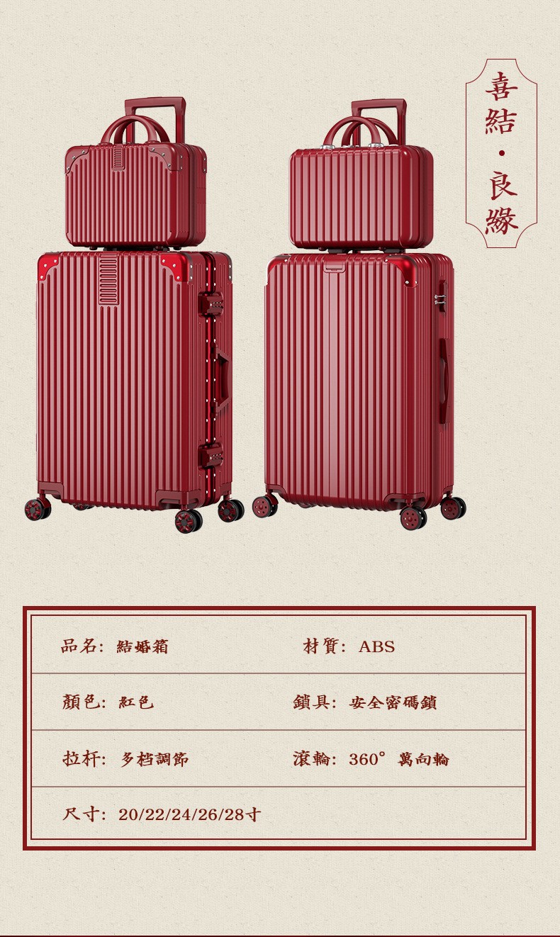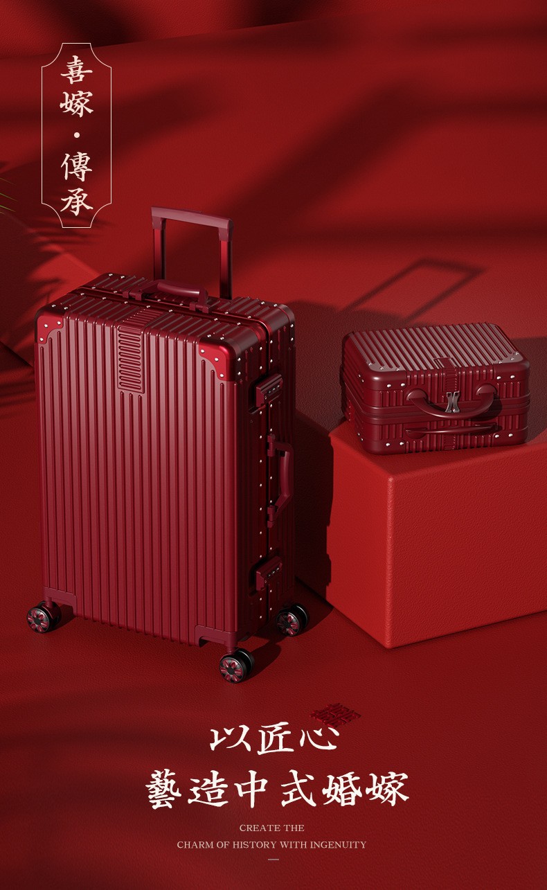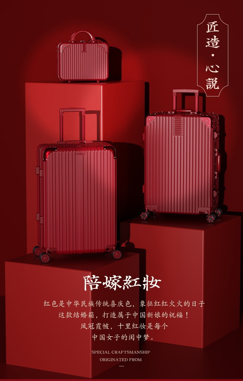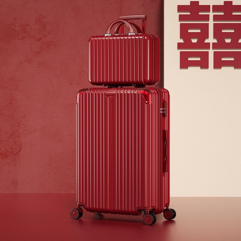 结婚行李箱陪嫁箱红色箱子拉杆箱女皮箱婚礼用密码新娘嫁妆箱一对