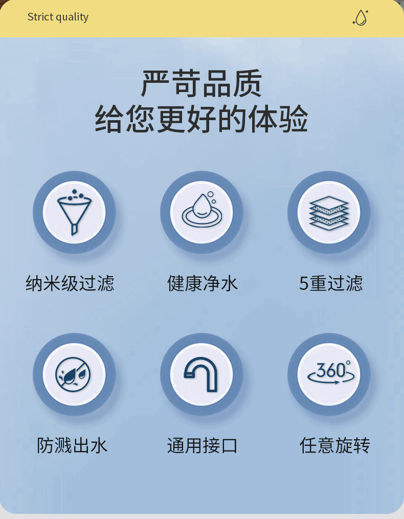 多款式家用厨房水龙头过滤器 花洒防溅水净水器360度旋转多层精滤