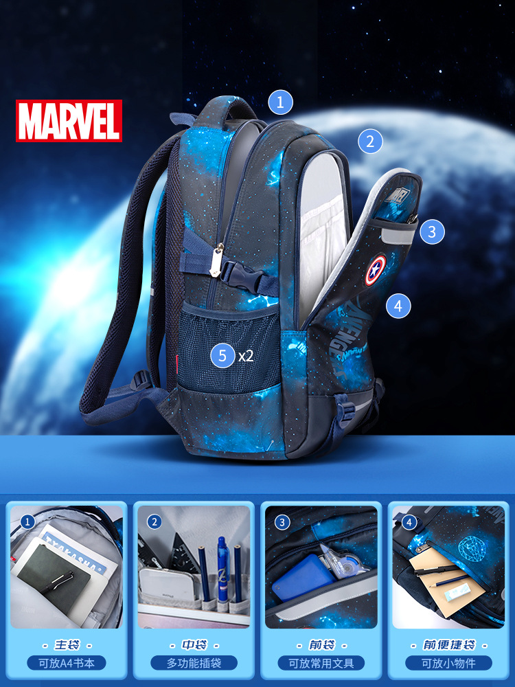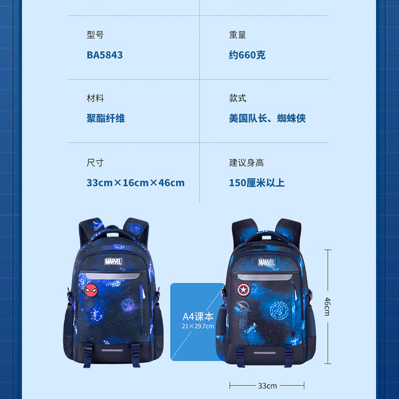 迪士尼星空书包中小学生三到六年级男生轻便大容量蜘蛛侠双肩书包