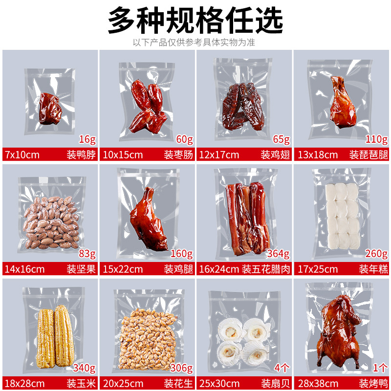 现货可抽真空食物封口袋子食品真空袋 透明热封袋食品真空包装袋