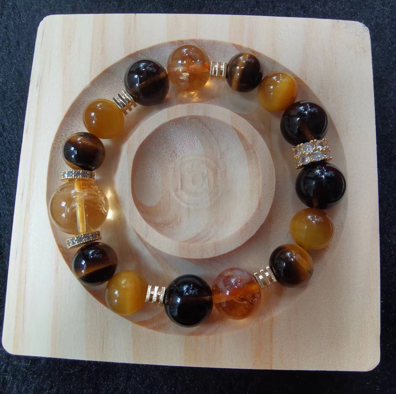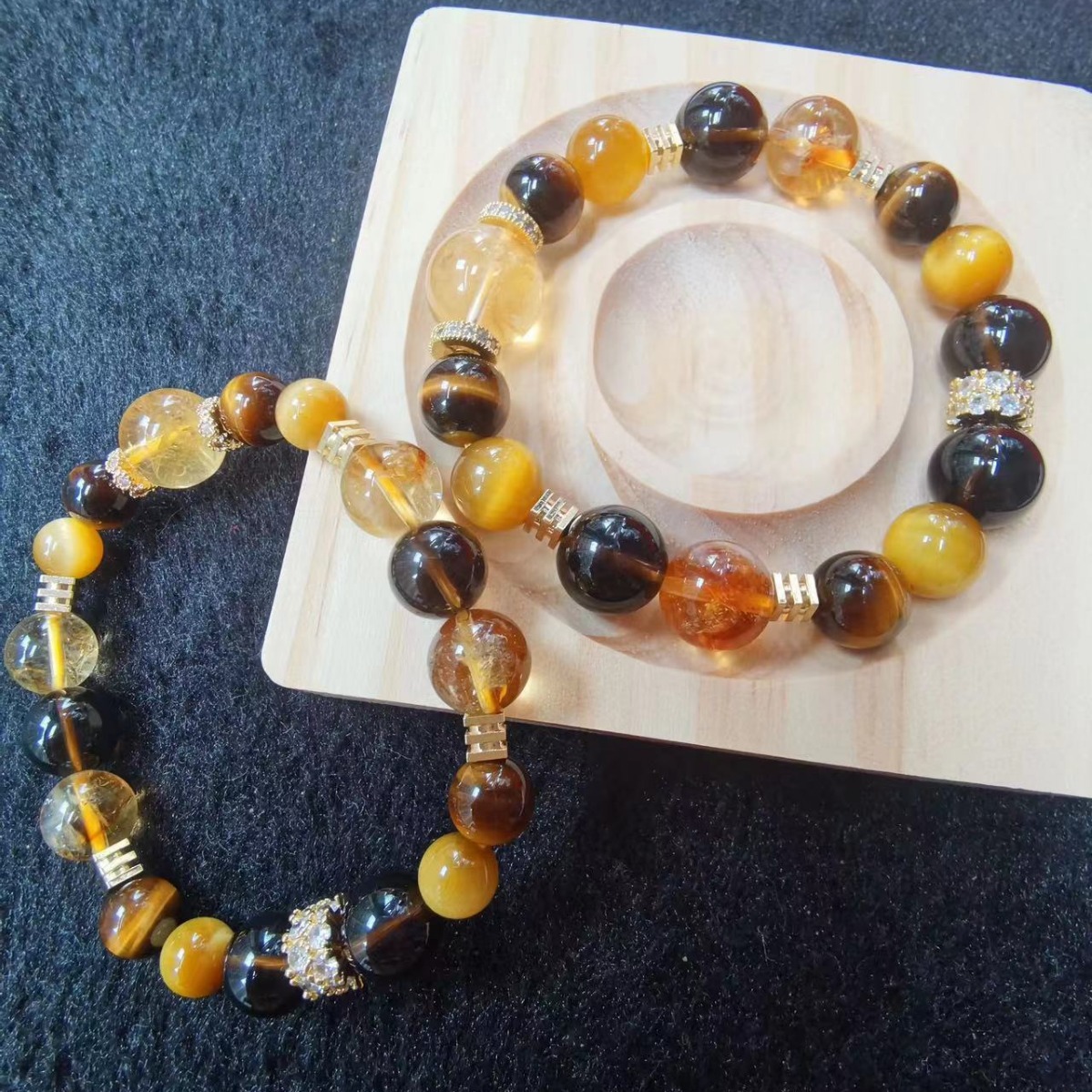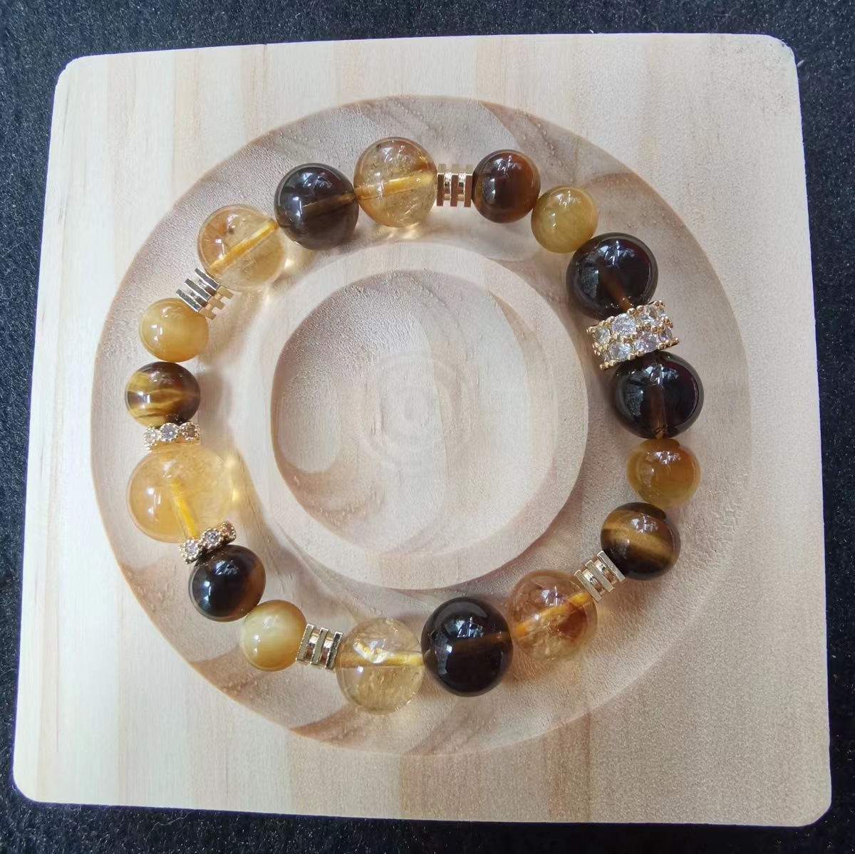【金霸大综合】天然黄塔晶金虎眼石黄水晶设计手链茶晶手串批发