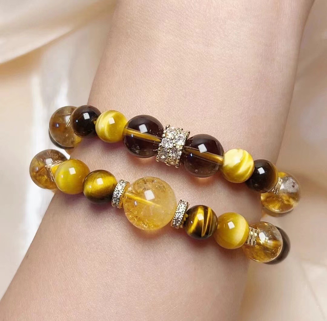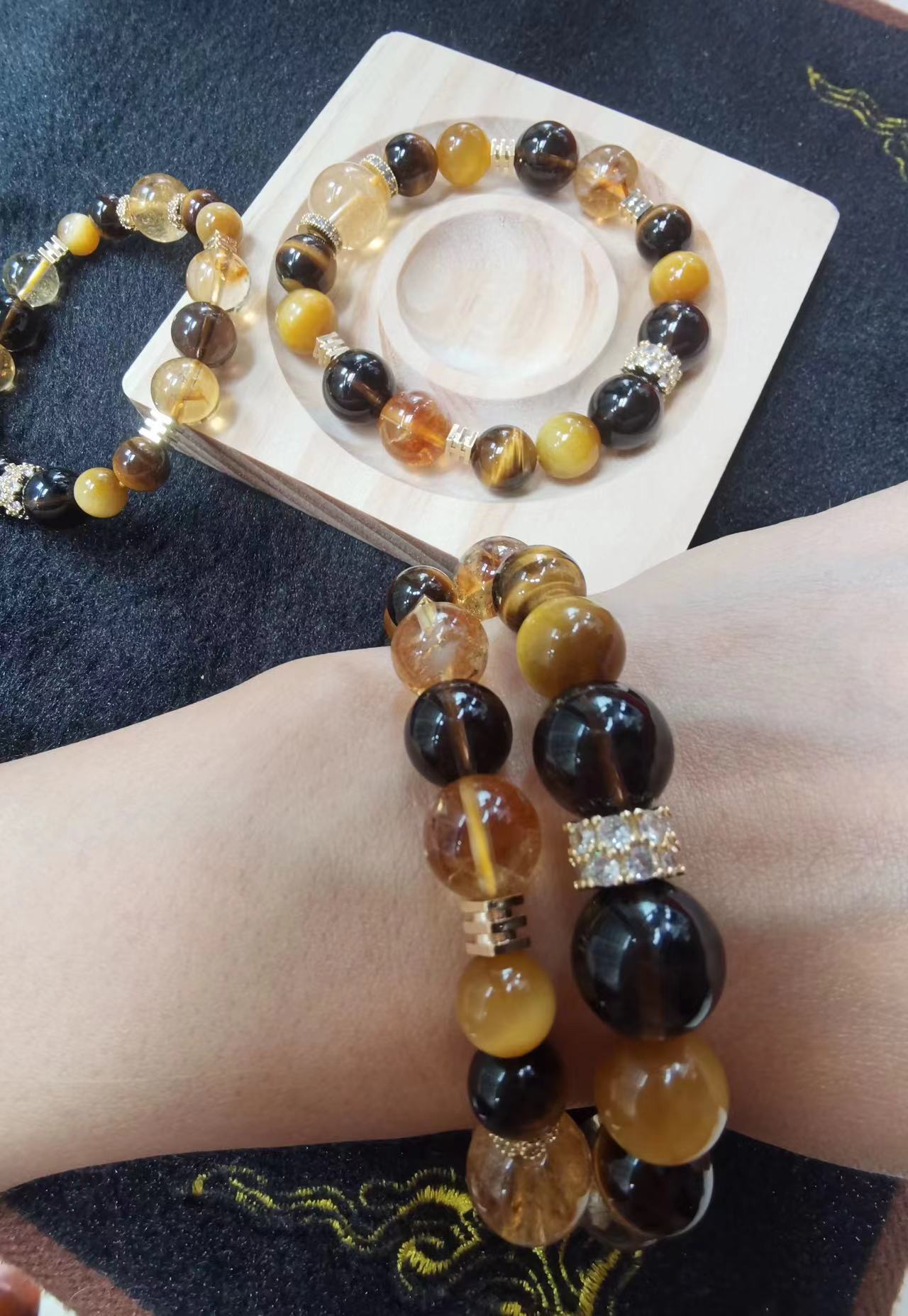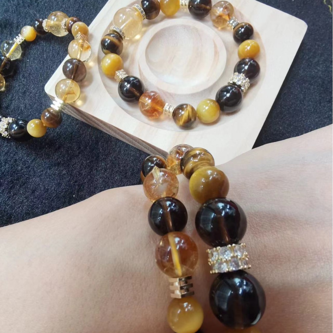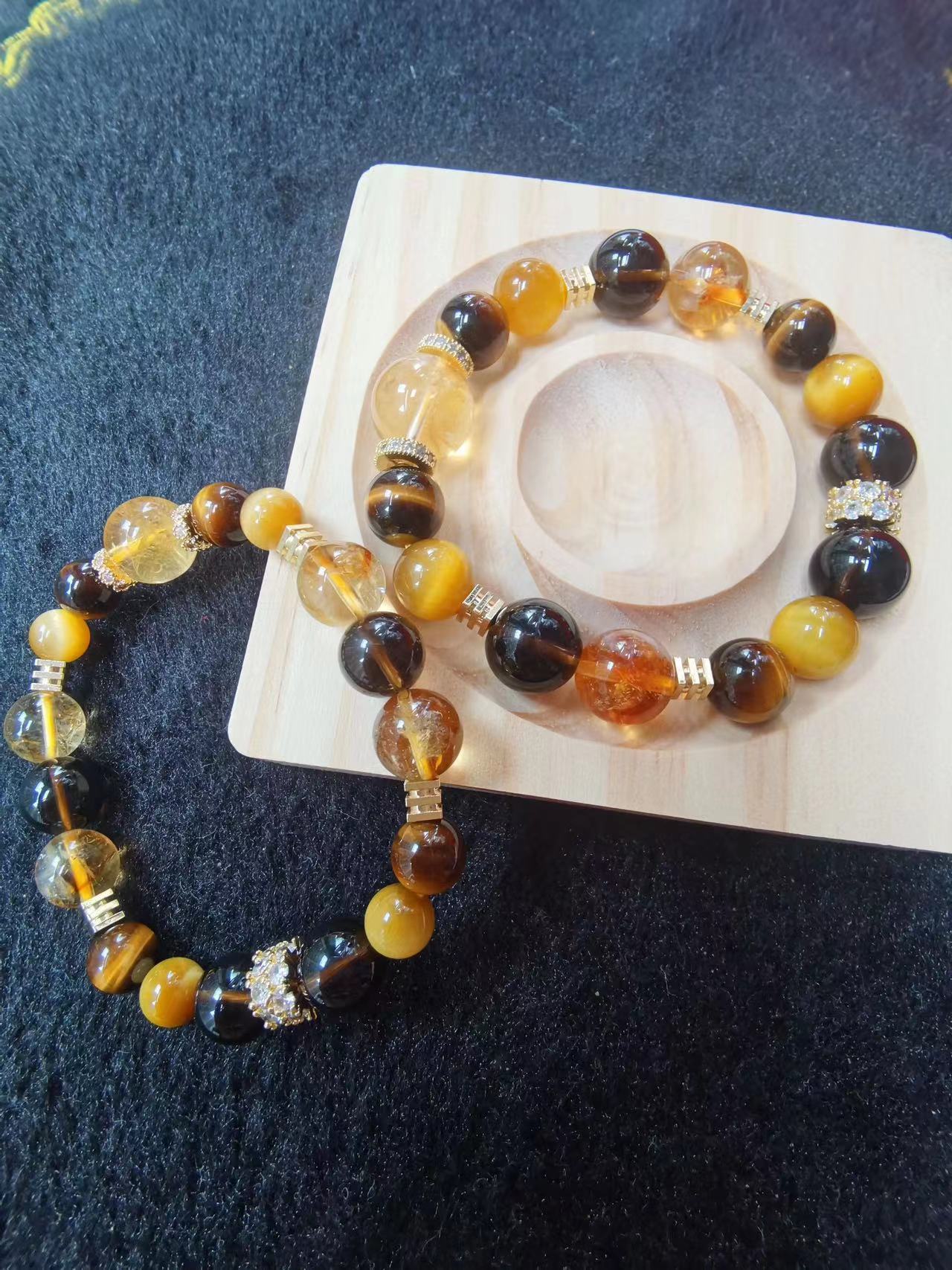 【金霸大综合】天然黄塔晶金虎眼石黄水晶设计手链茶晶手串批发