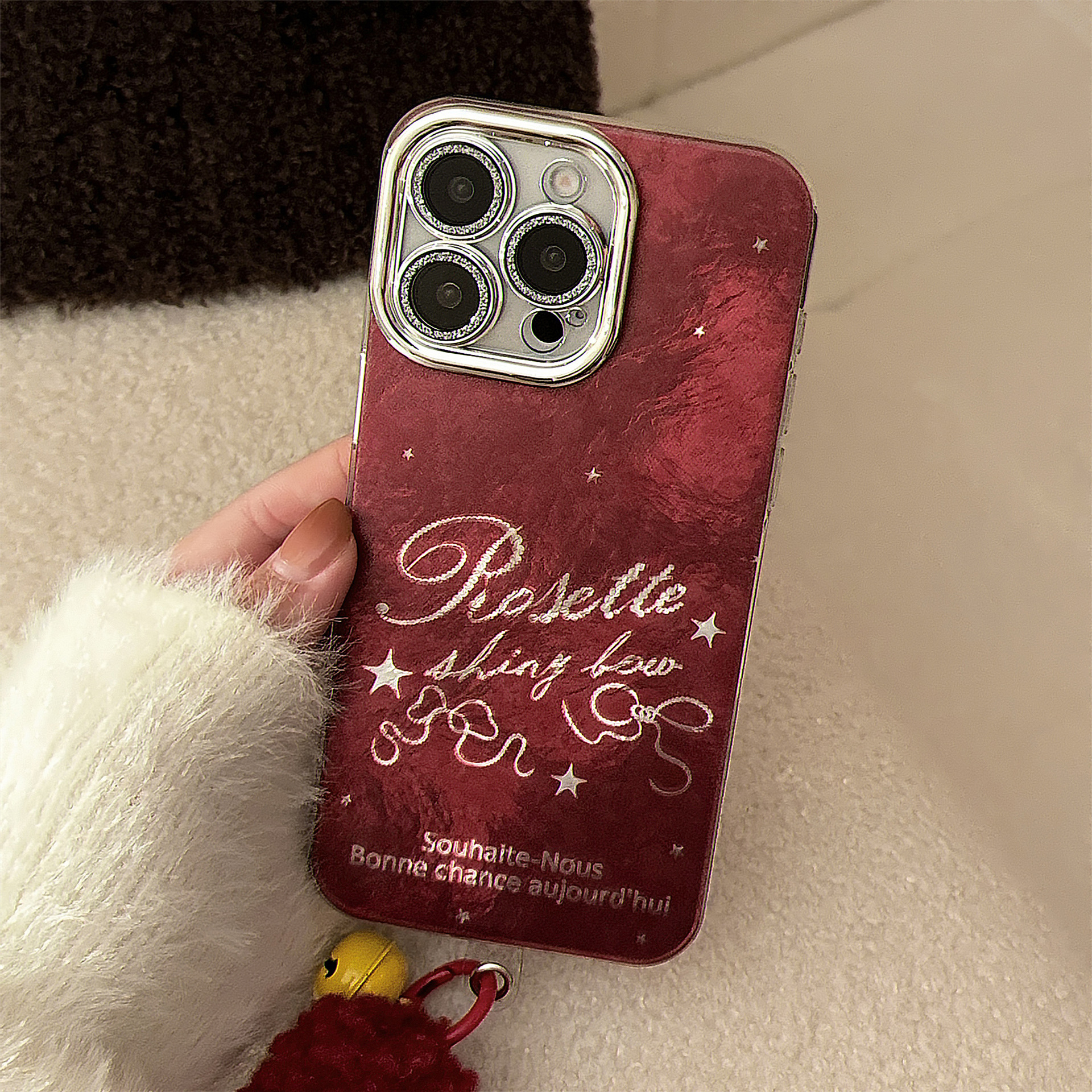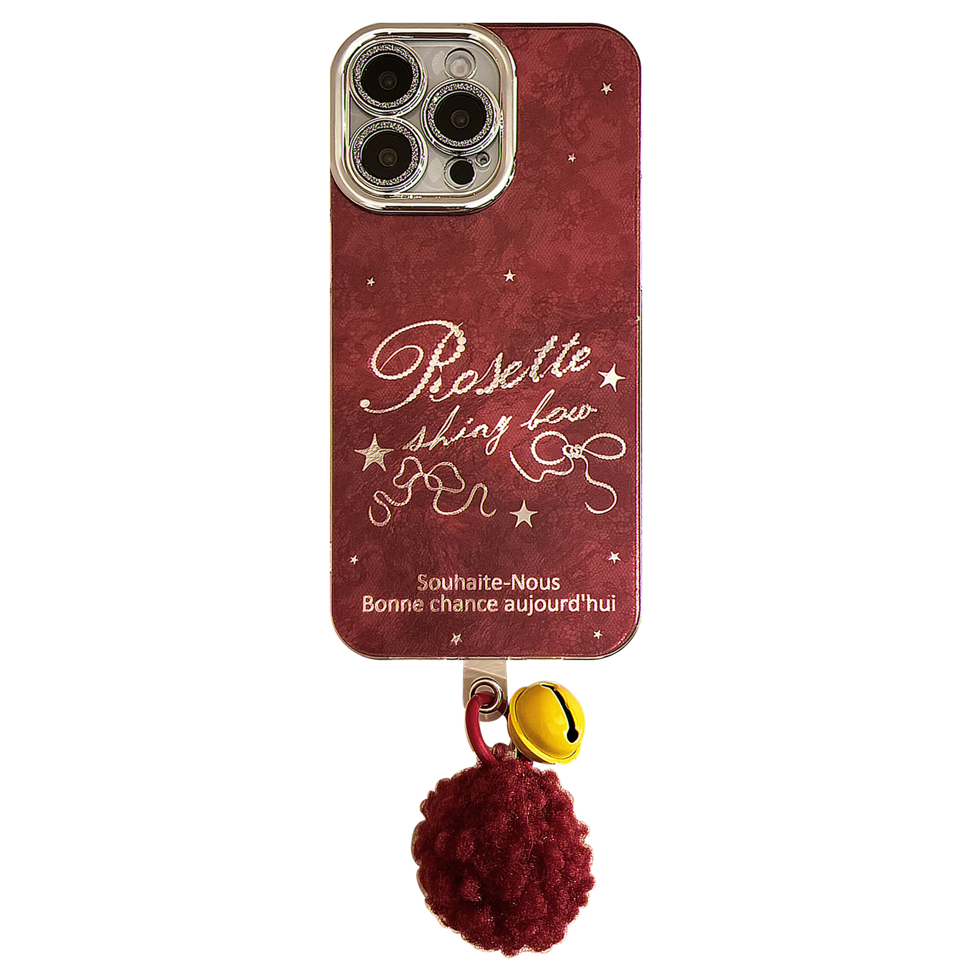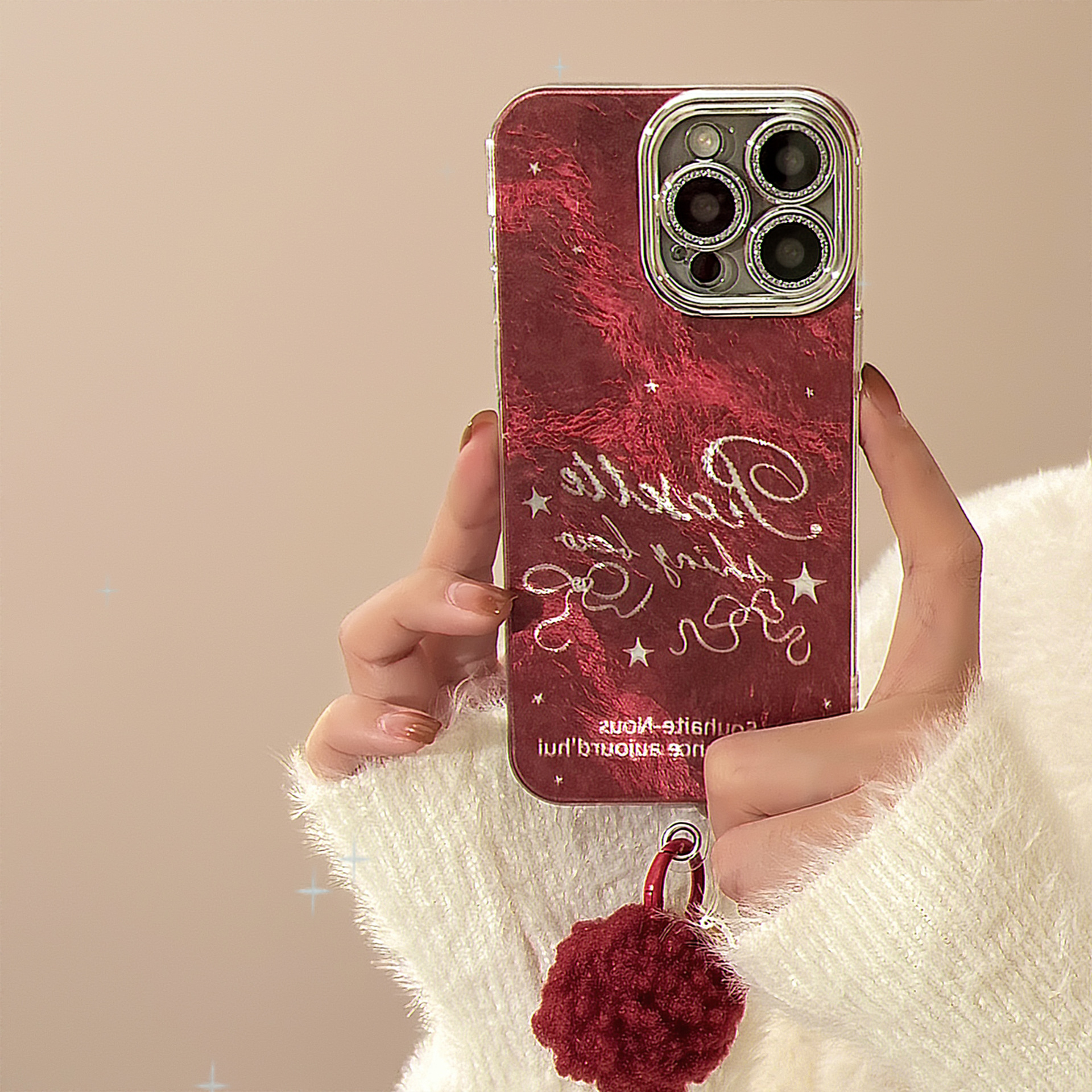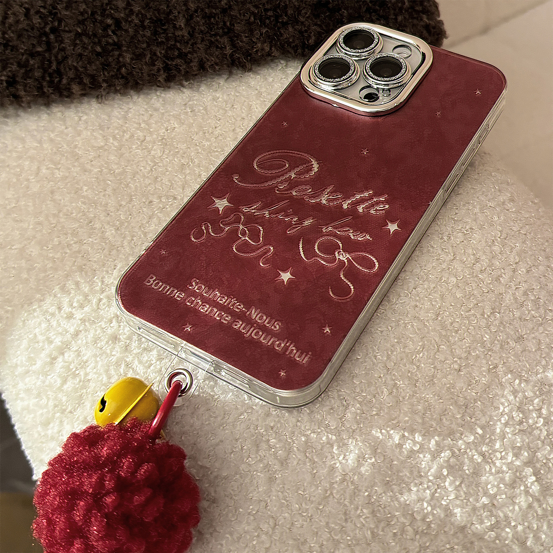 高级感适用苹果16手机壳14promax酒红气质iphone15镜头膜13毛绒绳