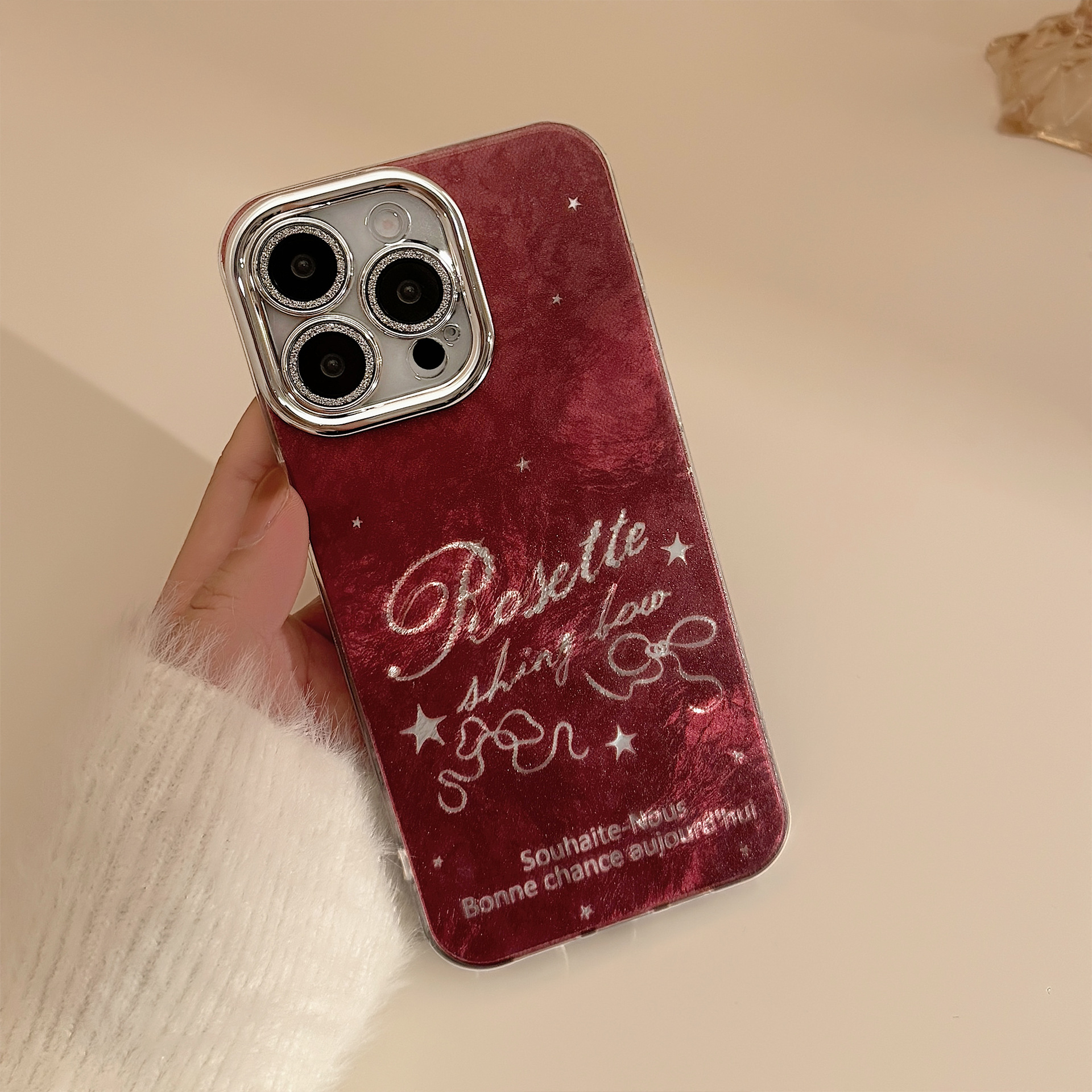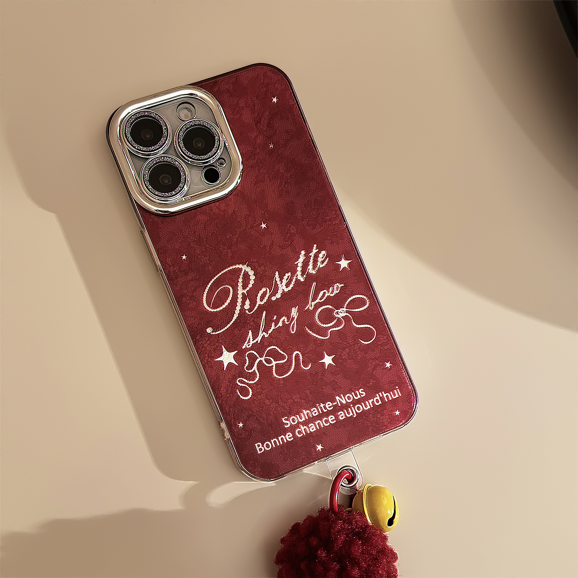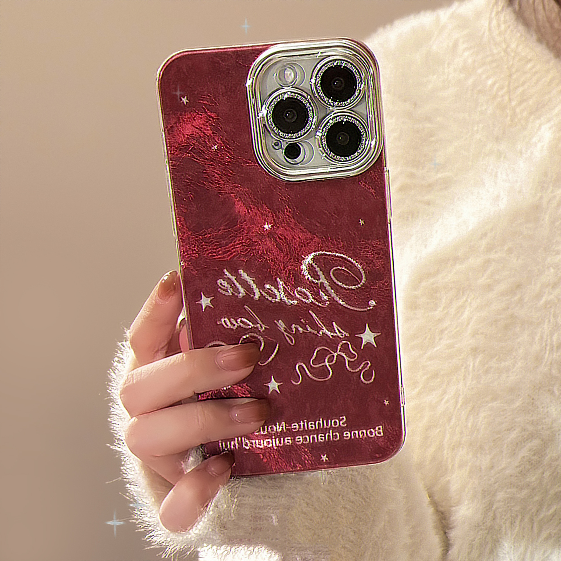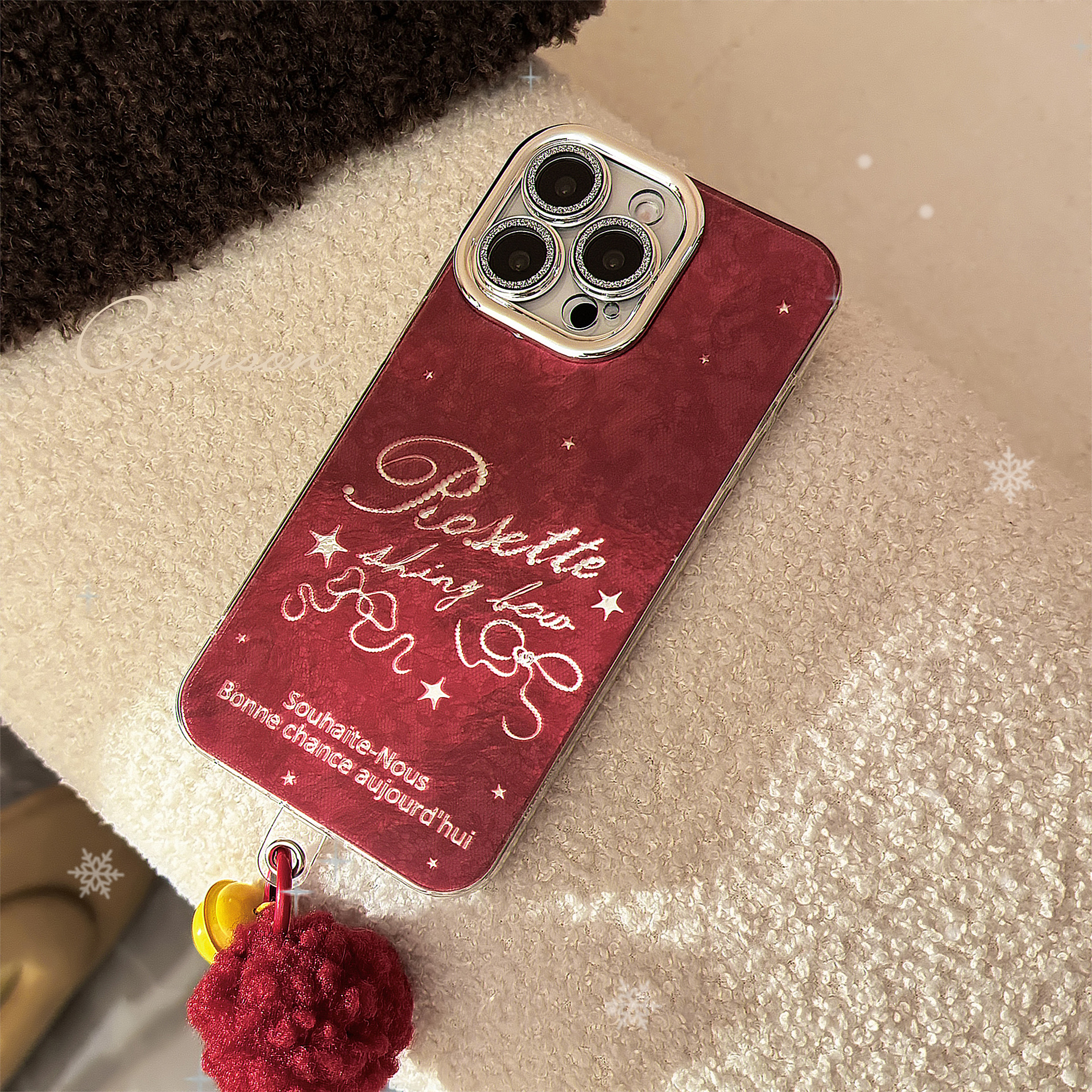 高级感适用苹果16手机壳14promax酒红气质iphone15镜头膜13毛绒绳