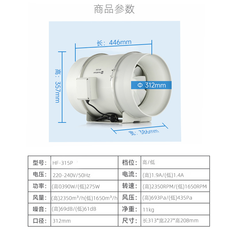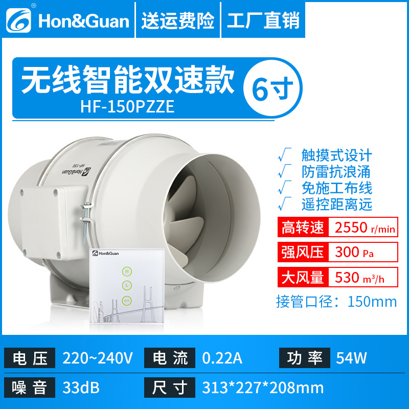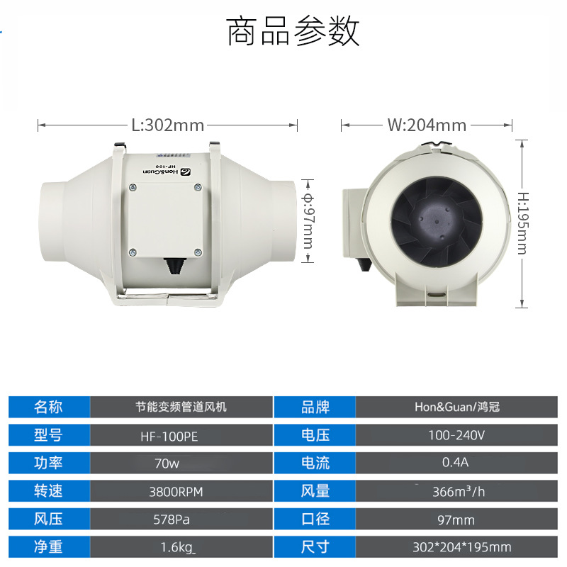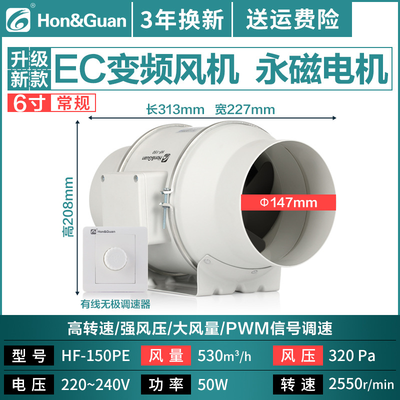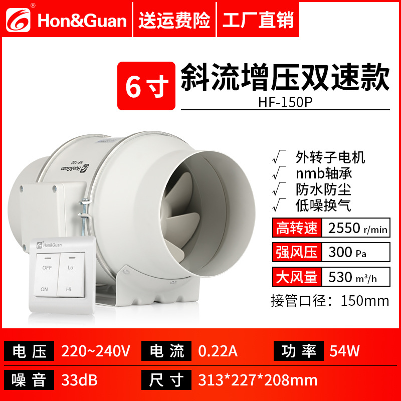 管道风机强力静音厨房排油烟艾灸烧烤棋牌室家用车间用工业排气扇