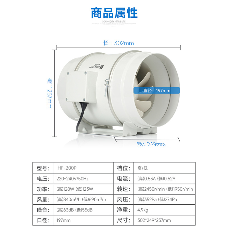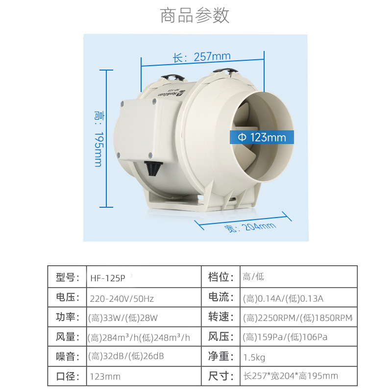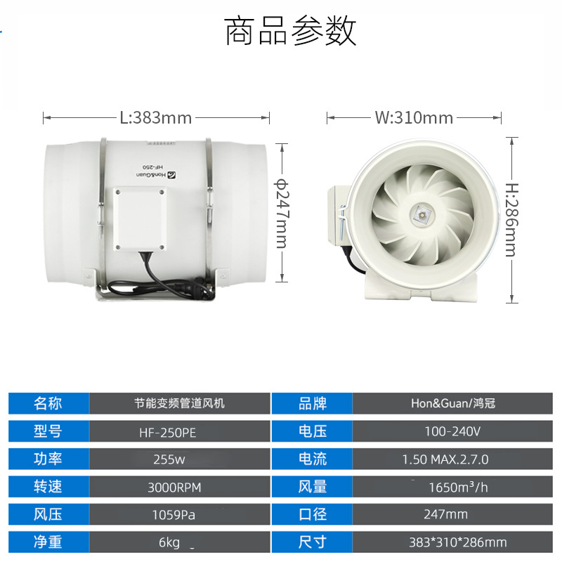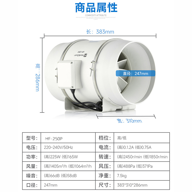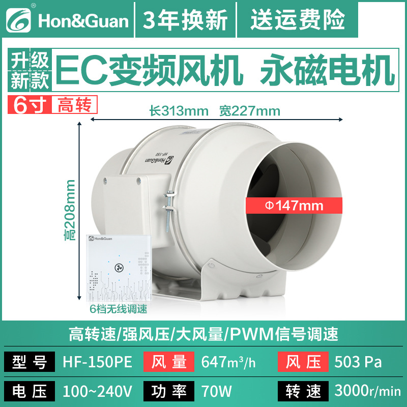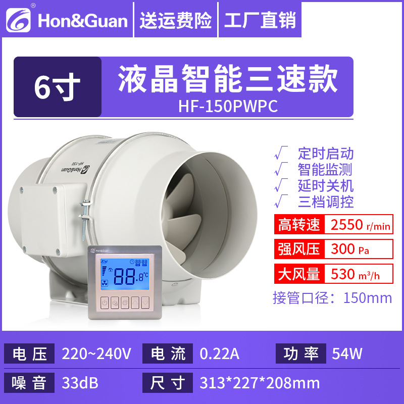 管道风机强力静音厨房排油烟艾灸烧烤棋牌室家用车间用工业排气扇
