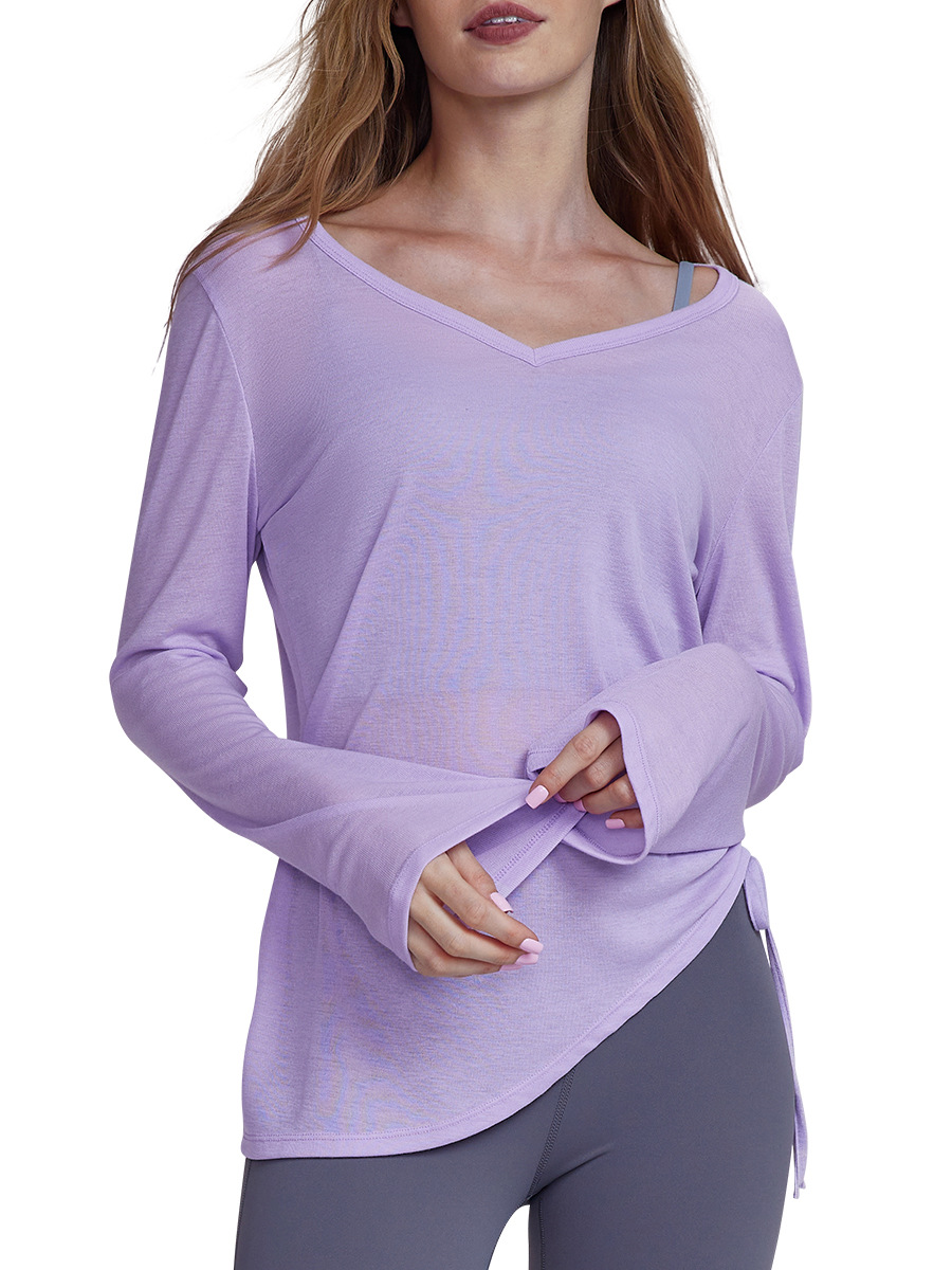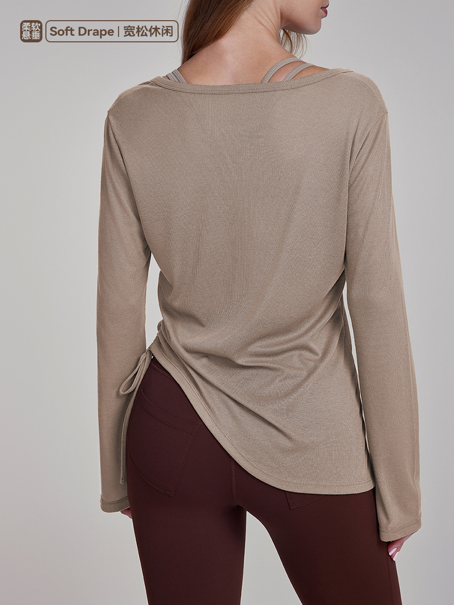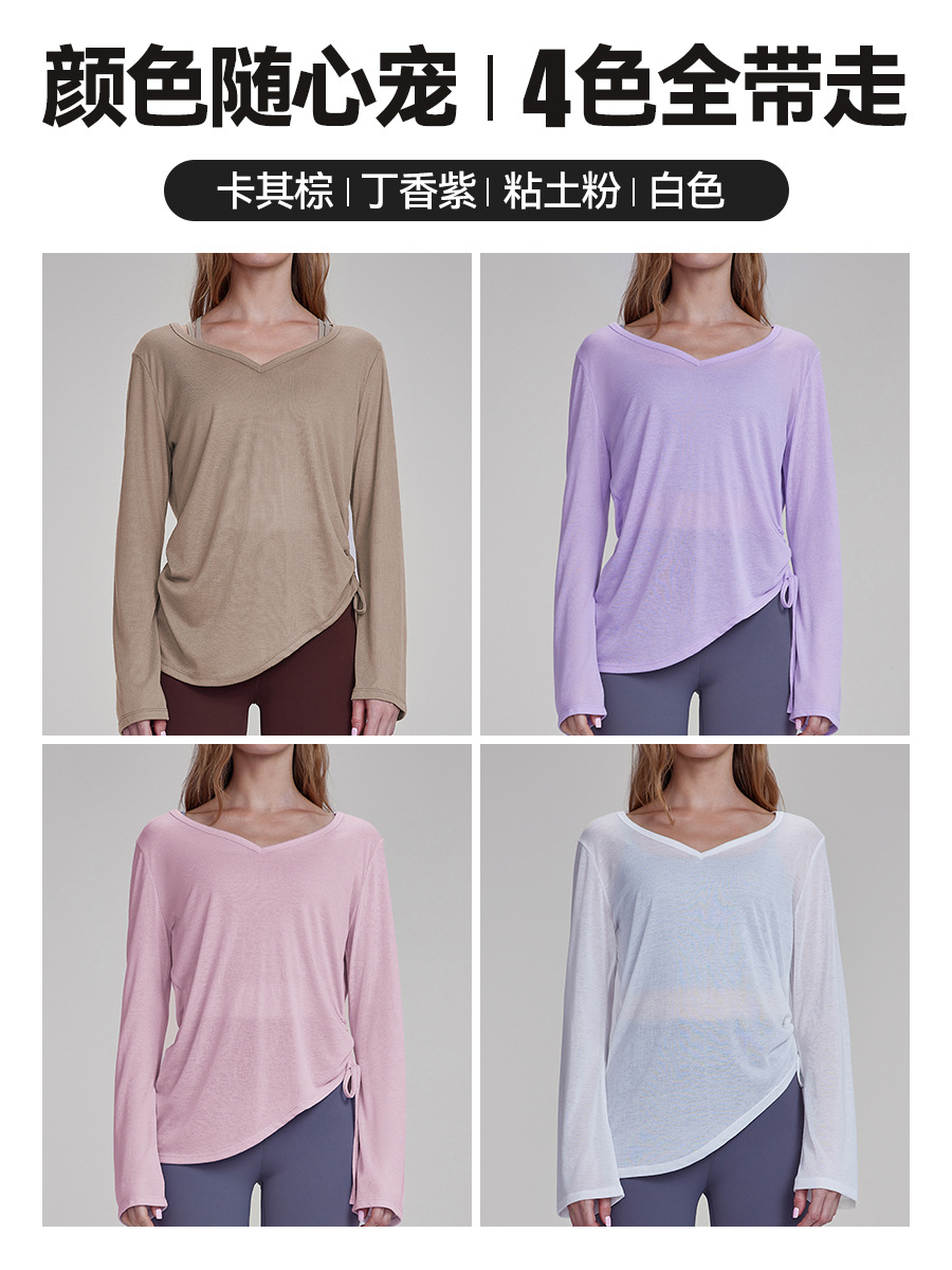 宁波大树瑜伽罩衫长袖遮臀女褶皱抽绳t恤宽松休闲秋季健身瑜伽服