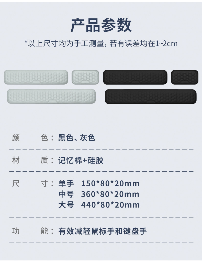 厂家直销慢回弹记忆棉护腕鼠标垫批发手腕垫键盘手托鼠标腕托硅胶