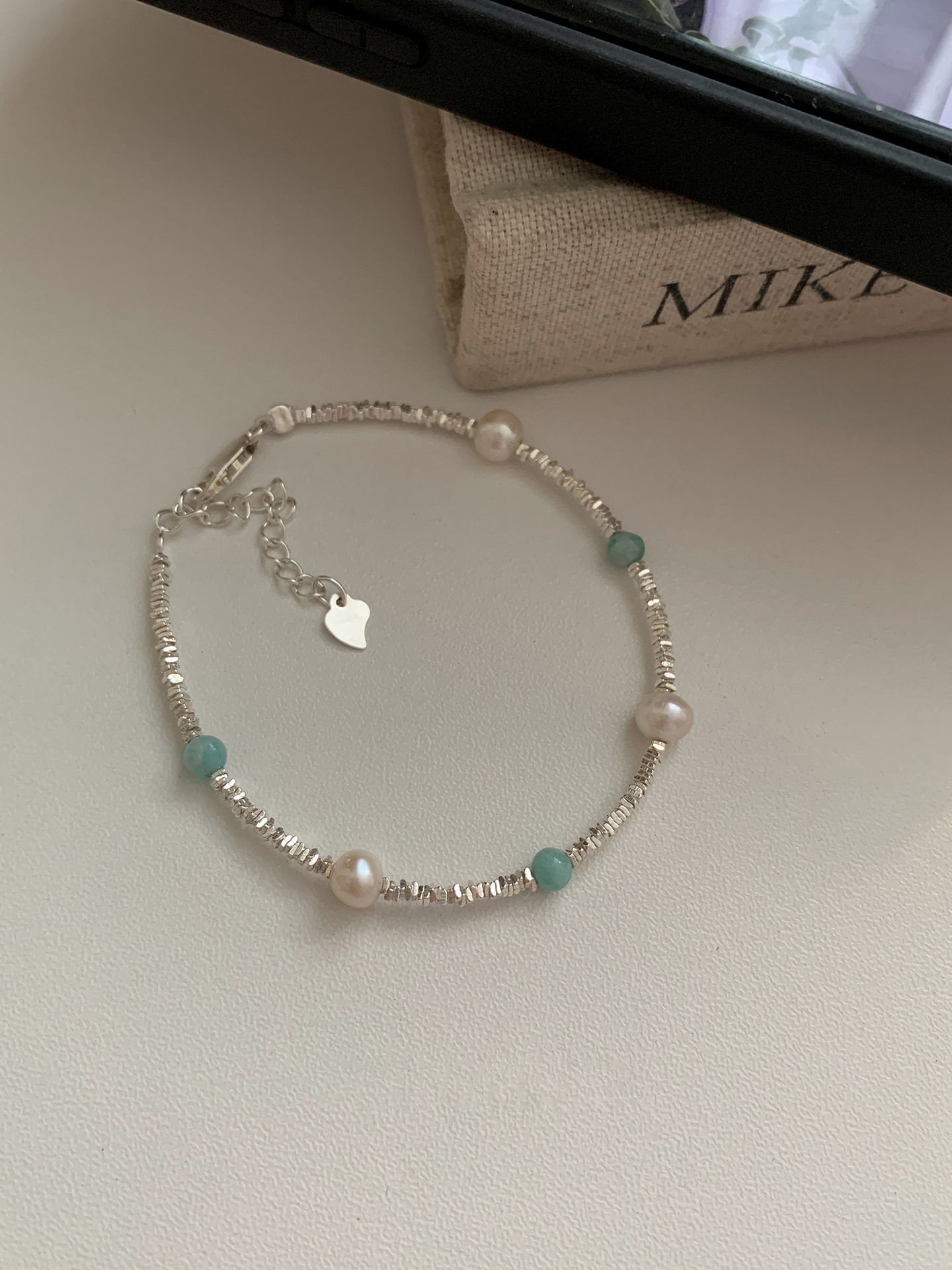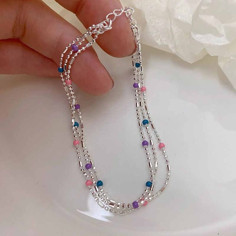 不规则天然珍珠925纯银双层星星手链女碎银冷淡小众气质百搭手饰