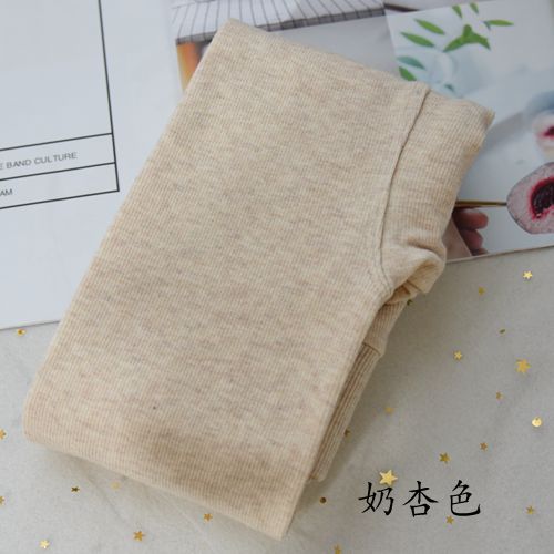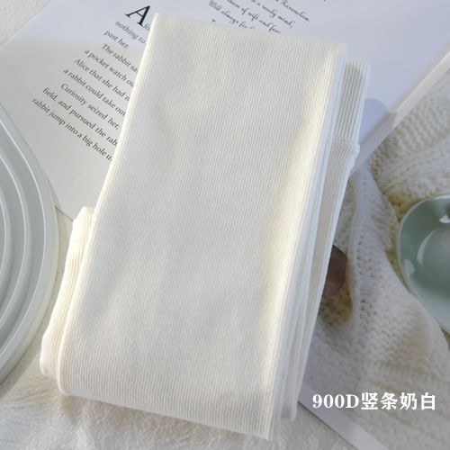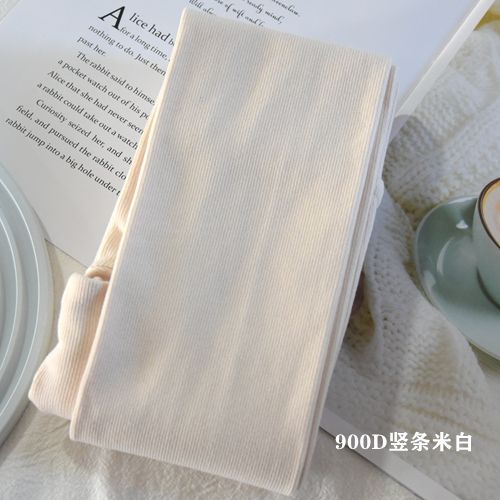 秋冬微压棉竖条纹燕麦白龙爪毛一体连裤袜加绒九分袜奶杏色打底袜