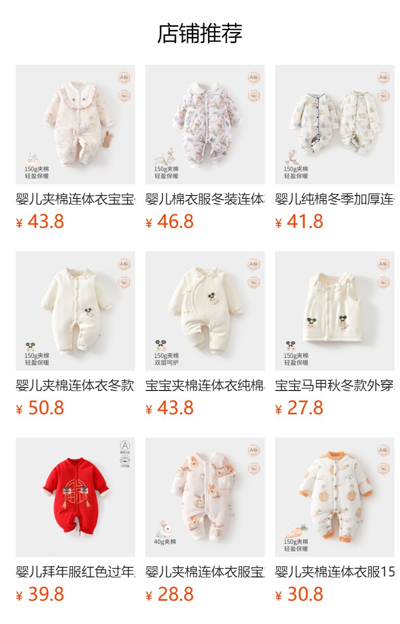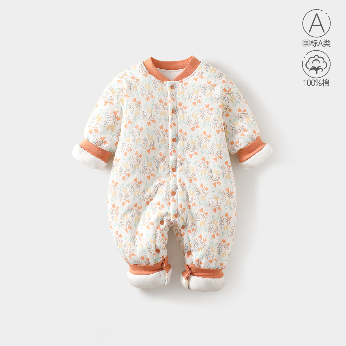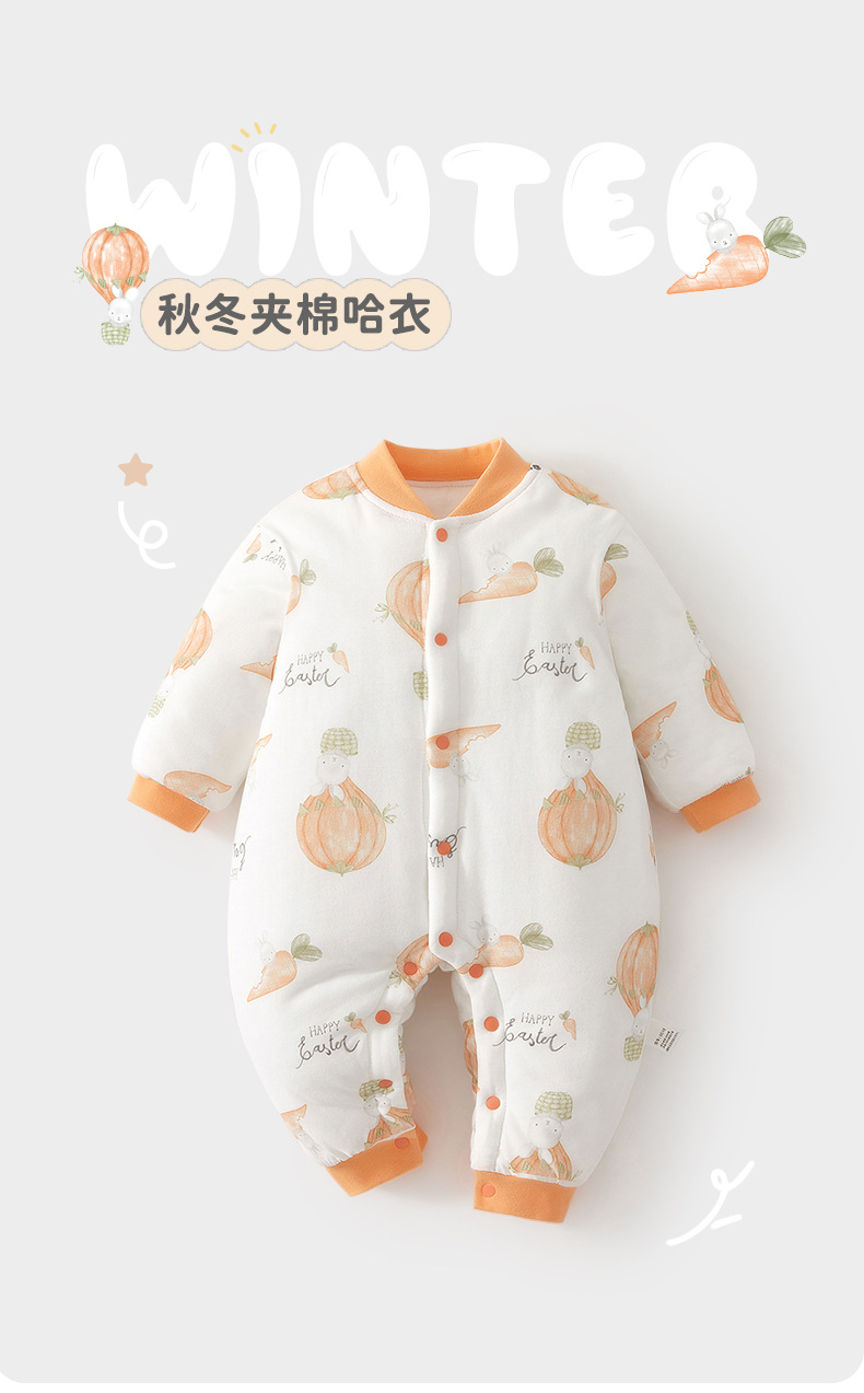婴儿夹棉连体衣服150克加厚a类宝宝冬季外出爬服新生儿棉服哈衣