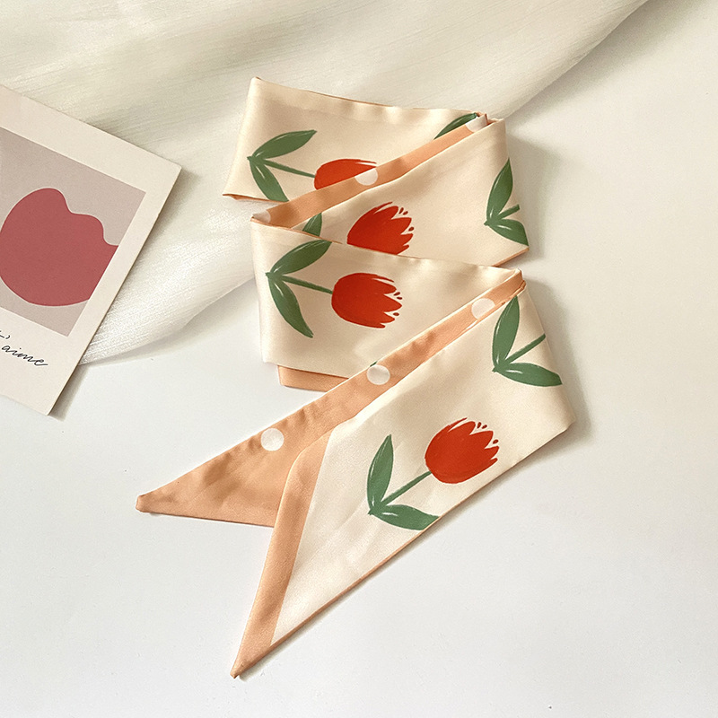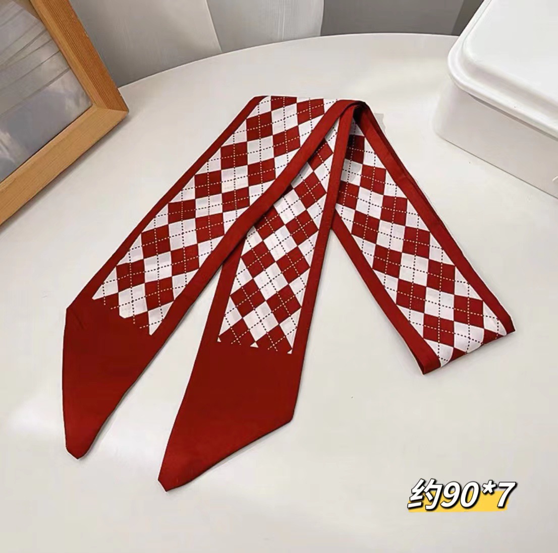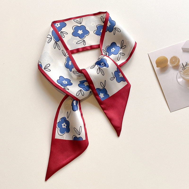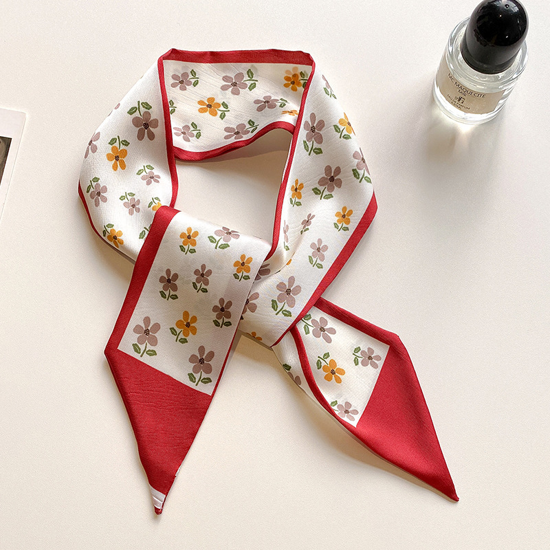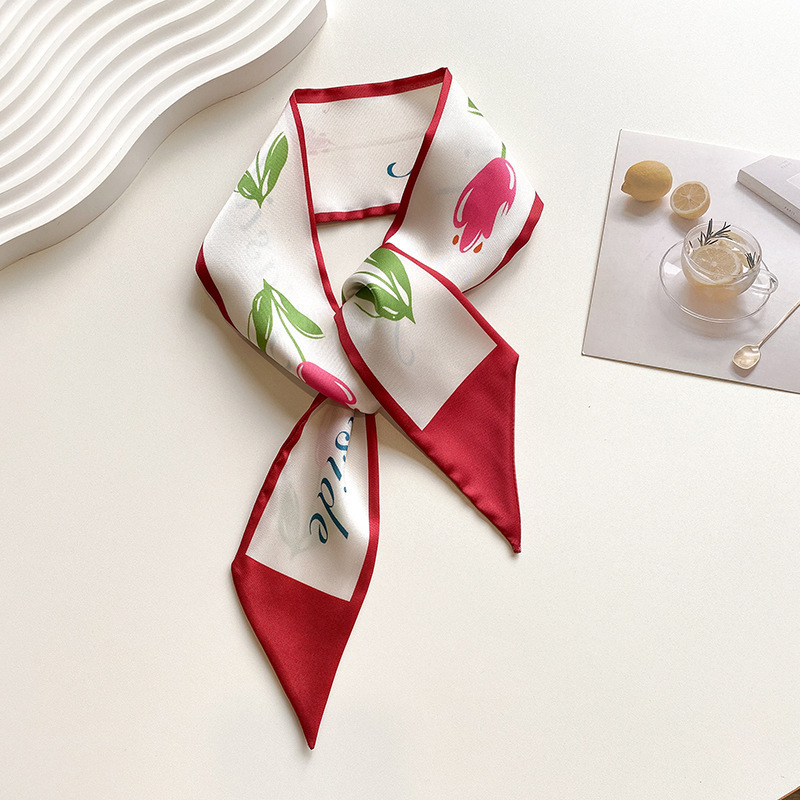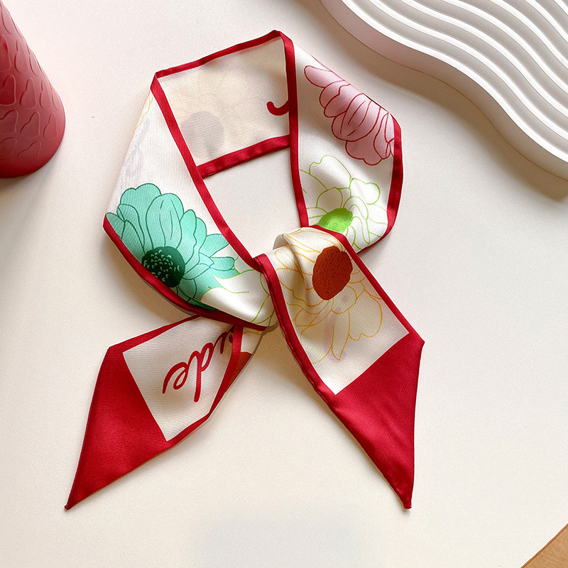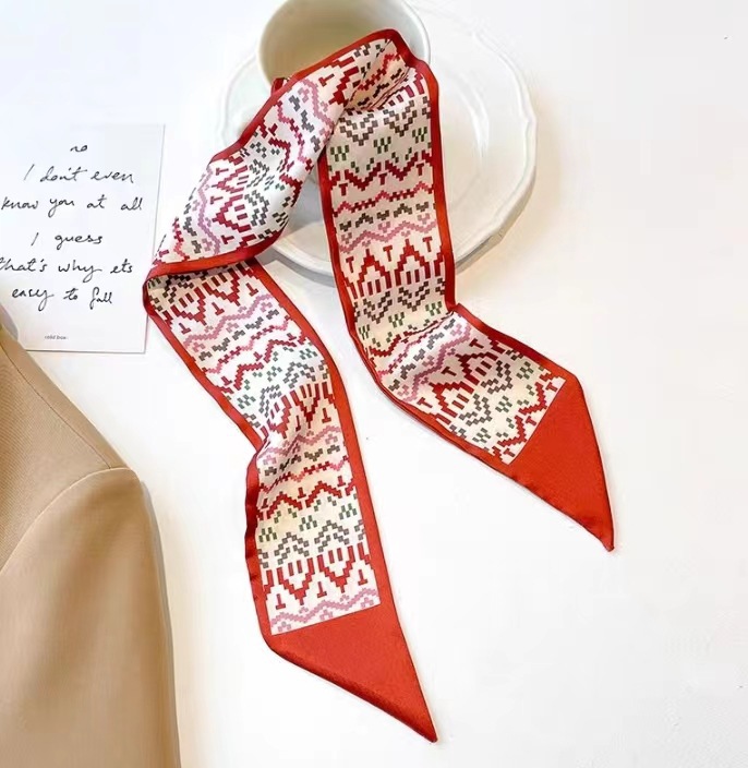红色气质双层缎面长条丝巾发带女韩系围巾飘带装饰西装领巾百搭