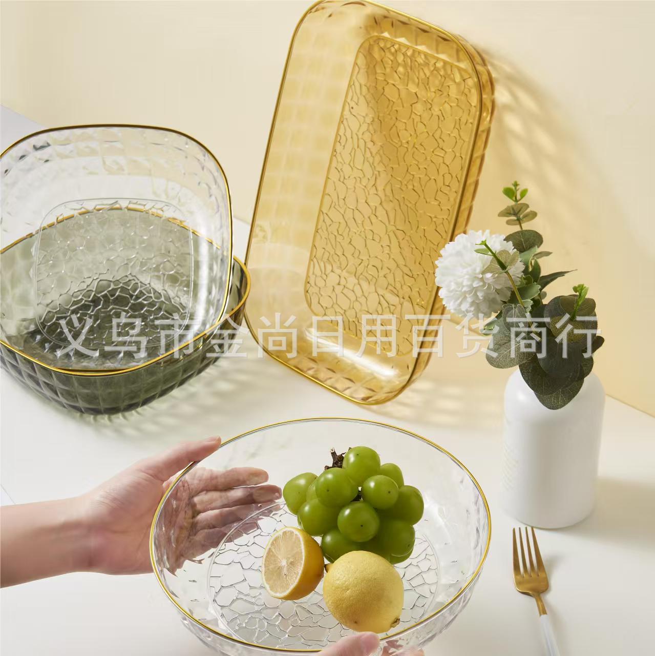 家用糖客厅餐桌水果盘茶水盘托盘网红轻奢果盘塑料PET零食瓜子盘